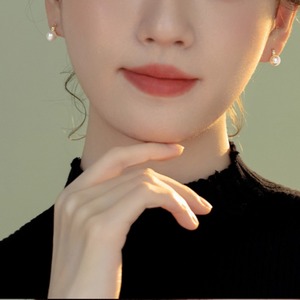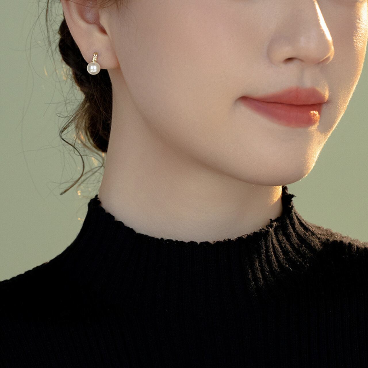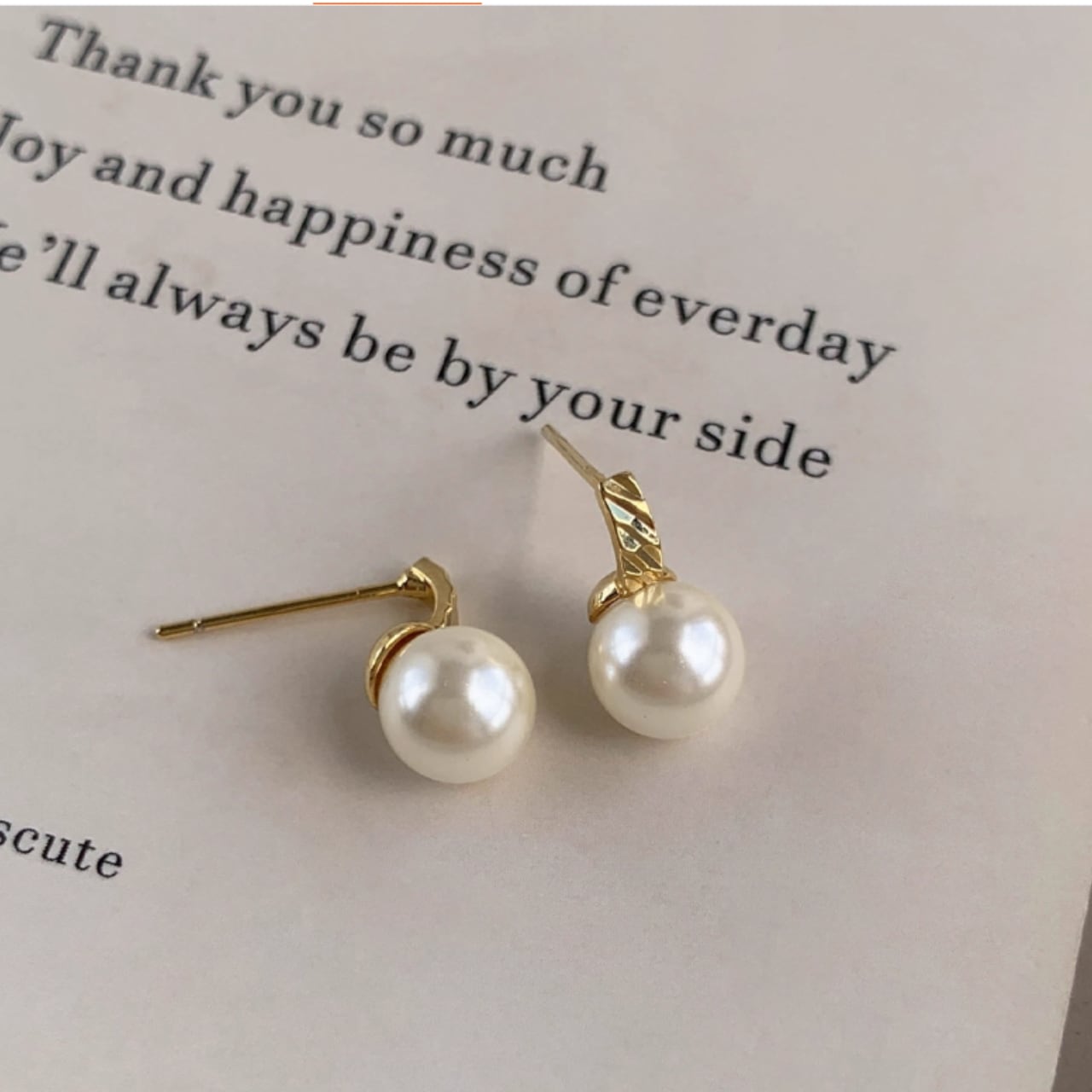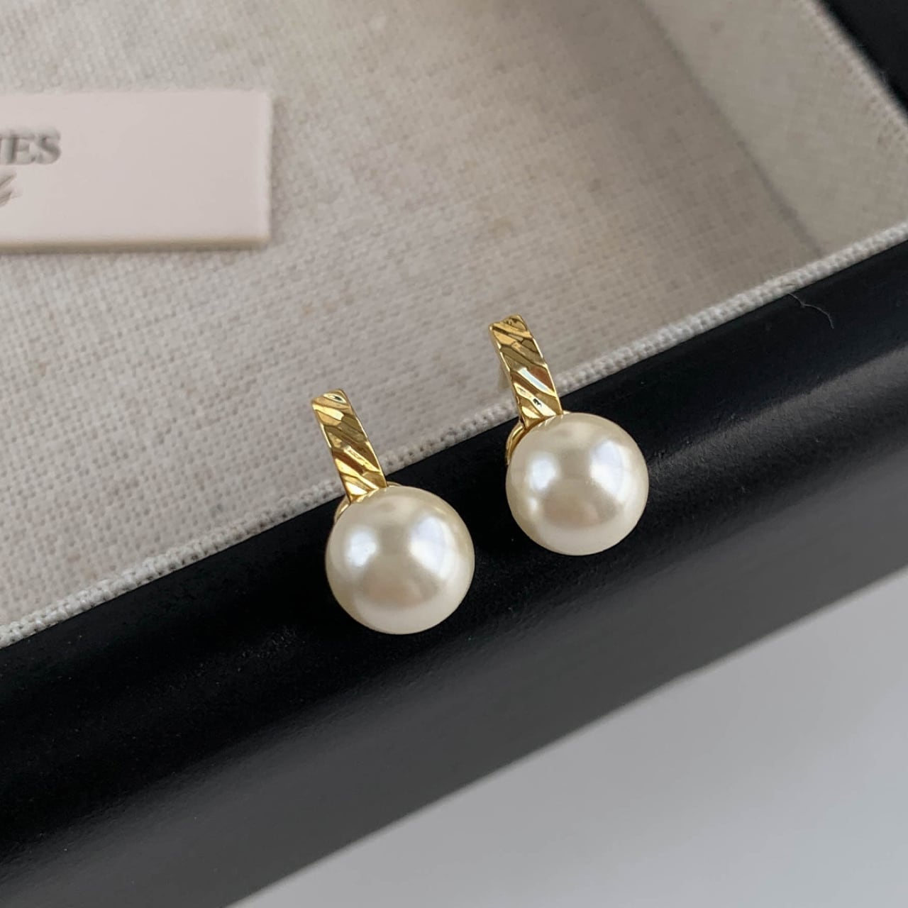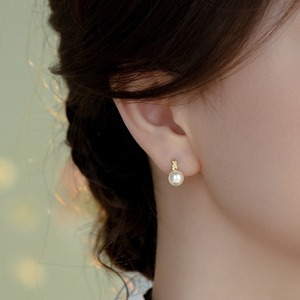 上品なラウンド型のパールが揺れる、ポストピアスです。