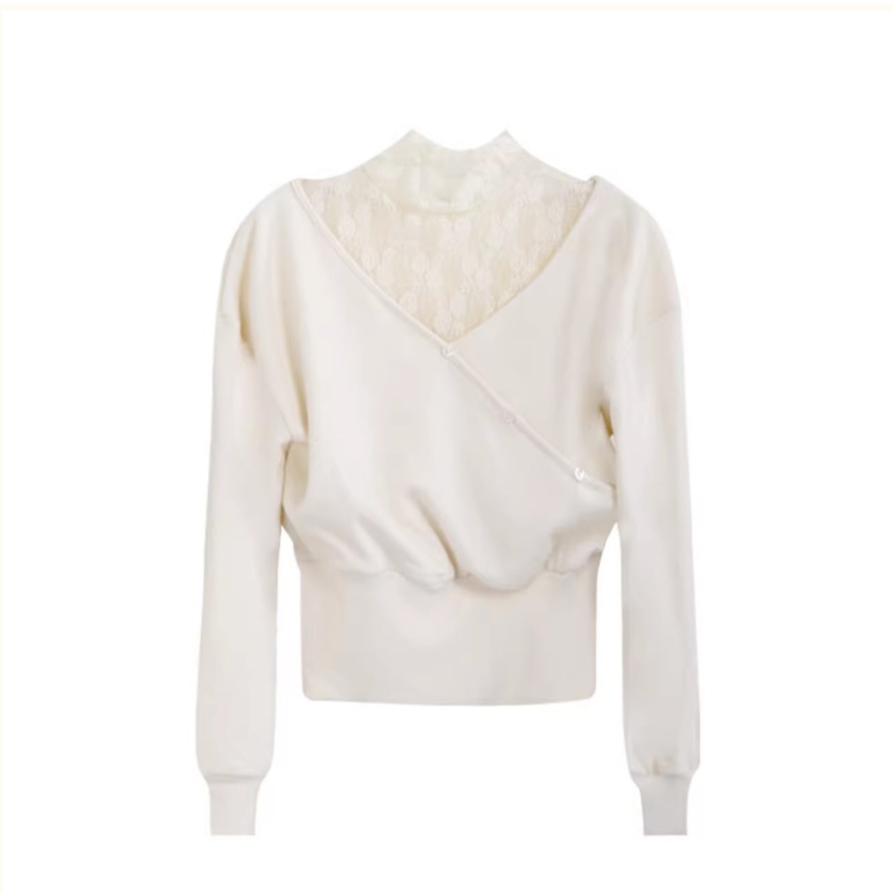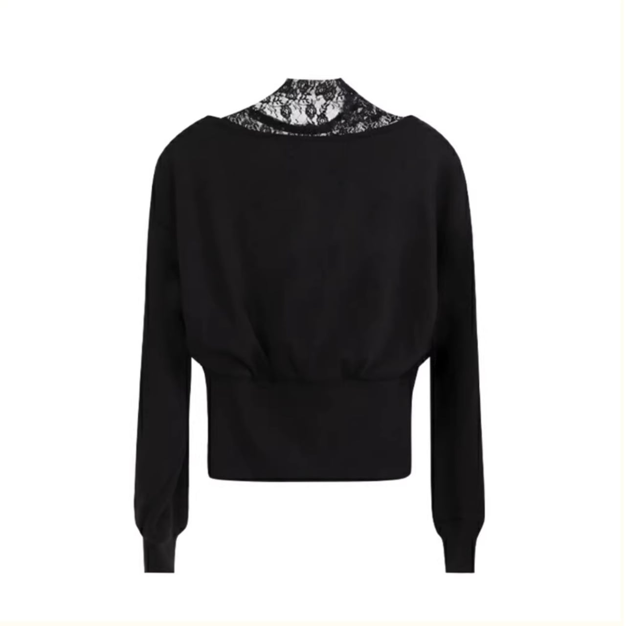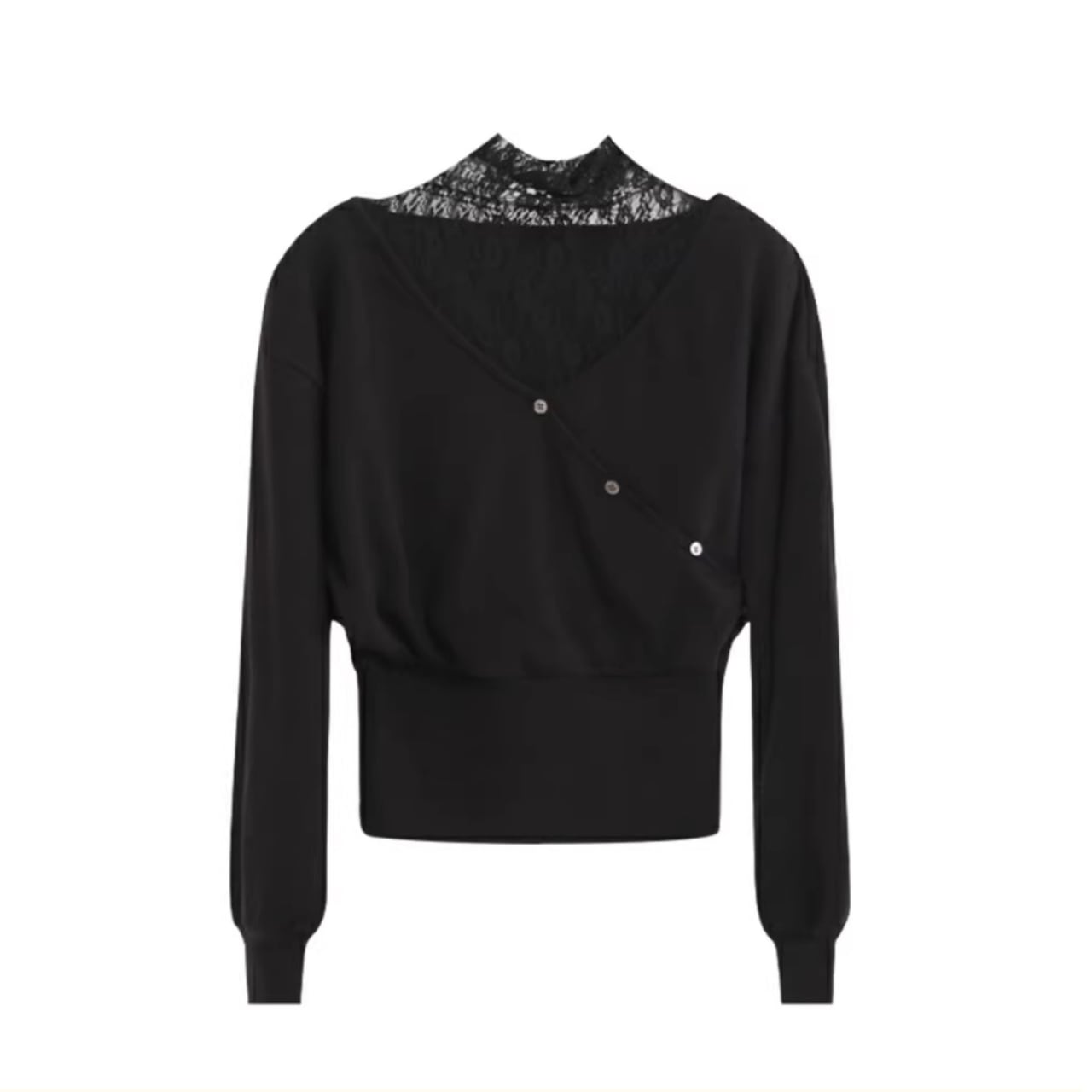 すっきりとしたVネックに、インナーのレースの透け感が大人の女性らしさを演出。