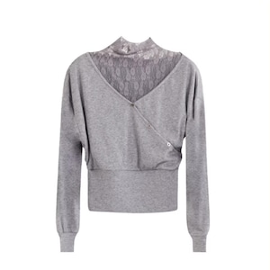 レイヤード風デザインが魅力のニットトップスです。