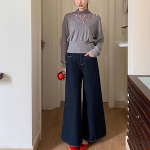 レイヤード風ハイネックリブニット長袖 W00055