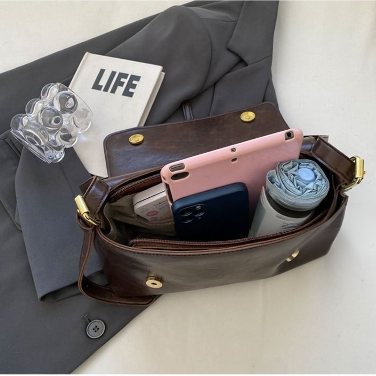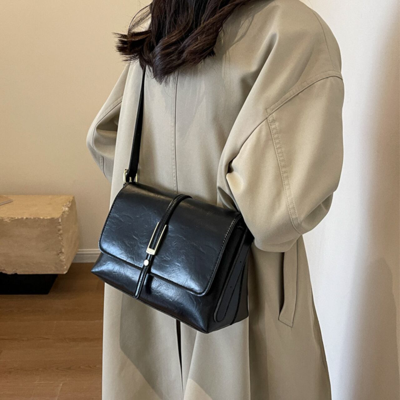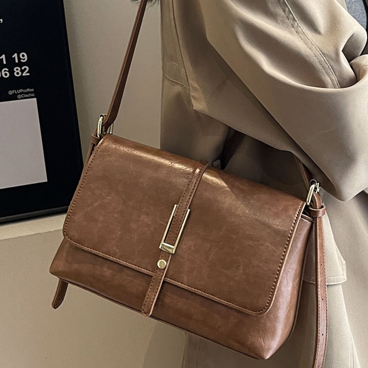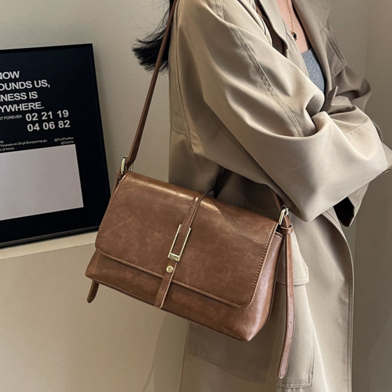 レトロな風合いのスクエア型ショルダーバッグ。