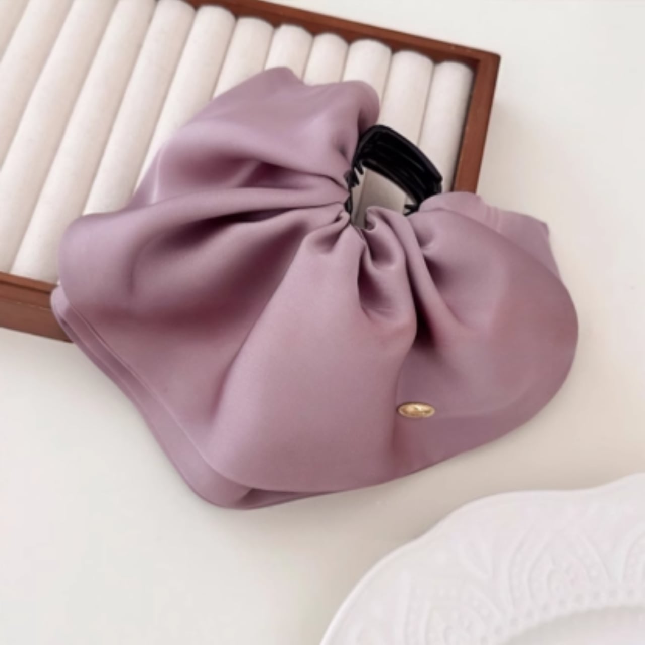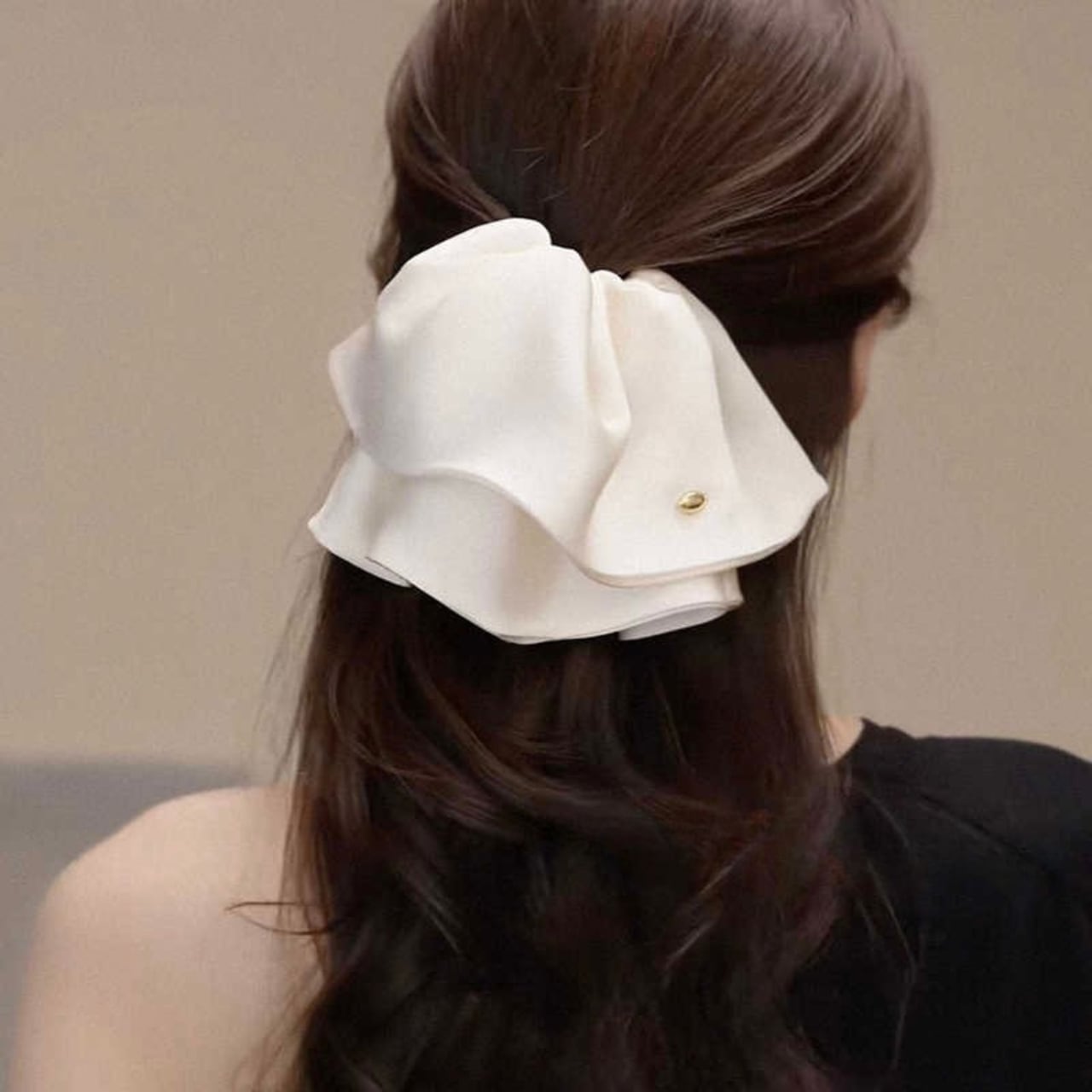 リボン風の上品なオーバル型のヘアクリップで、いつものヘアスタイルを