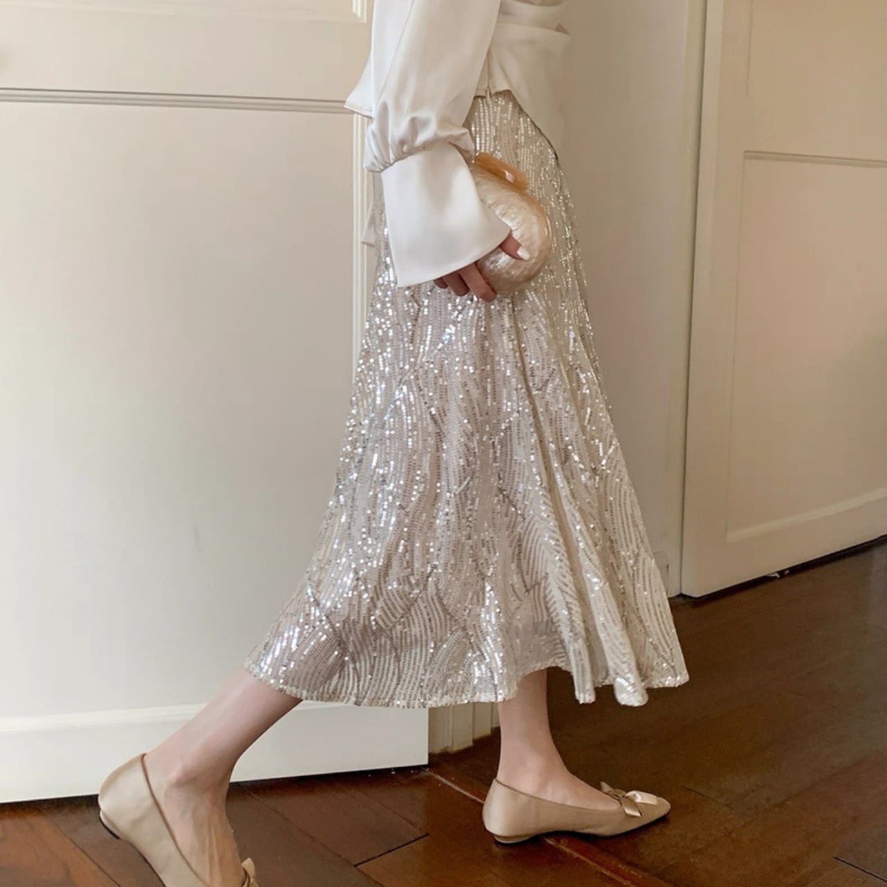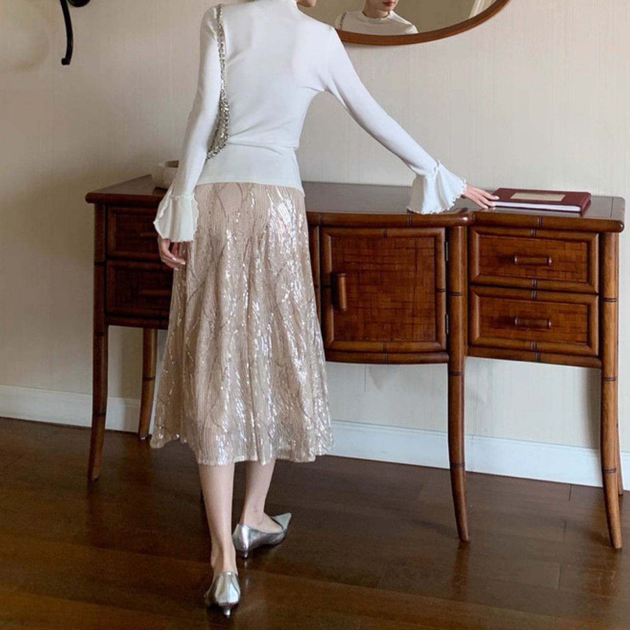 スパンコールが美しく輝くマーメイドスカートです。