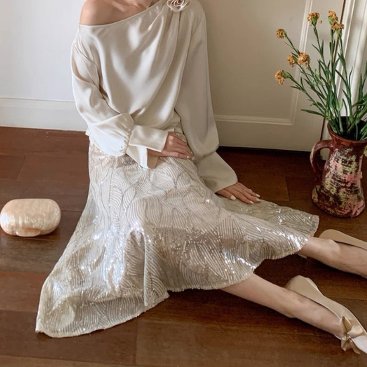 スパンコール装飾マーメイドスカート W00182