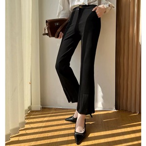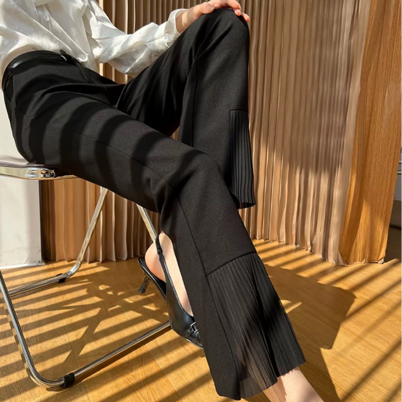 フレアシルエットとプリーツ加工が魅力のワイドレッグパンツ。