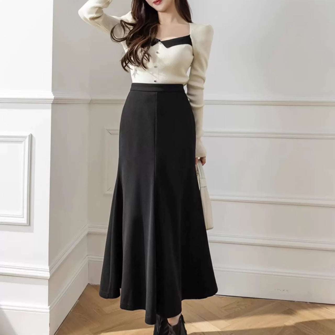 ハイウエスト マーメイドシルエット ロングスカート W00194