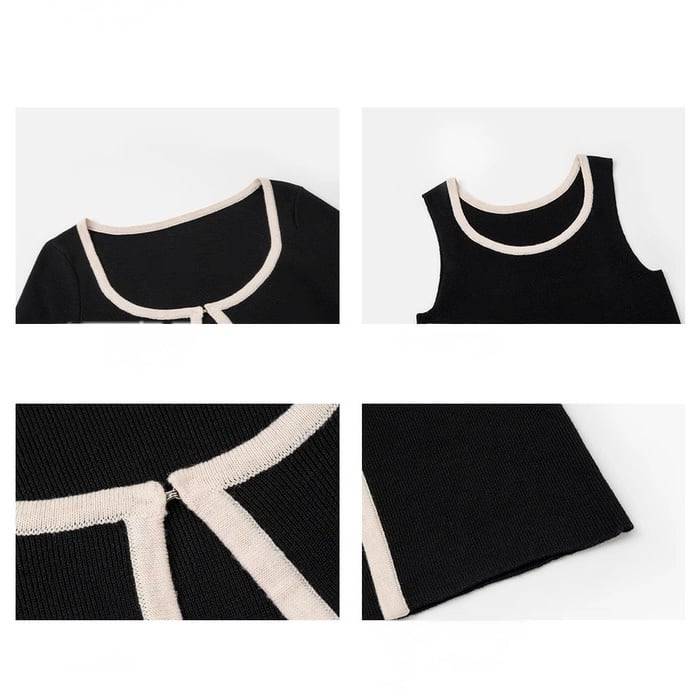 バイカラーデザインスクエアネックニット&キャミセット W00243