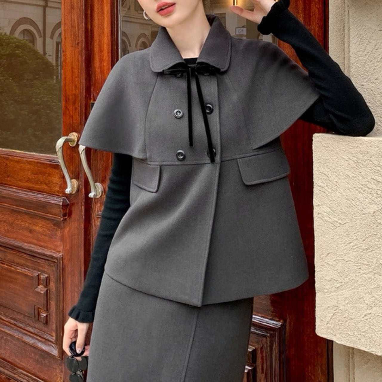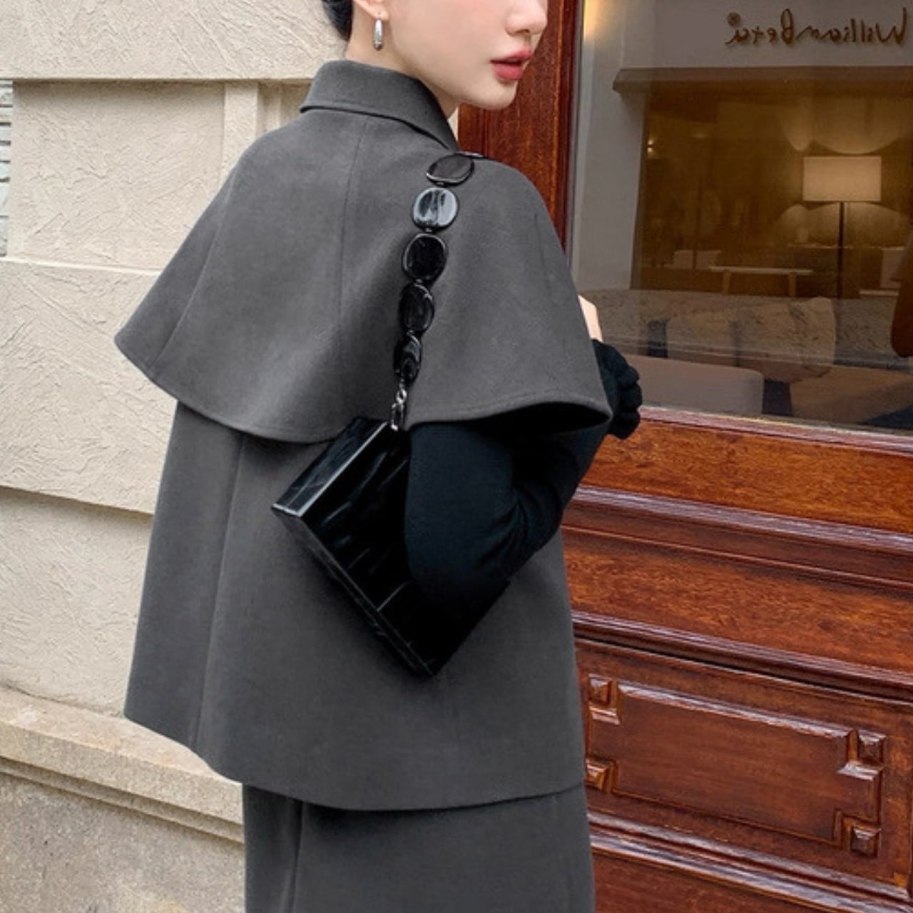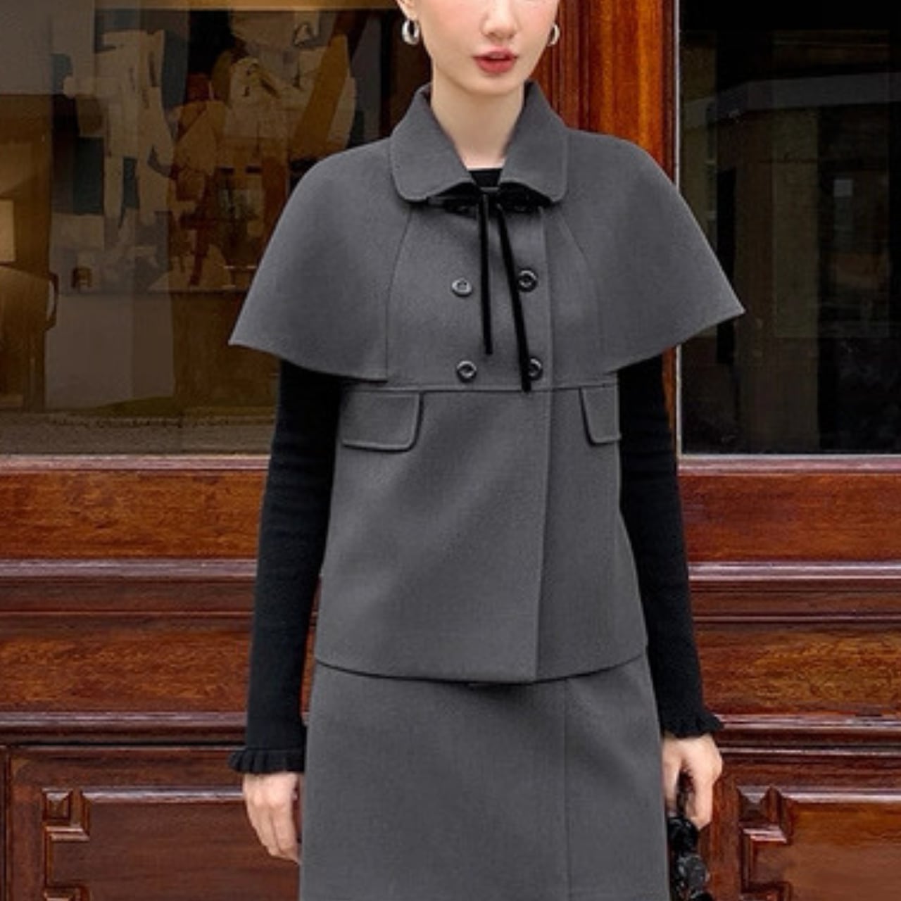 上品さと個性を兼ね備えたケープ風ショートジャケット。