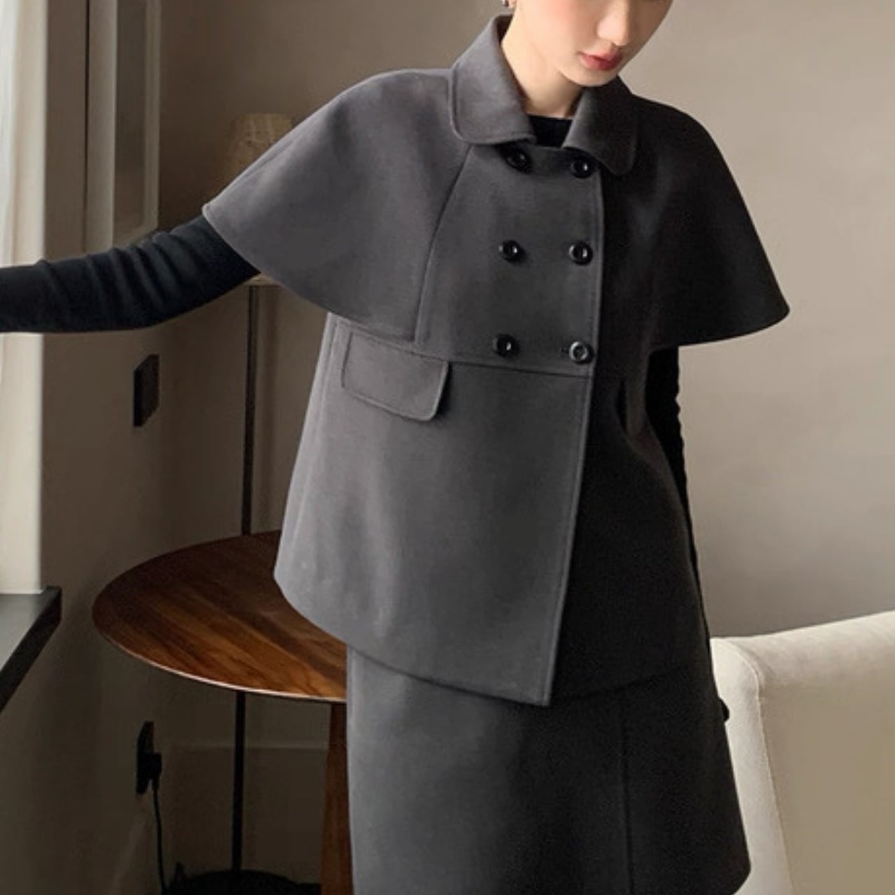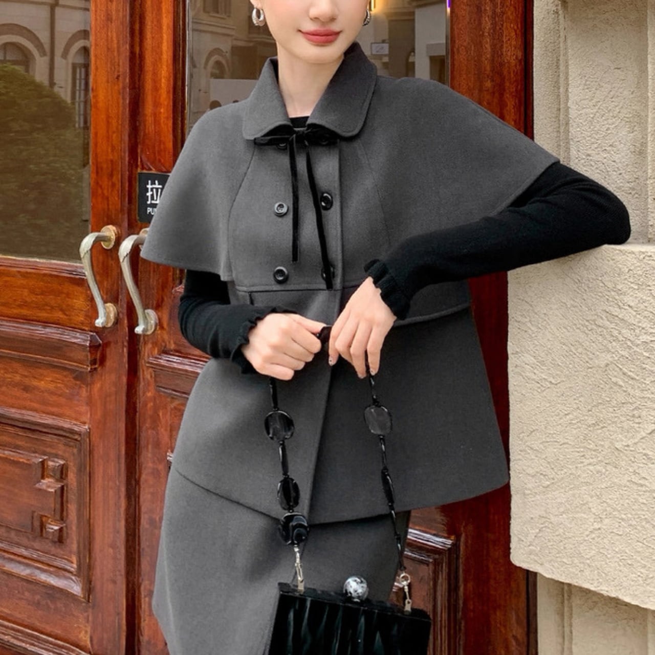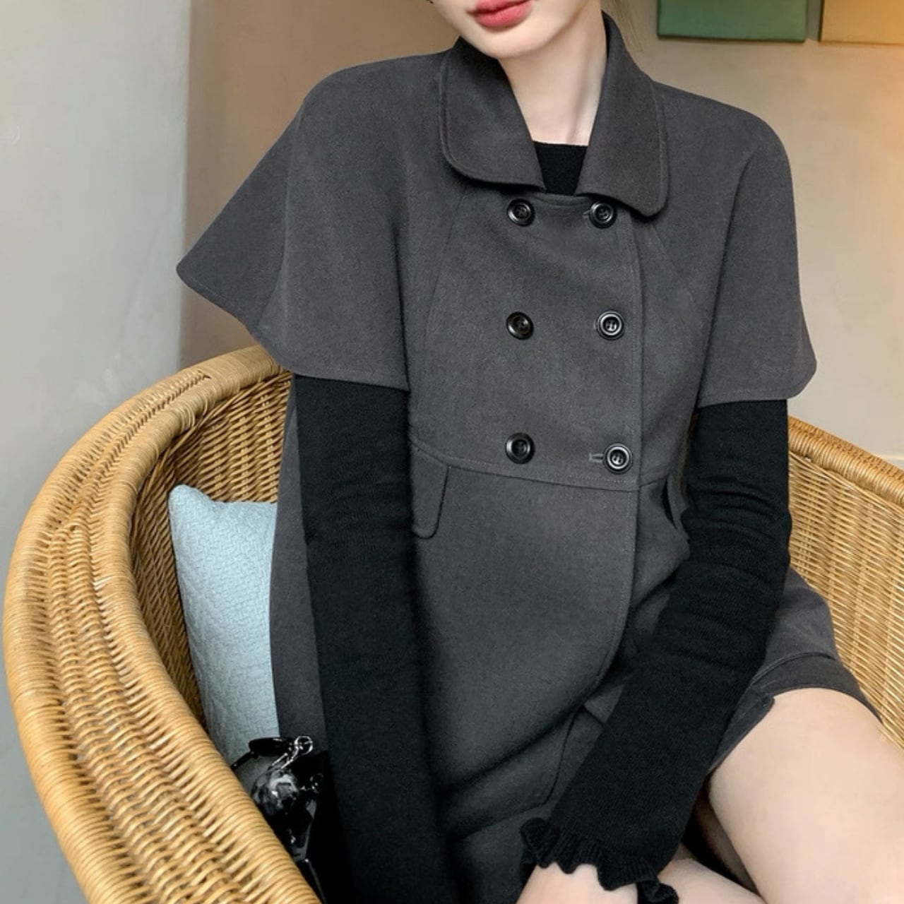 上品さと個性を兼ね備えたケープ風ショートジャケット。