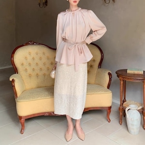 フレンチツイストカラーリボンブラウス W00281