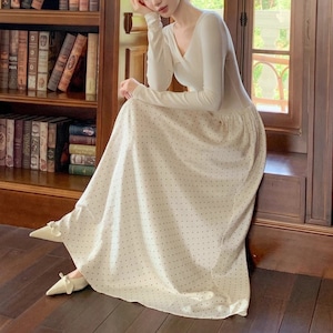 フレンチヴィンテージ風 ドットロングワンピース W00282