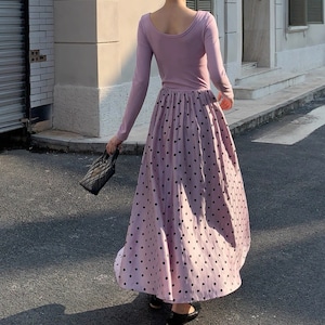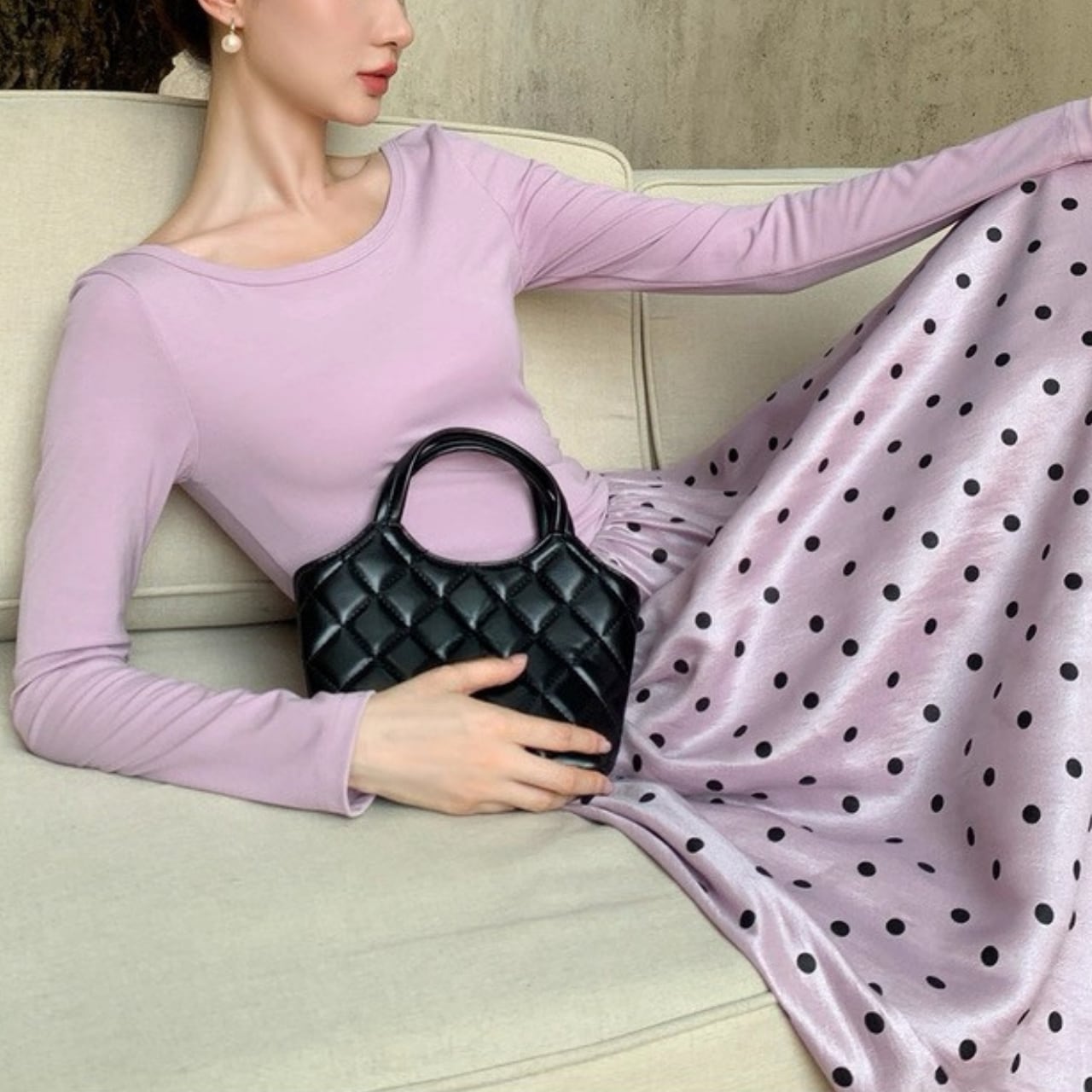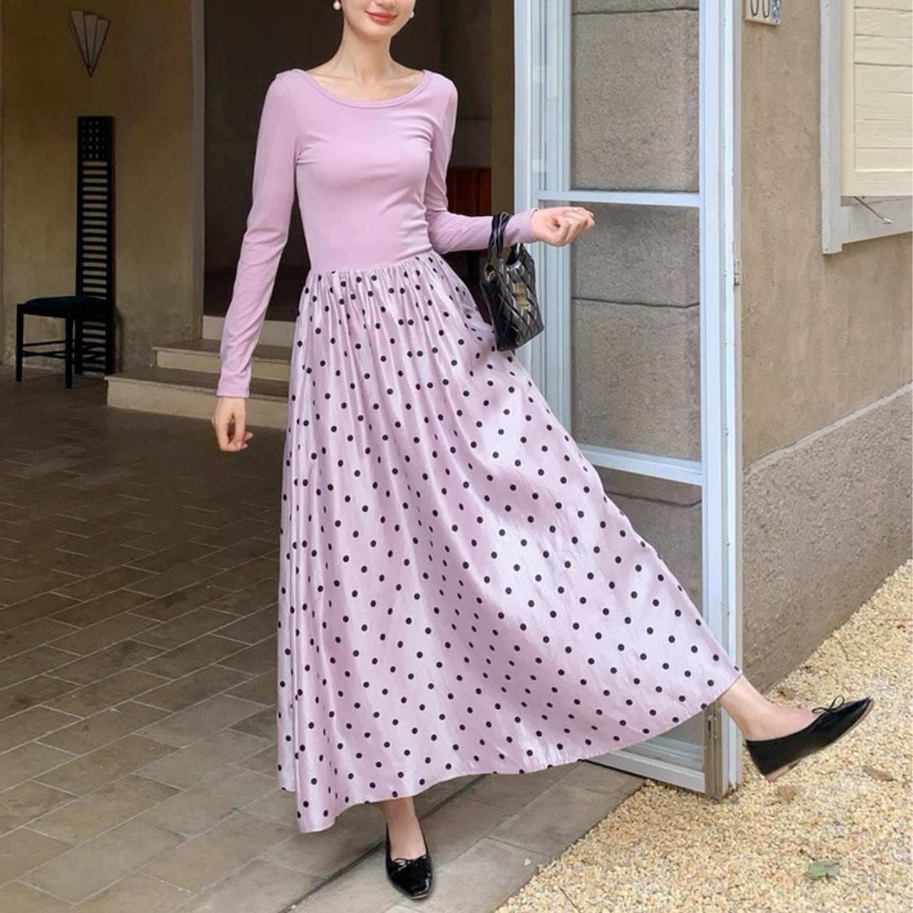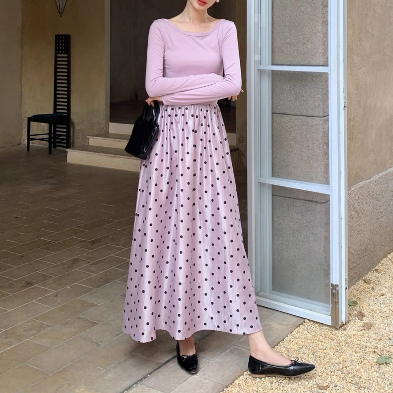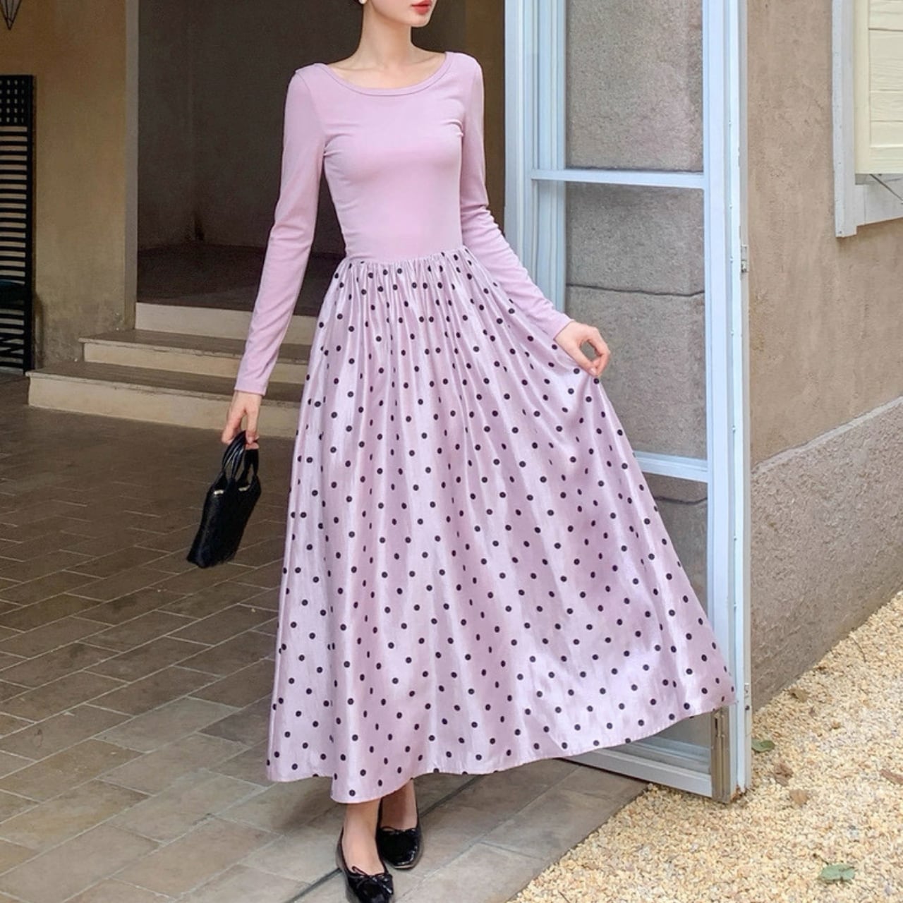 軽やかなドット柄スカートを組み合わせたフレンチムード漂うワンピース。