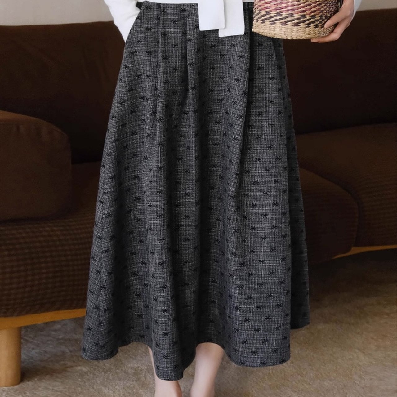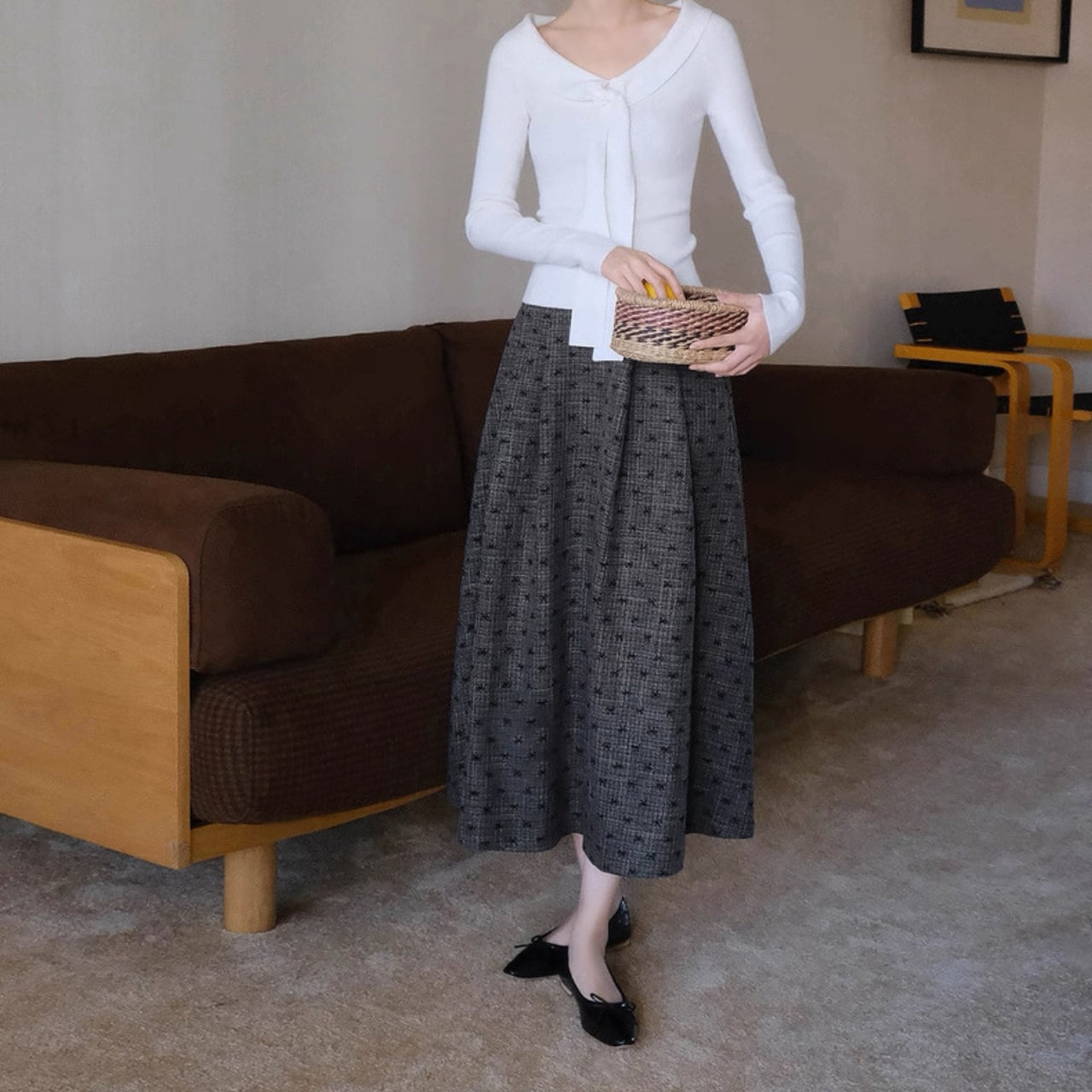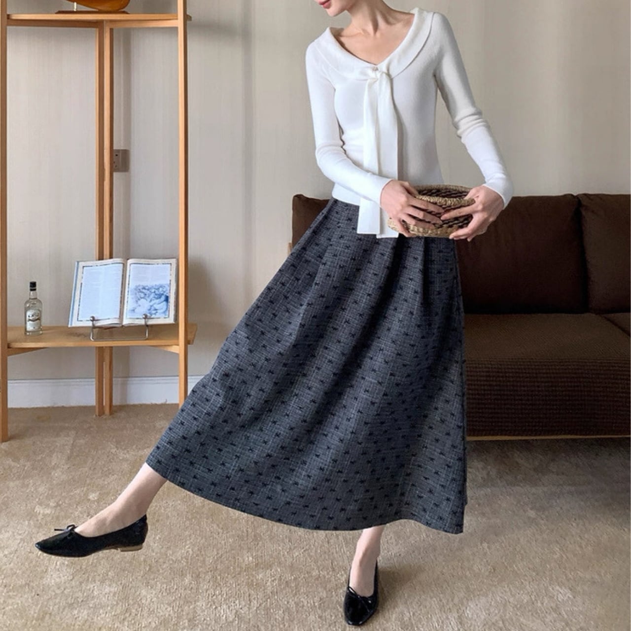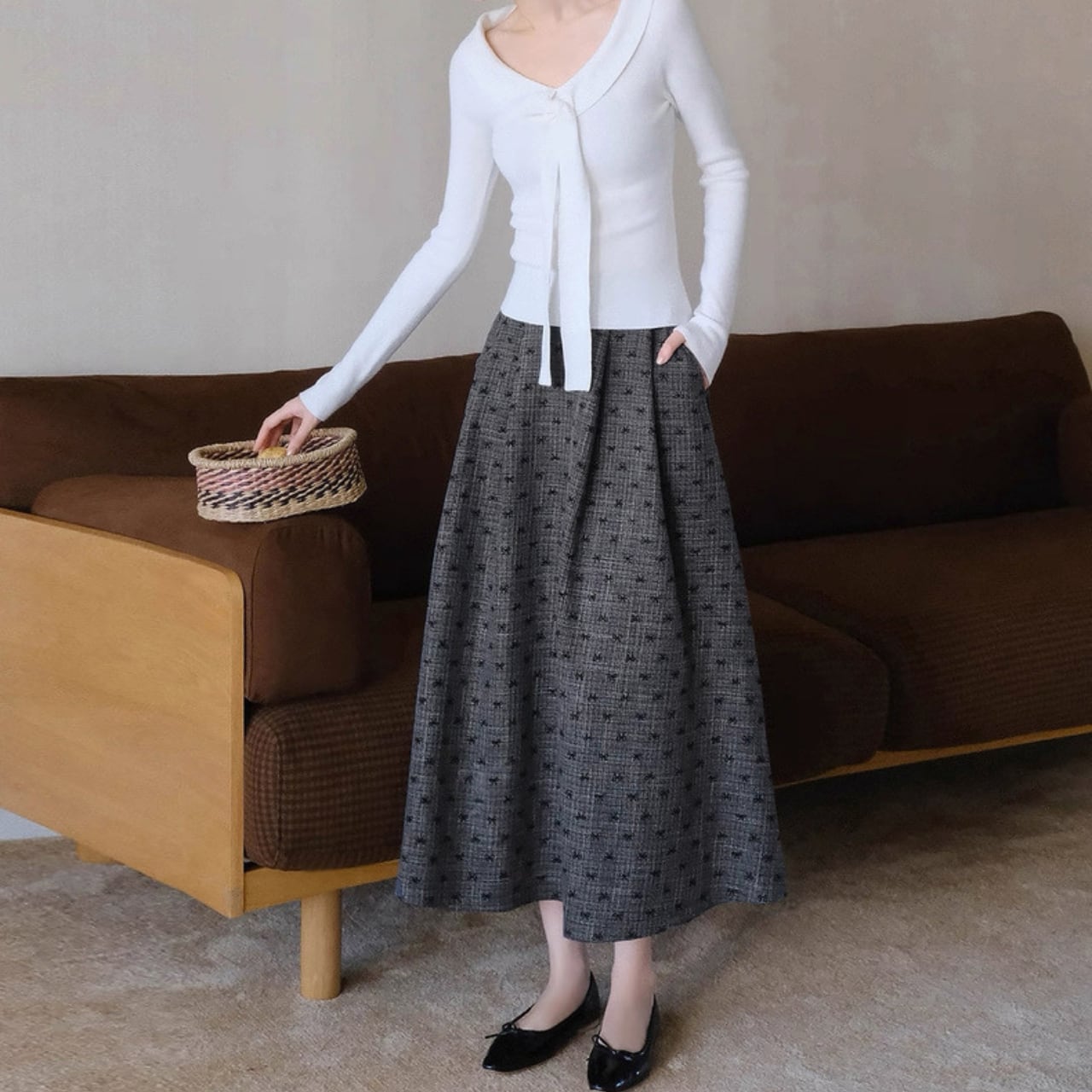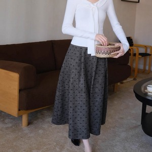 上品なツイード調のミニリボンが目を惹く、クラシカルなフレアスカート。