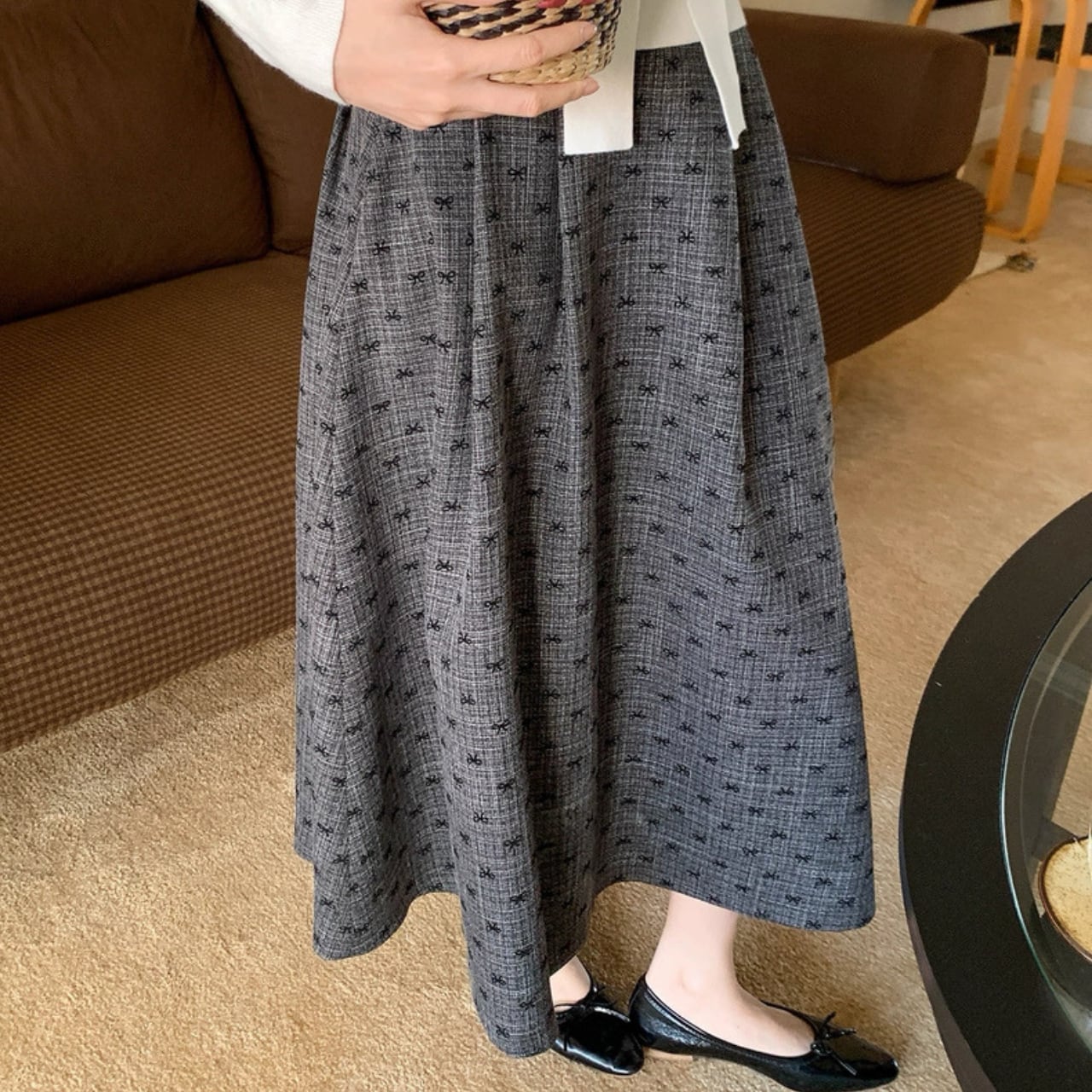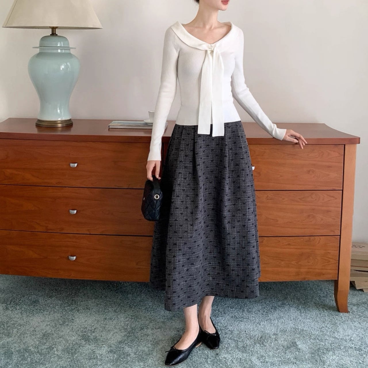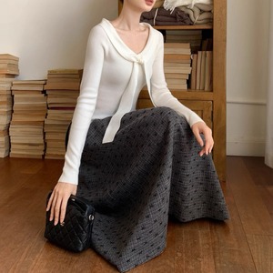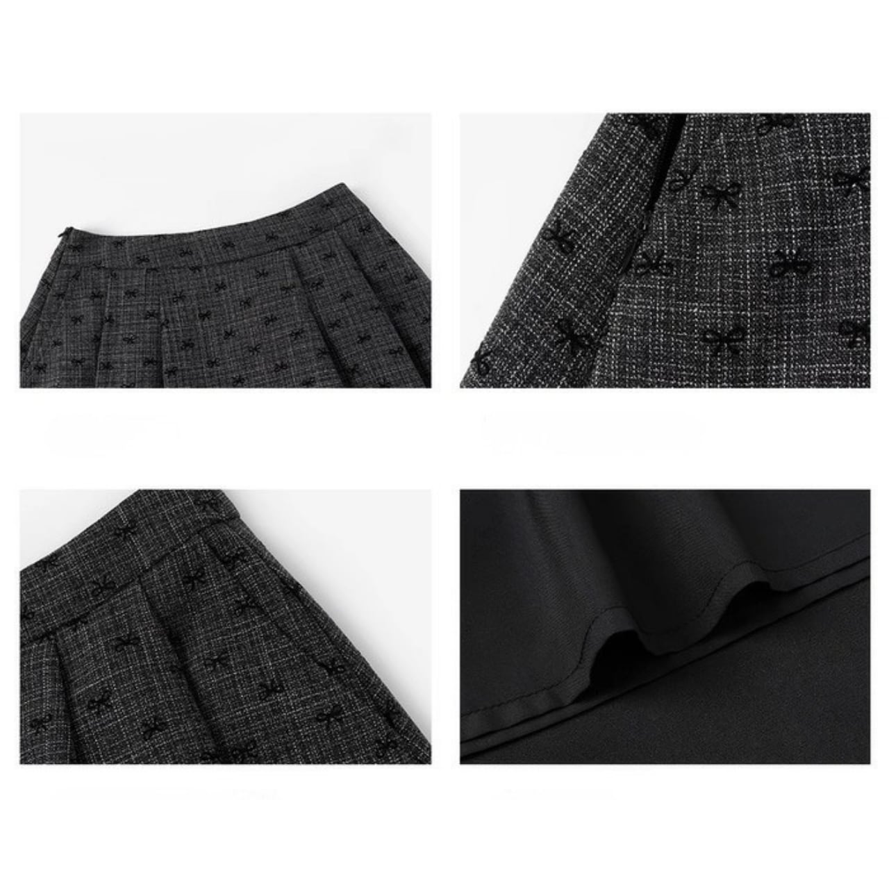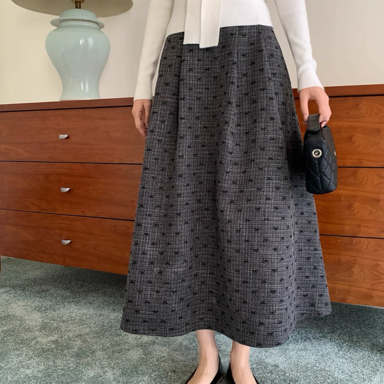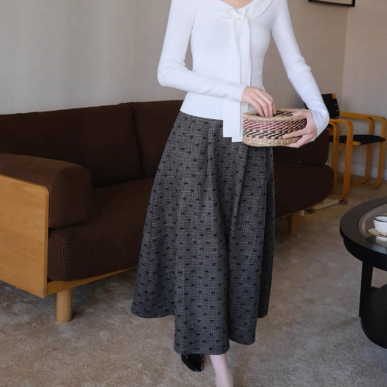 上品なツイード調のミニリボンが目を惹く、クラシカルなフレアスカート。