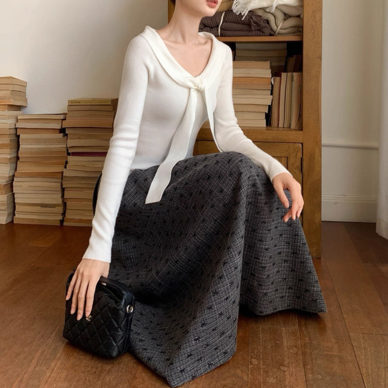 シンプルなトップスと合わせるだけで、気品ある大人フェミニンな着こなしに。