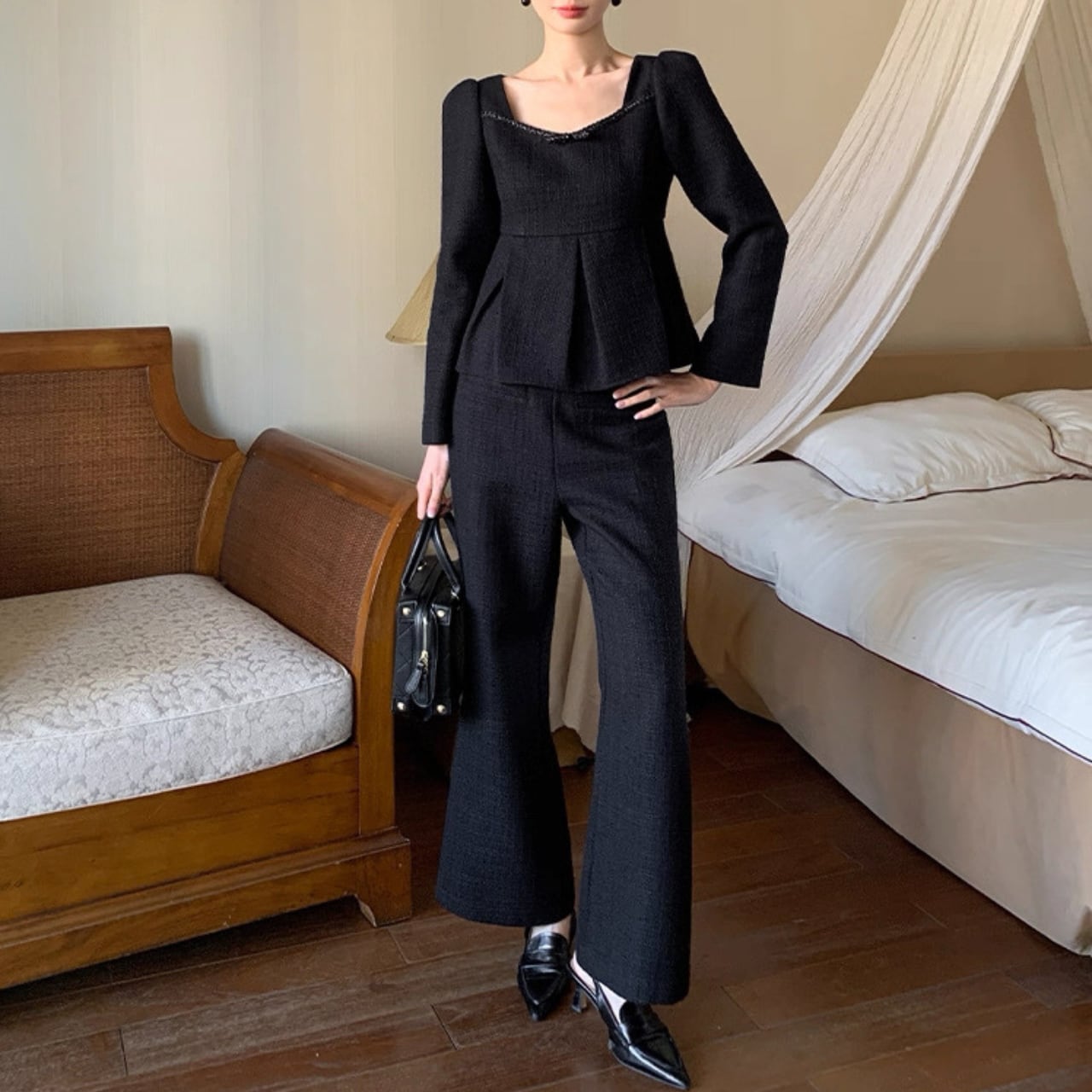 立体的なペプラムシルエットがウエストをすっきり見せ、女性らしい曲線を引き立てます。
