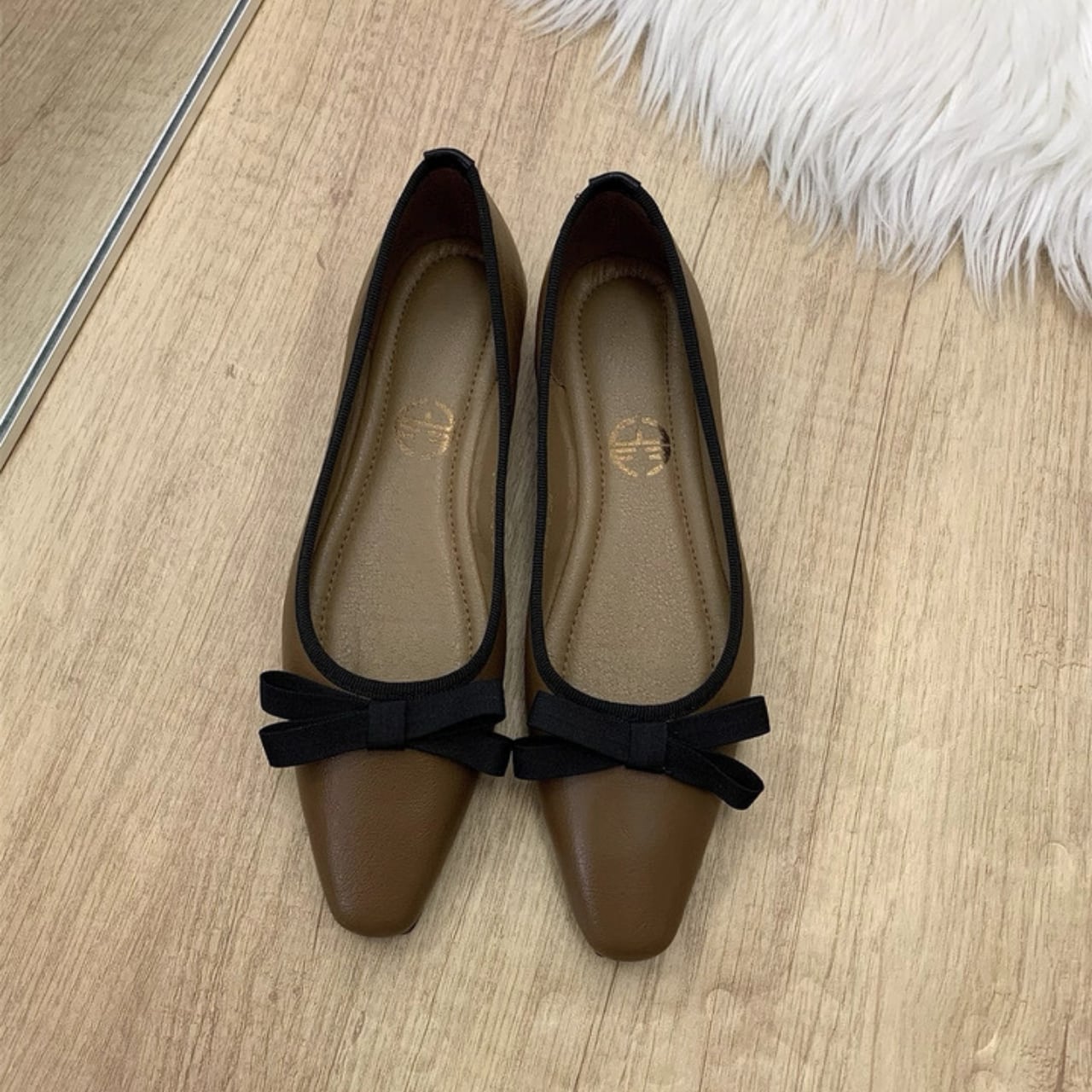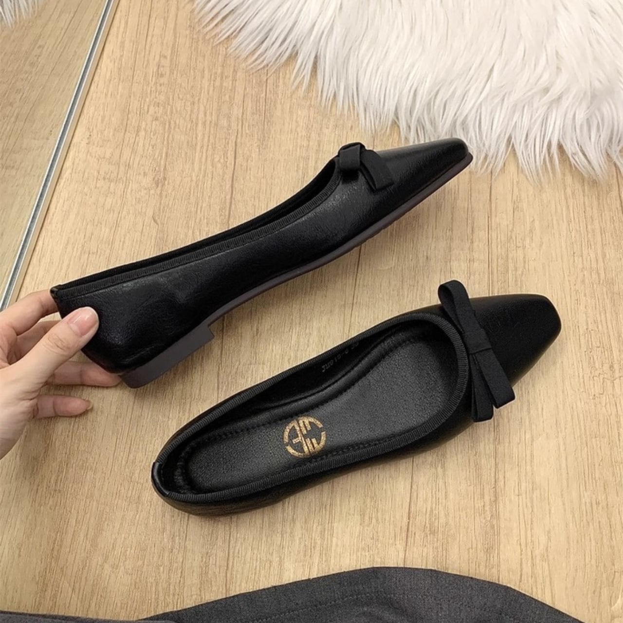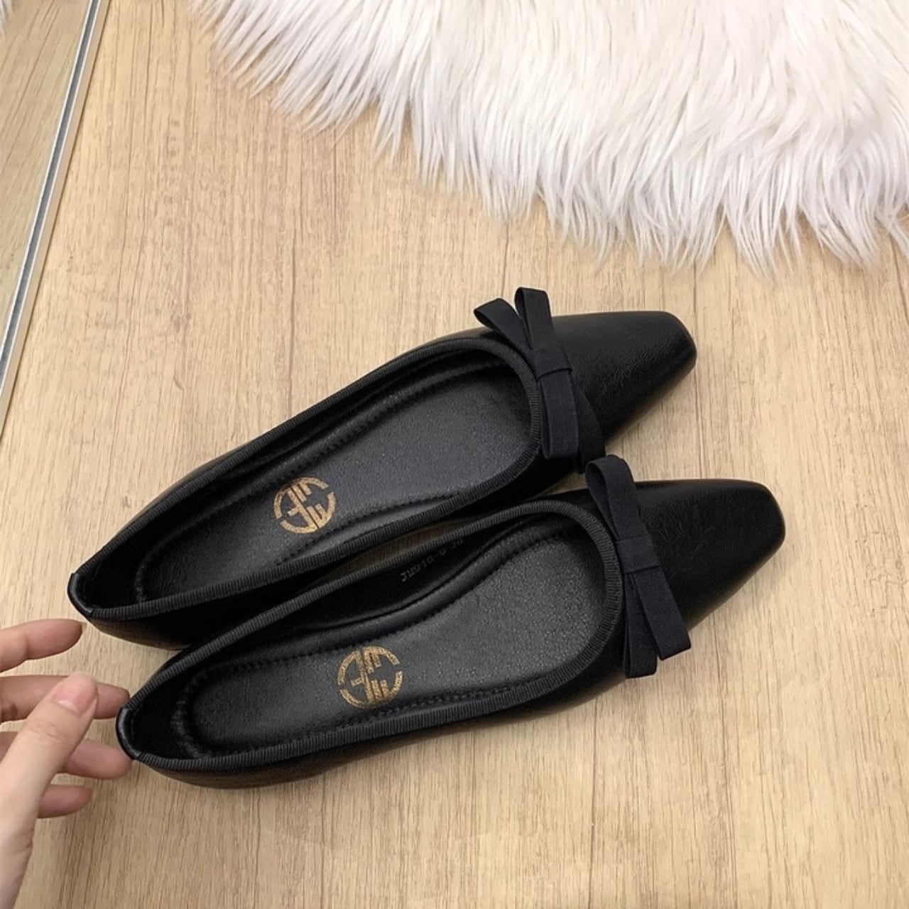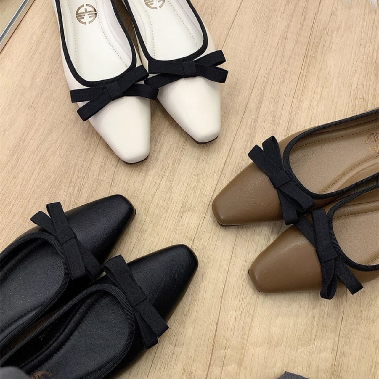 スクエアトゥ リボンフラットシューズ W00304