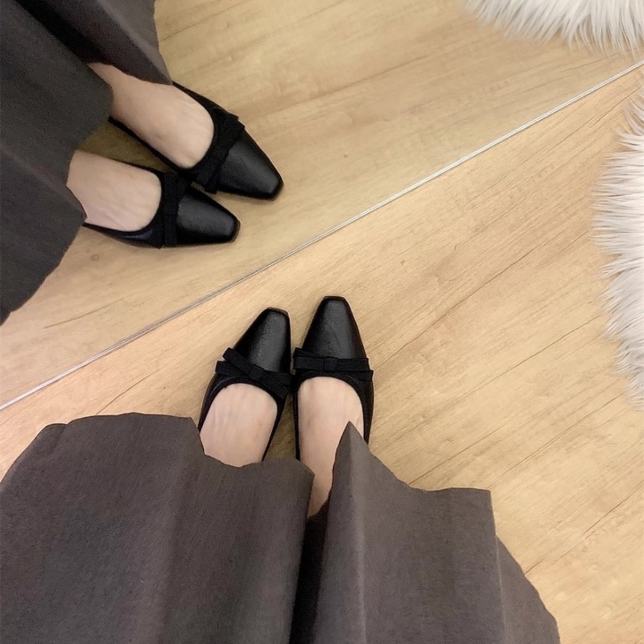 パンツにもスカートにも合わせやすい、万能バレエシューズ。