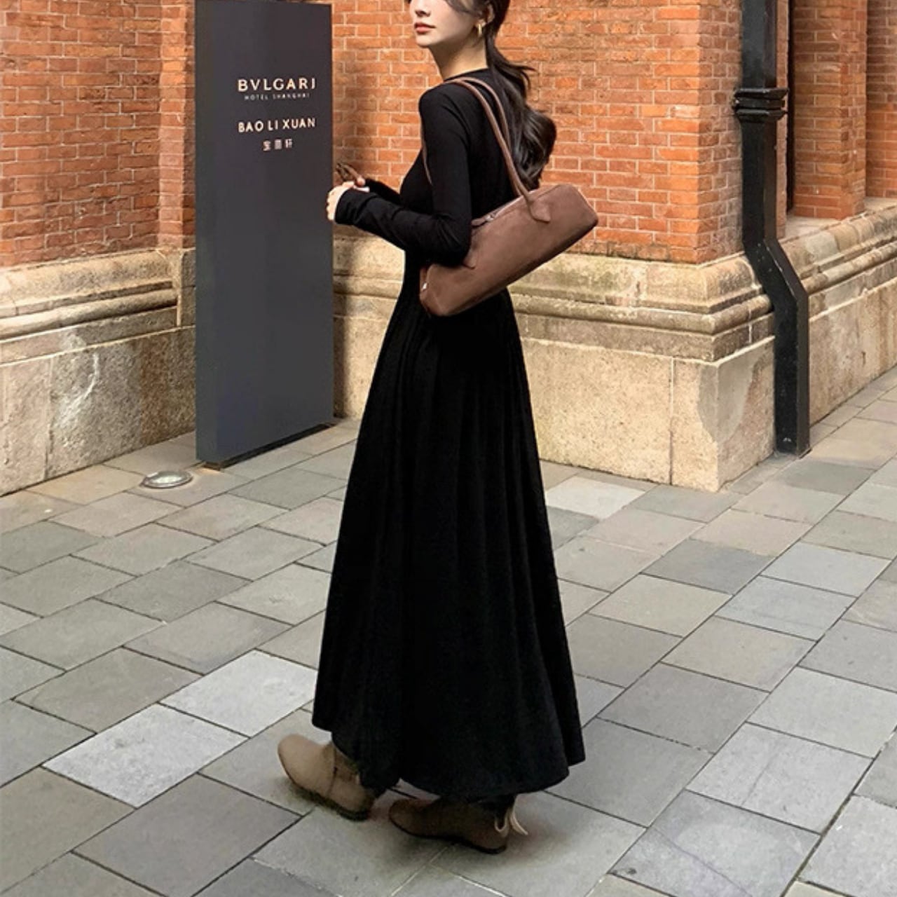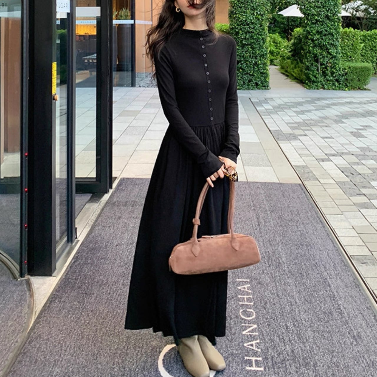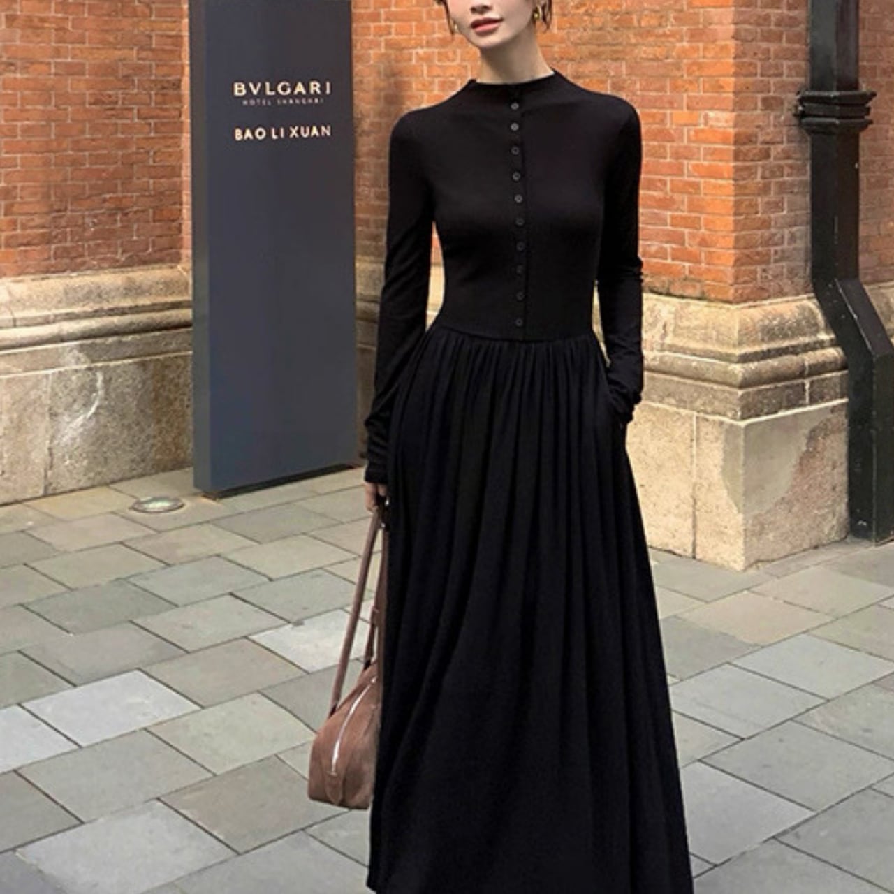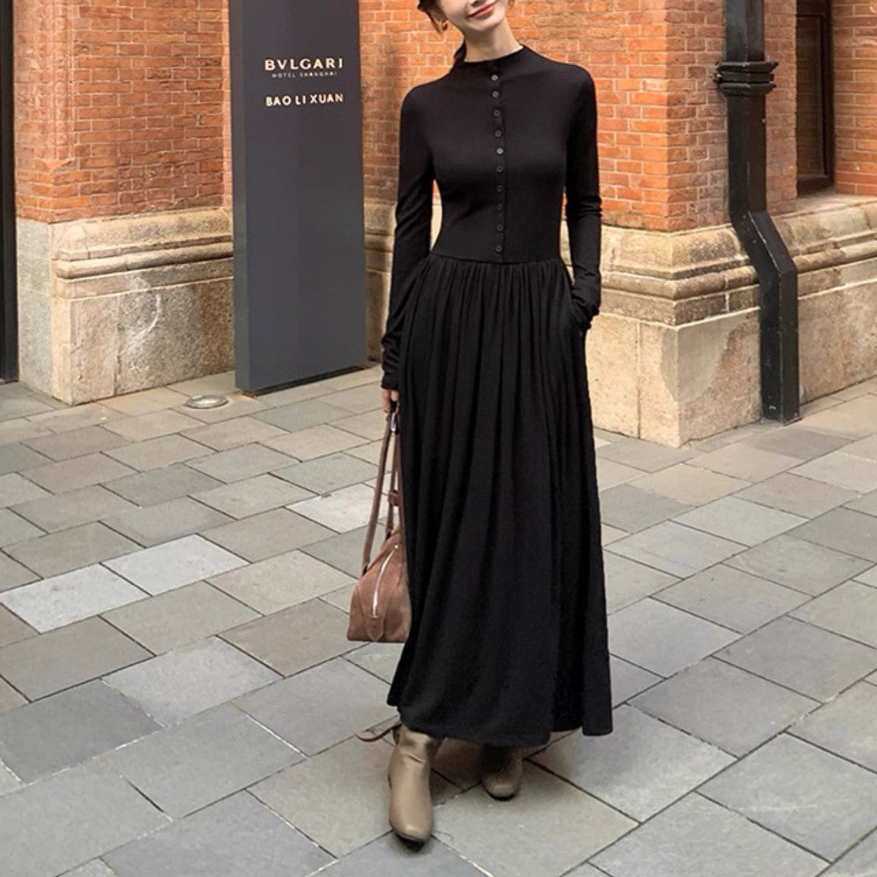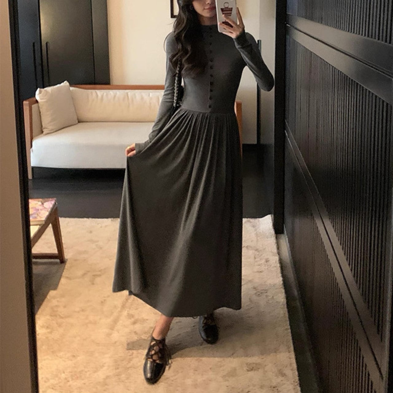 落ち感のあるロングフレアで大人の女性らしさが引き立つ万能ワンピース。