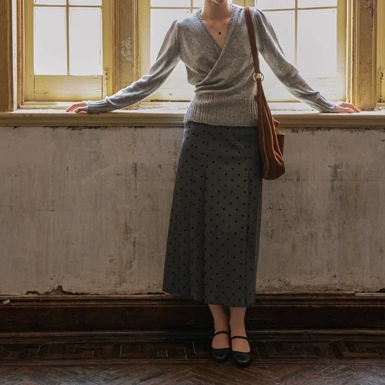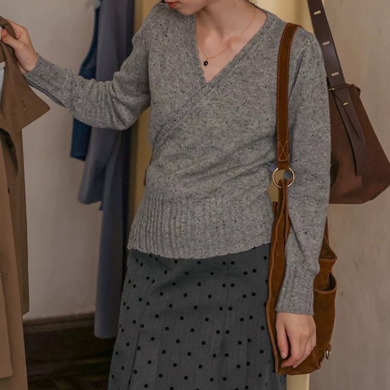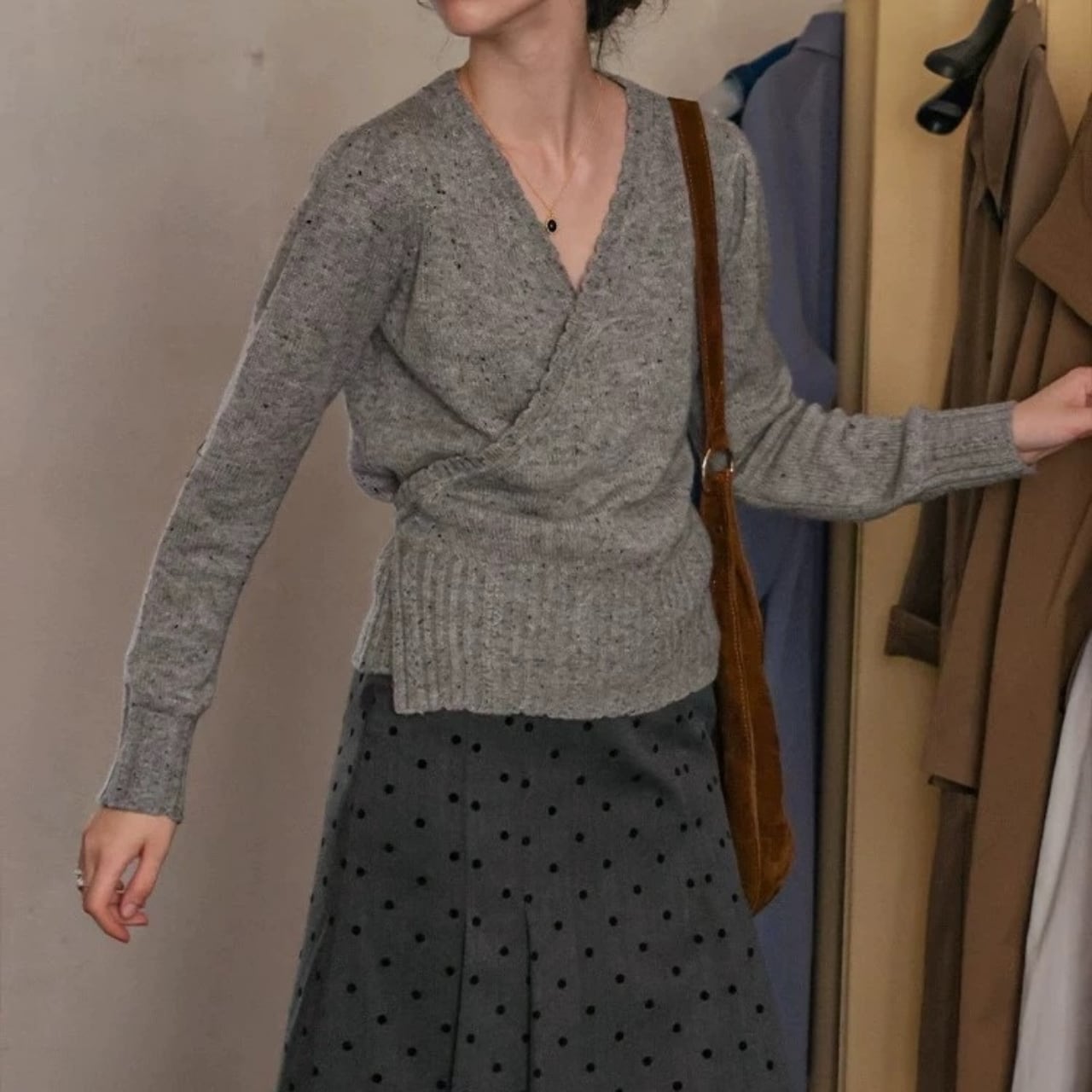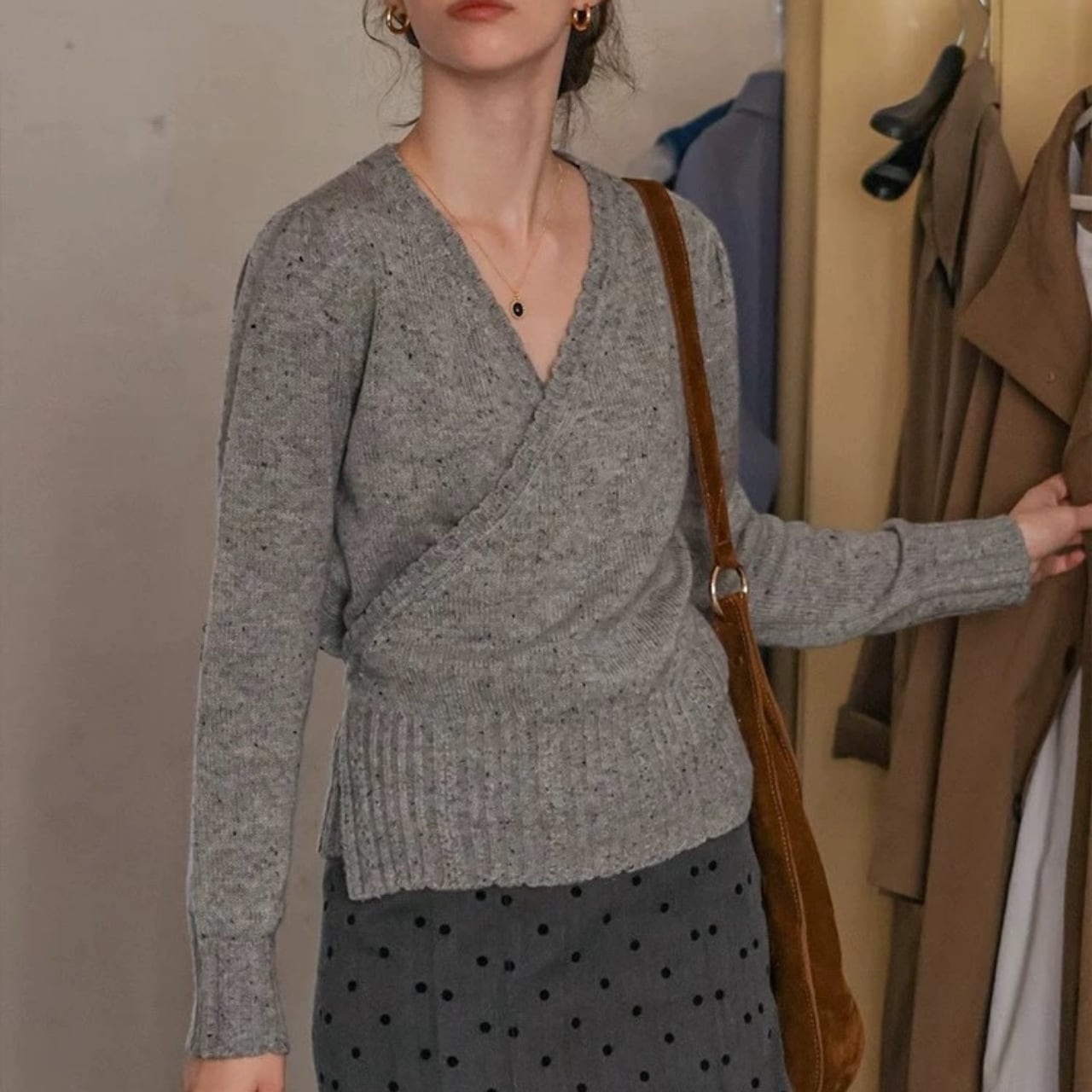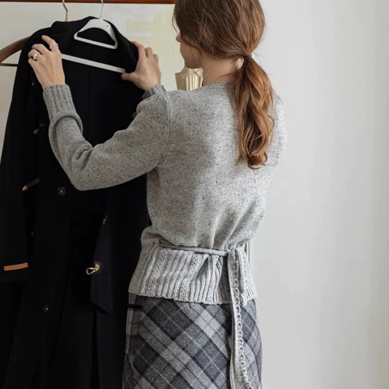 杢グレーの柔らかな表情がクラシックなムードを引き立て、飽きのこないタイムレスな一枚。