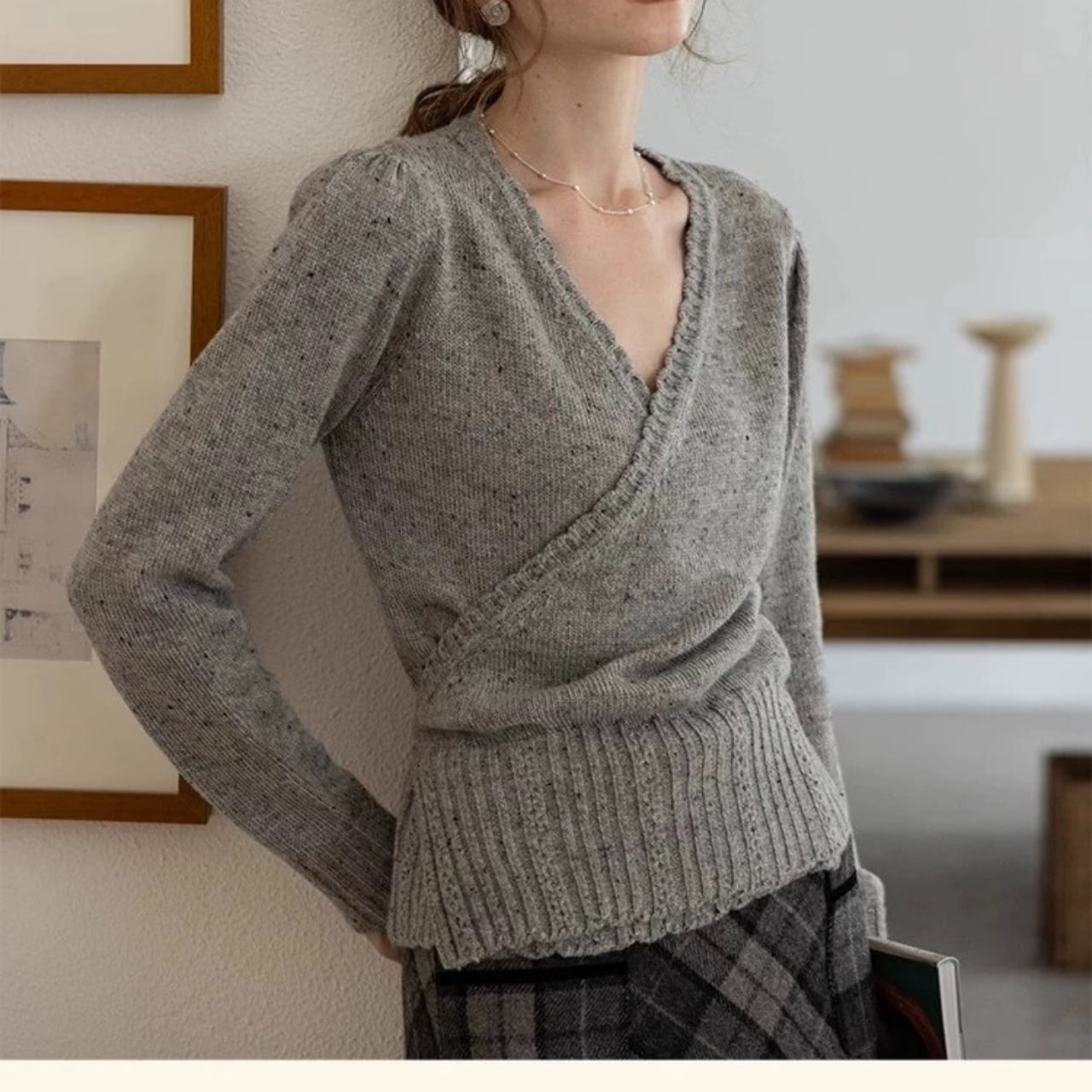 上品なVラインを描くラップデザインが、繊細で女性らしいシルエットを演出。