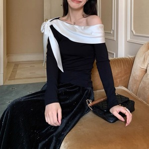 アシンメトリーリボン デザイントップス W00320