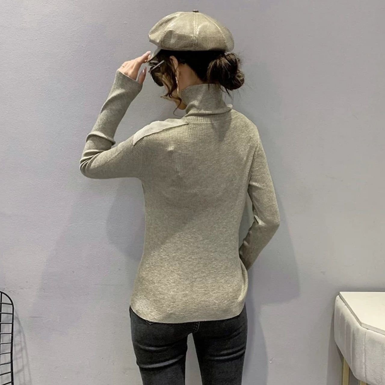 リブ素材のすっきりとしたシルエットで、女性らしいバランスに。