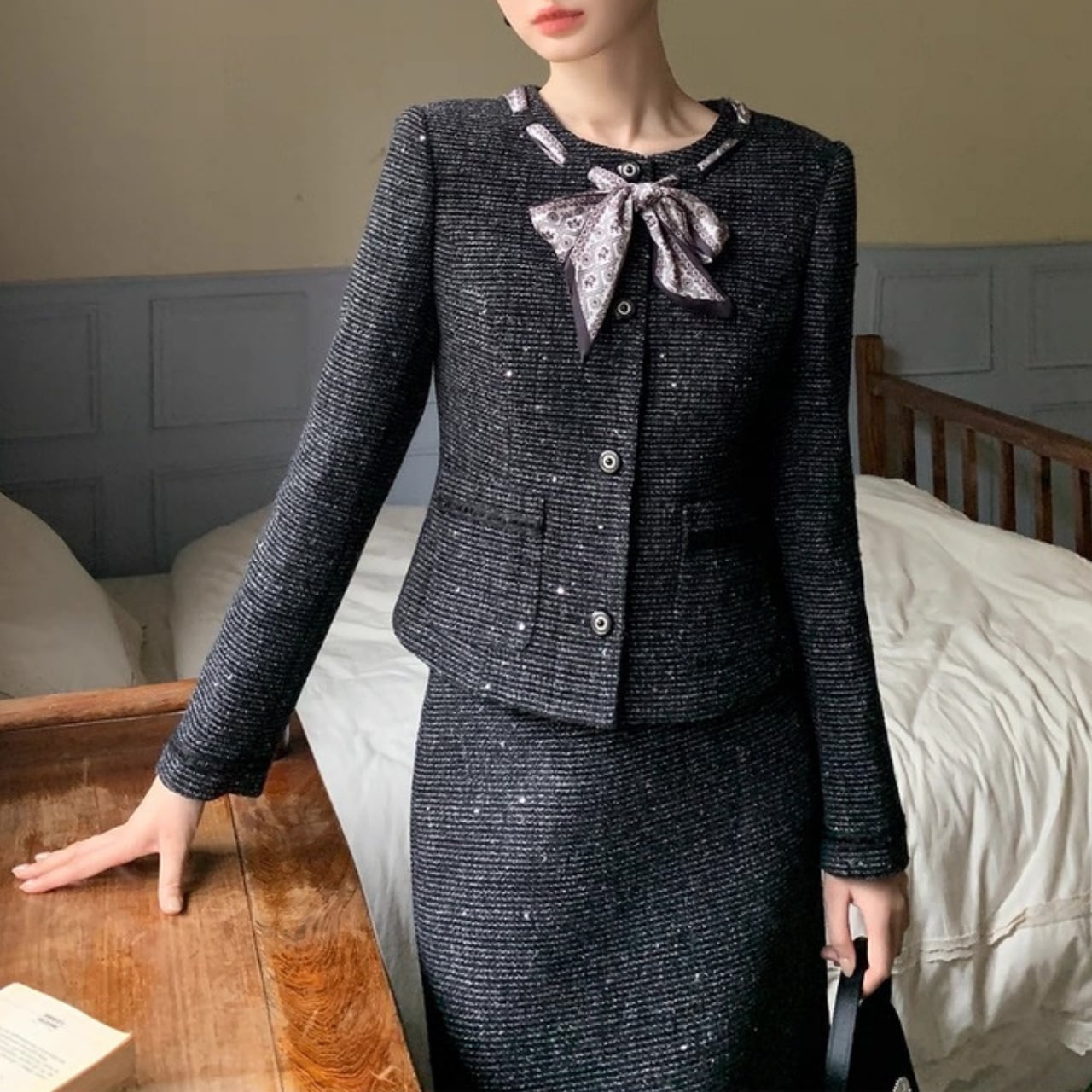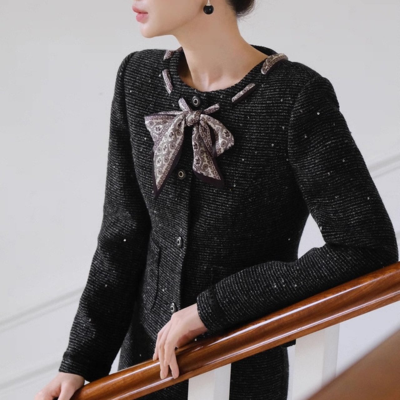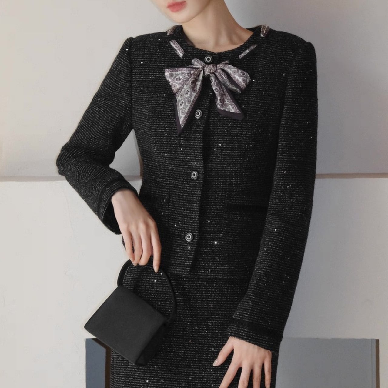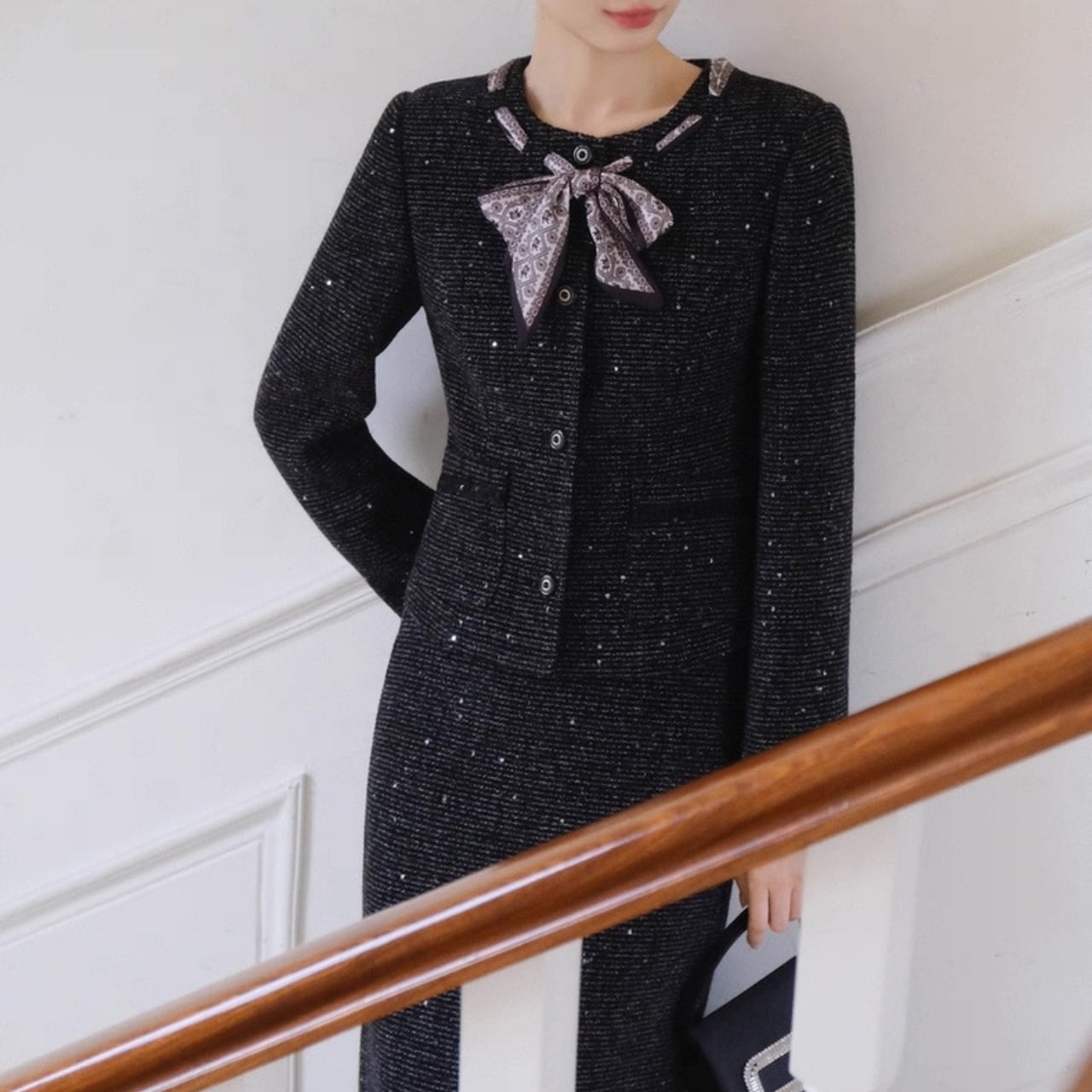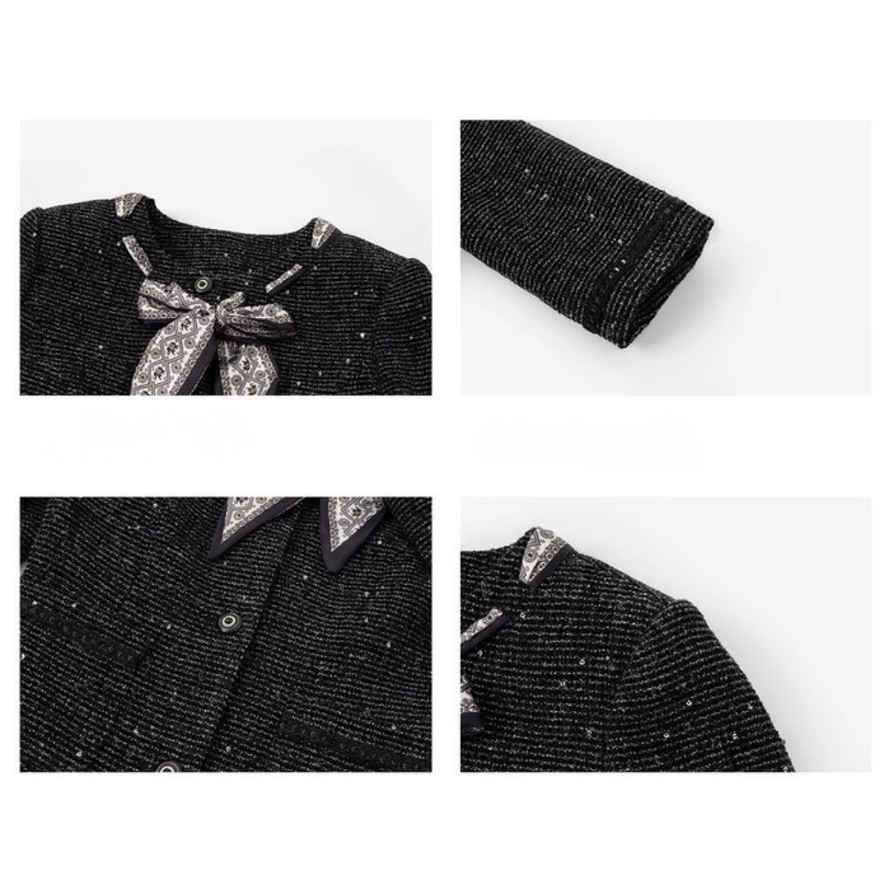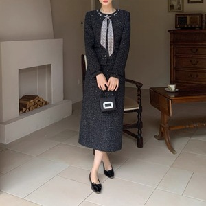 繊細なツイード素材とボウタイディテールが気品を漂わせるトップス。