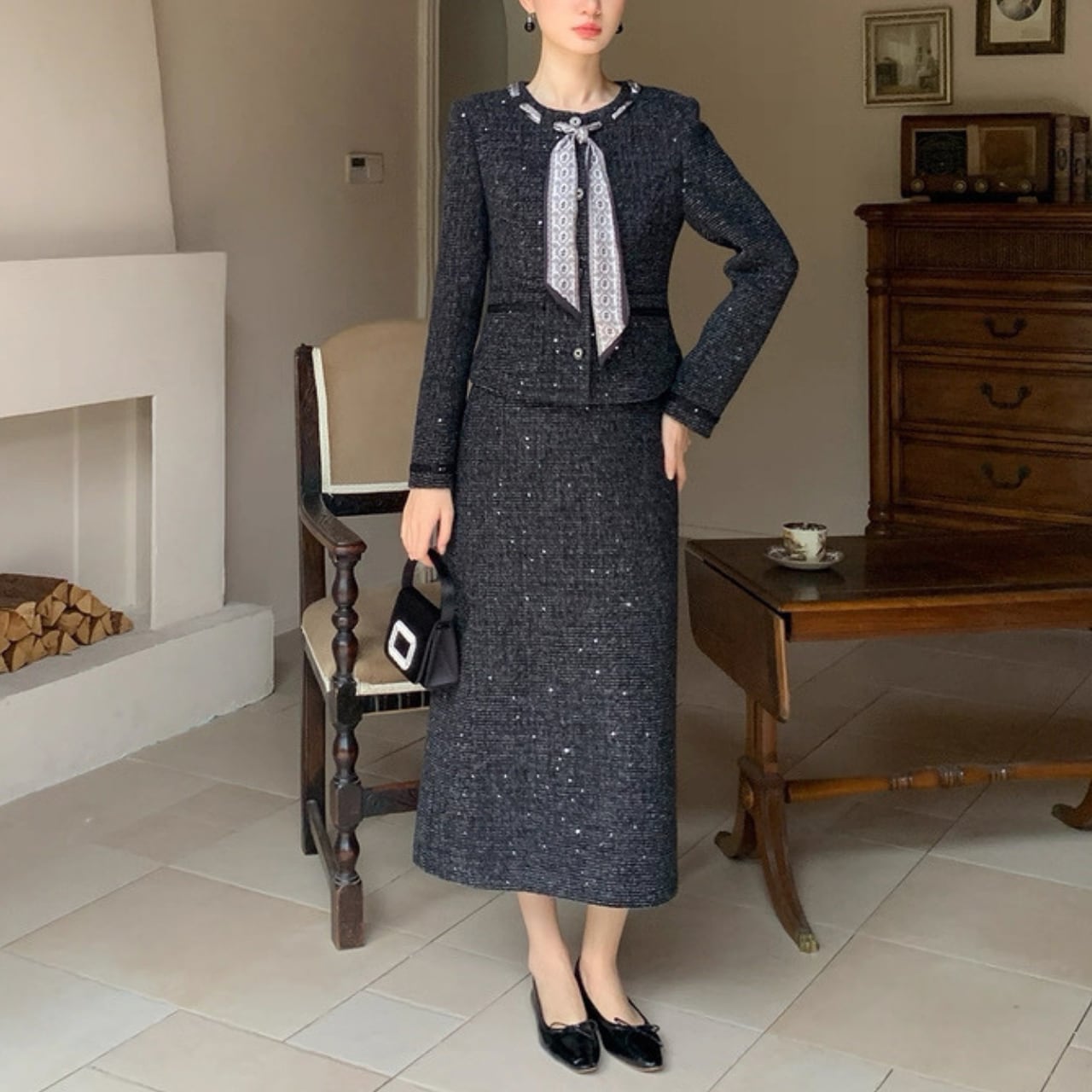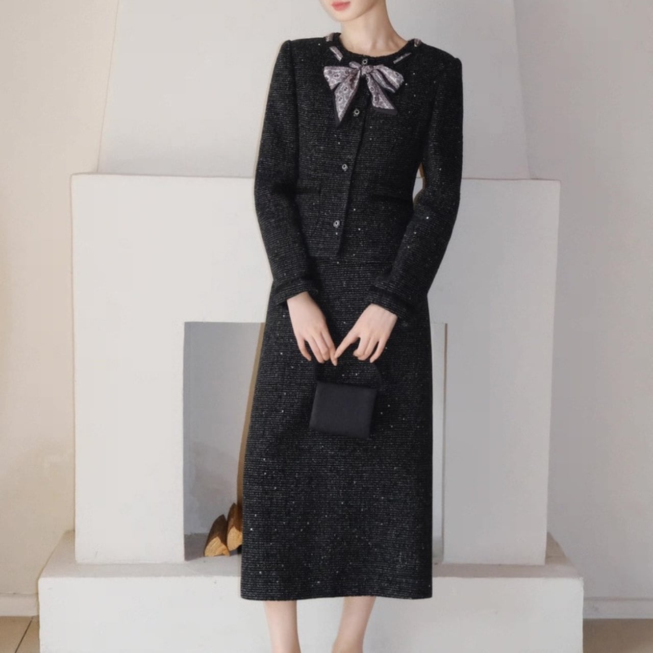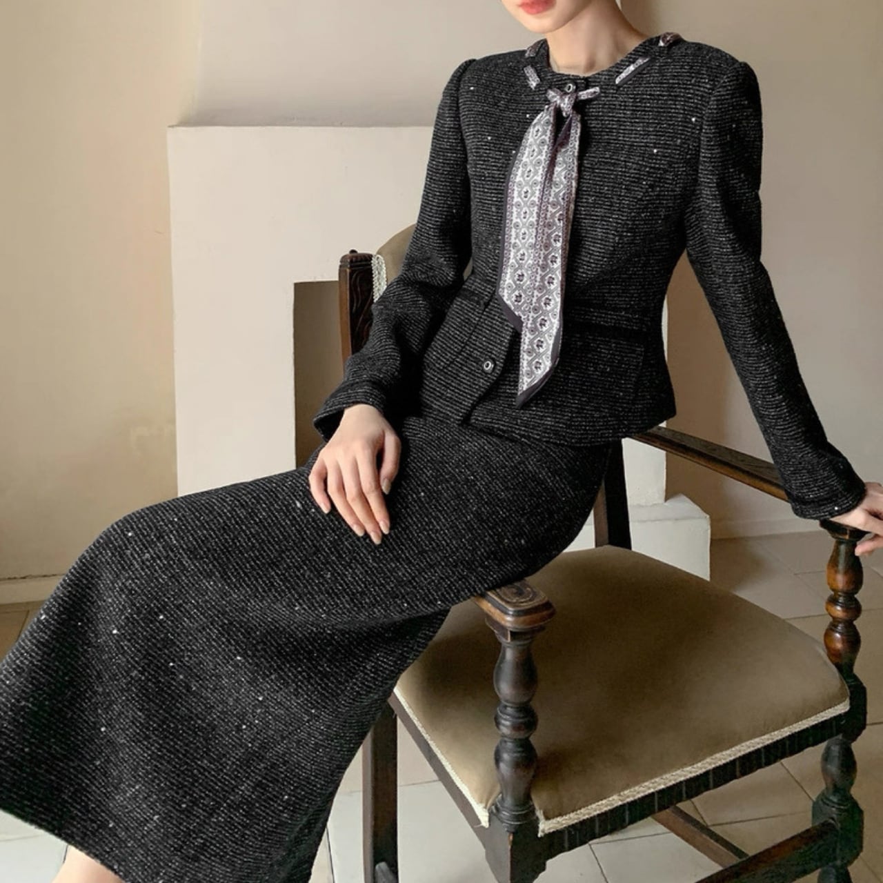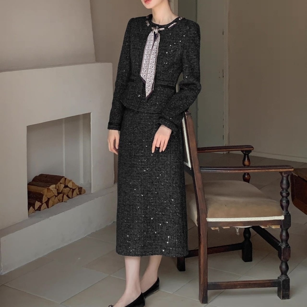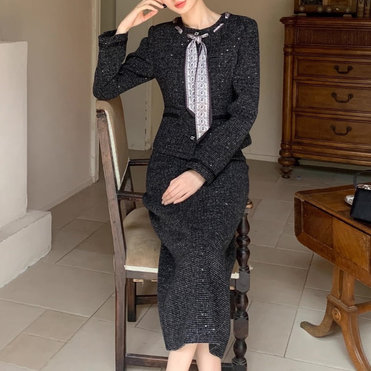 繊細なツイード素材とボウタイディテールが気品を漂わせるトップス。