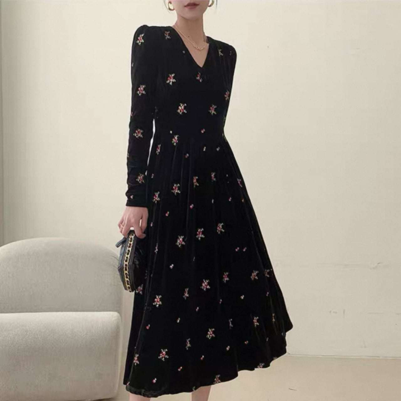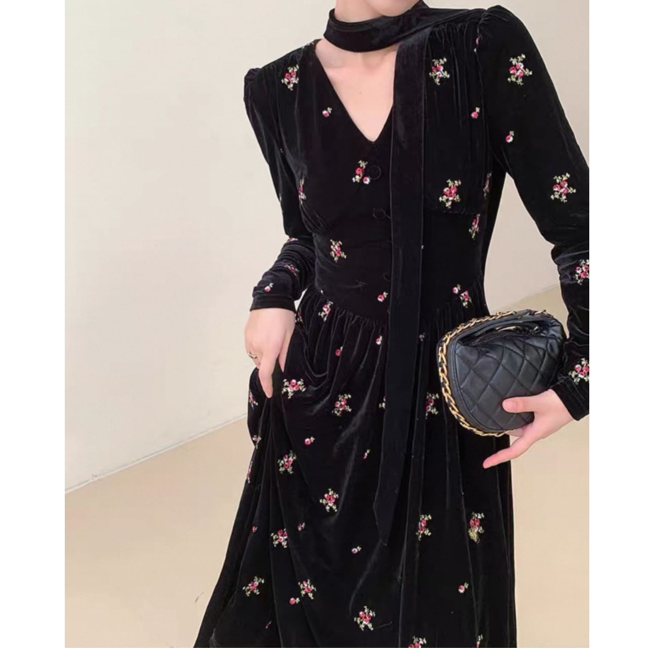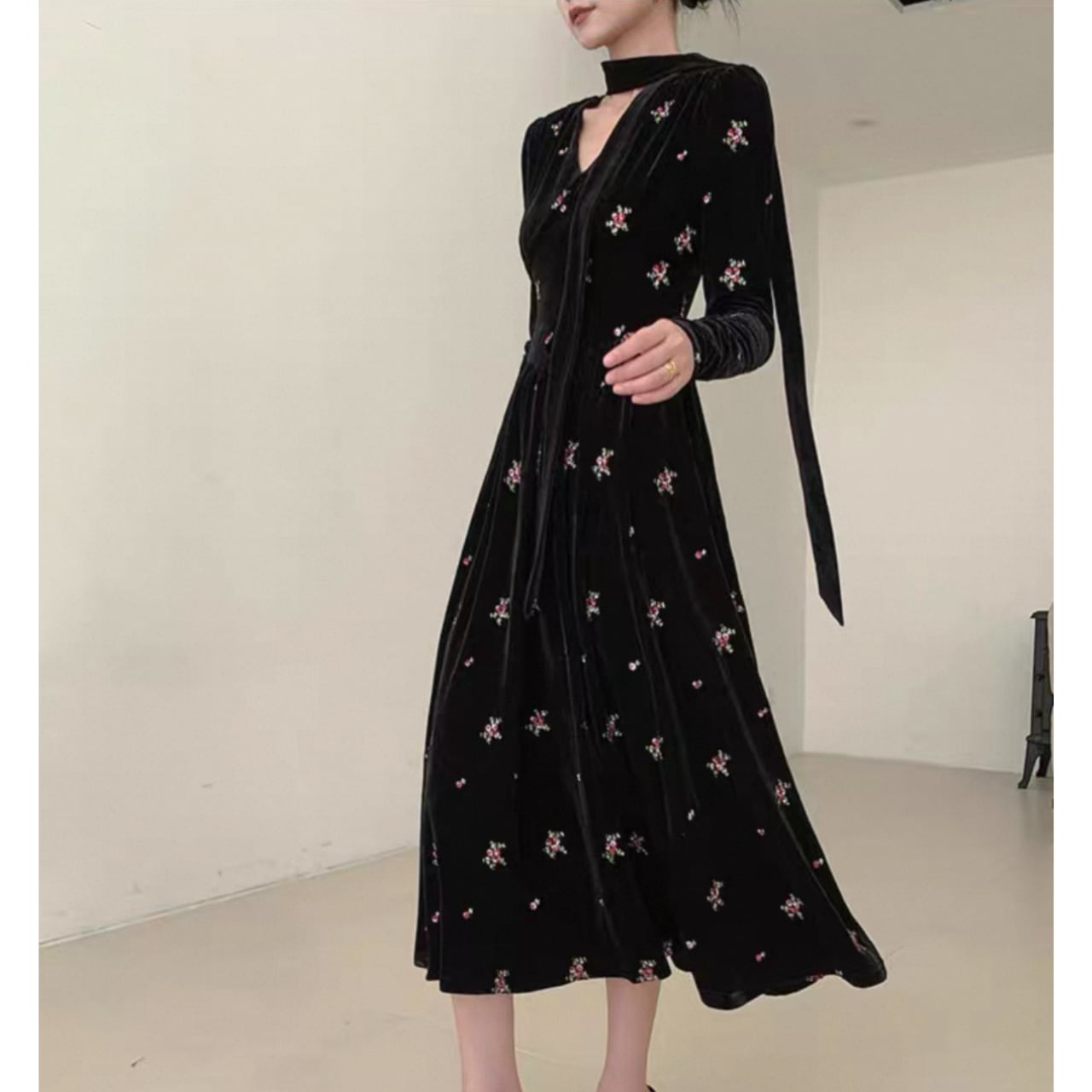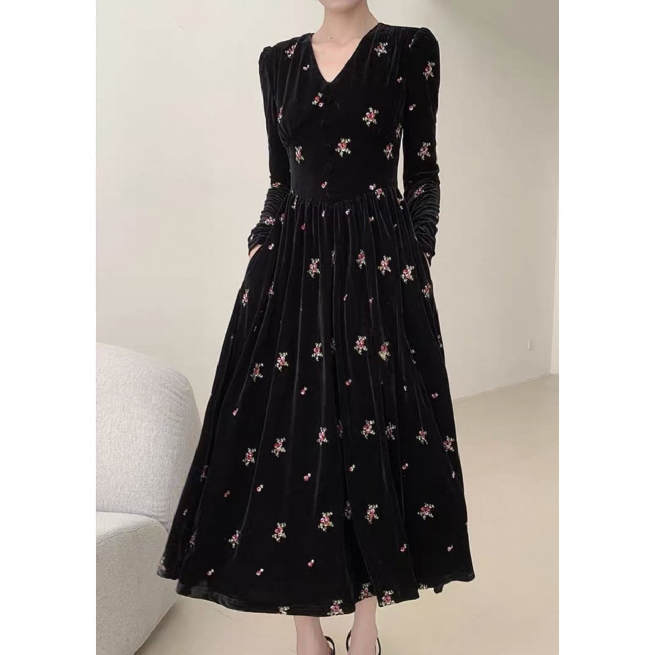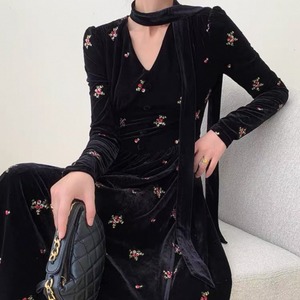 繊細なフラワープリントが大人フェミニンなVネックワンピース。