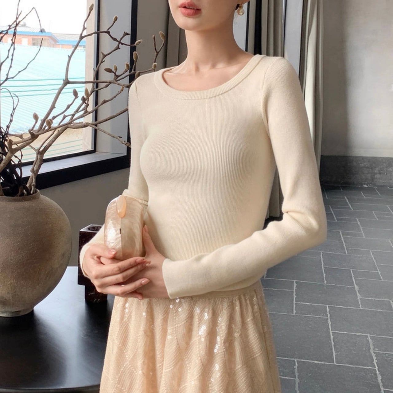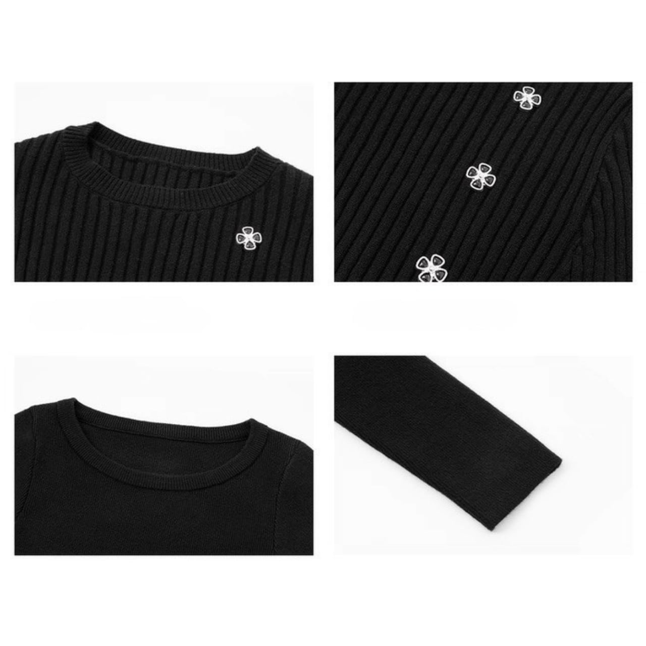 リブ編みの縦ラインがすっきりとした印象を与え、スタイルアップ効果も。