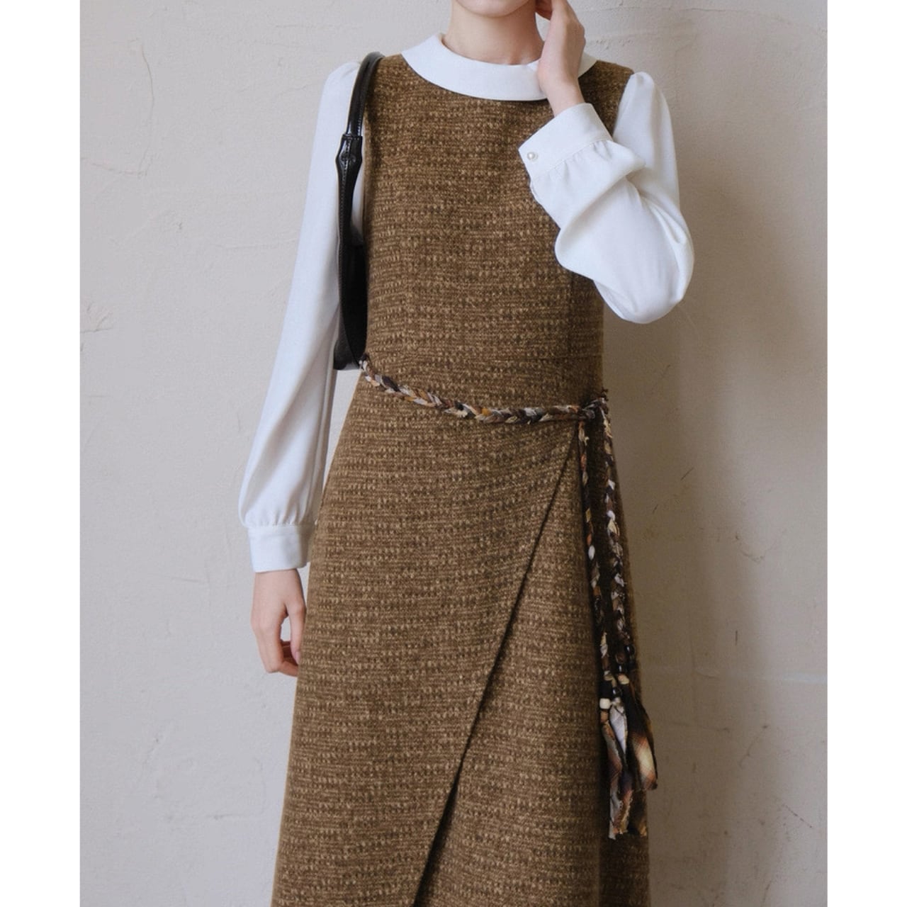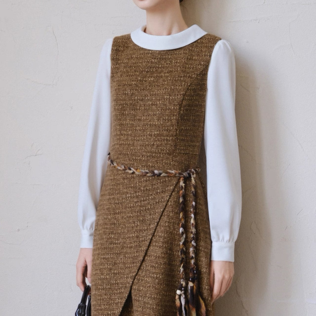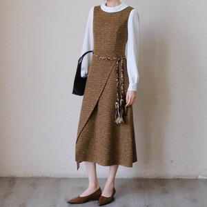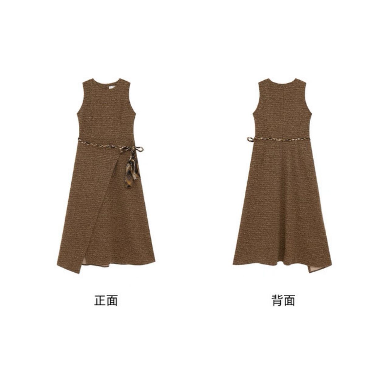 ウエストリボン ツイード風ノースリーブワンピース W00342