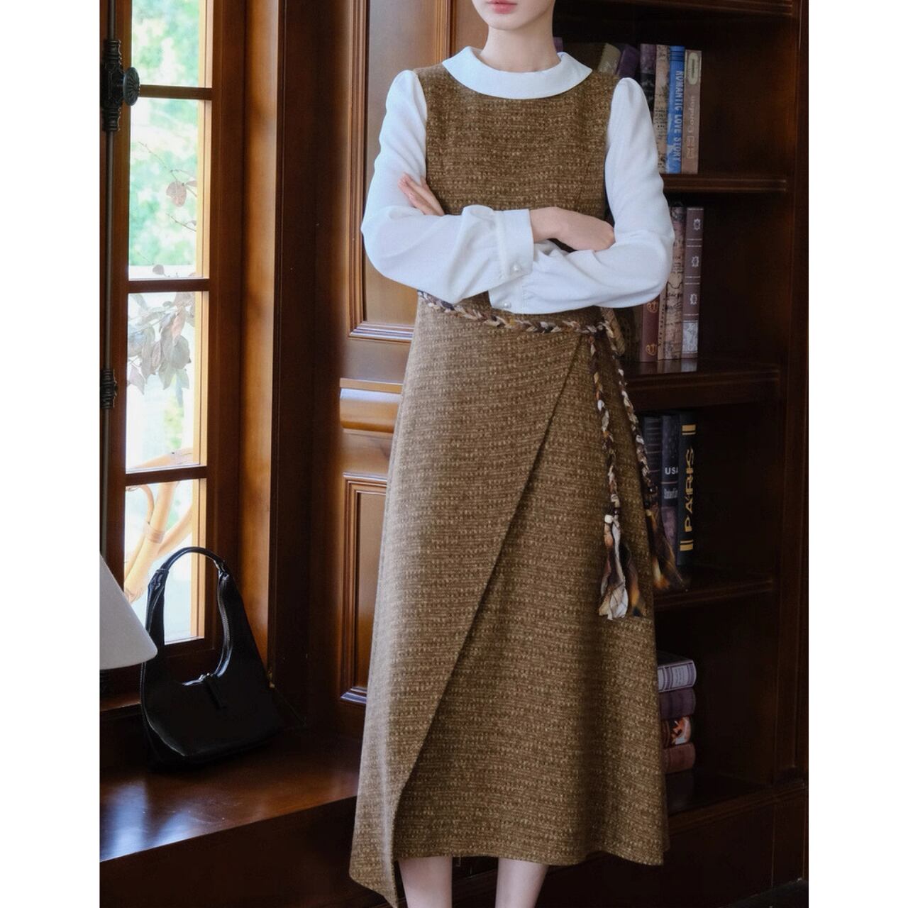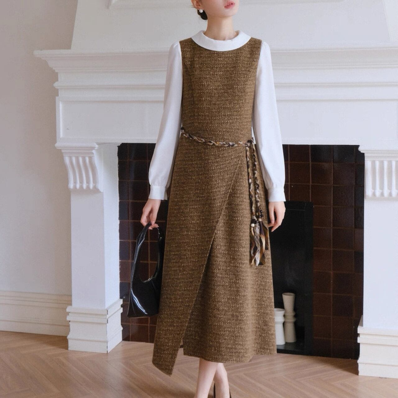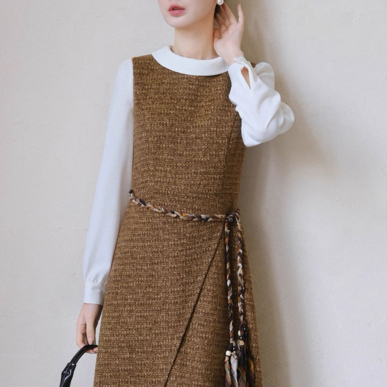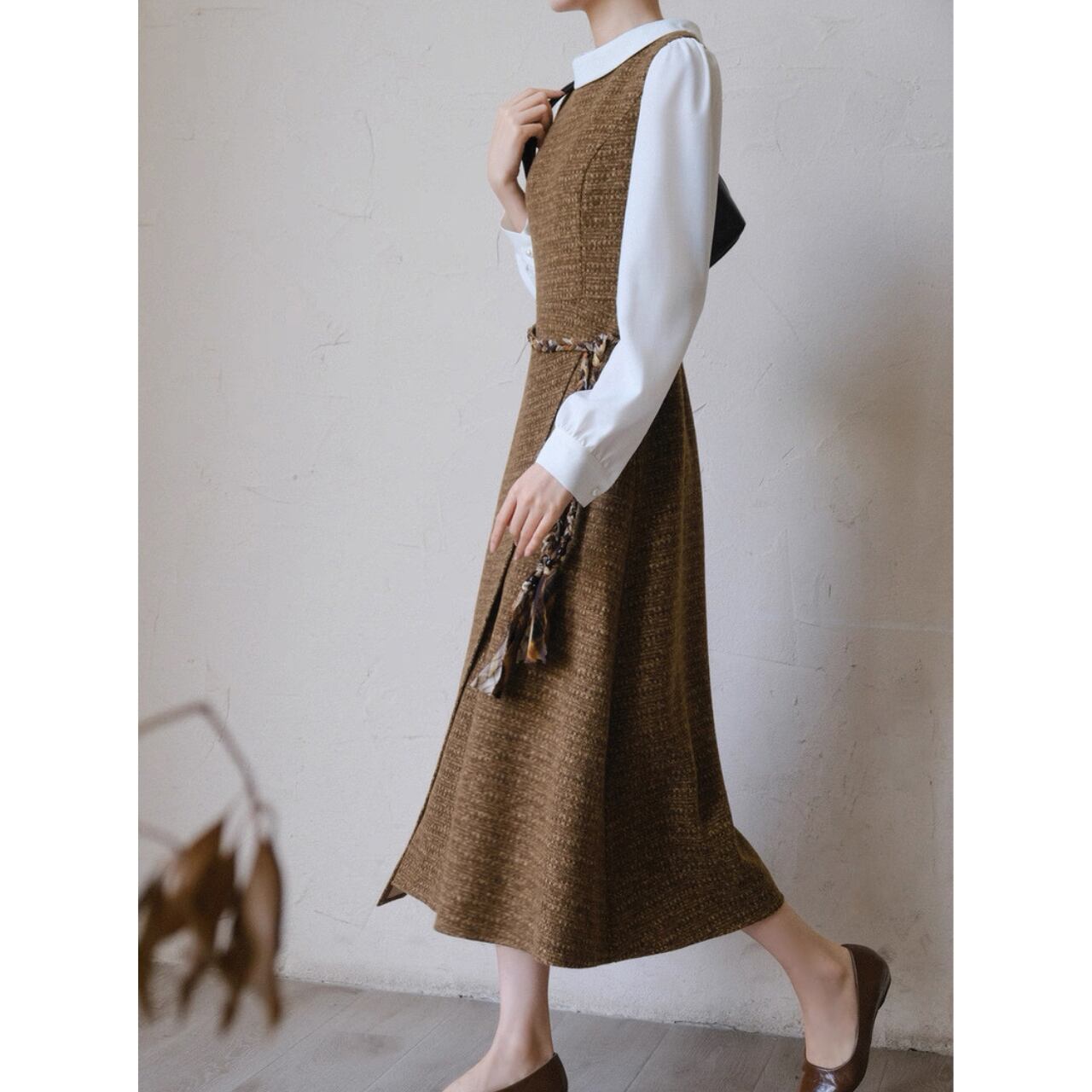 ウエストリボン ツイード風ノースリーブワンピース W00342