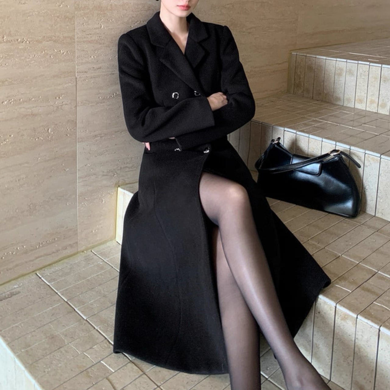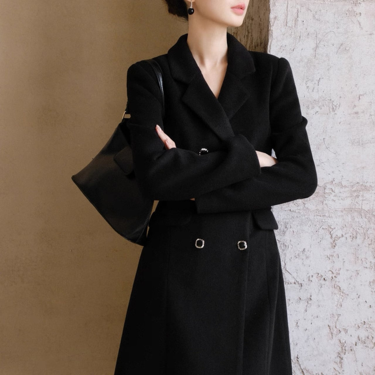 クラシカルなダブルボタン仕様で、羽織るだけで洗練された佇まいに。