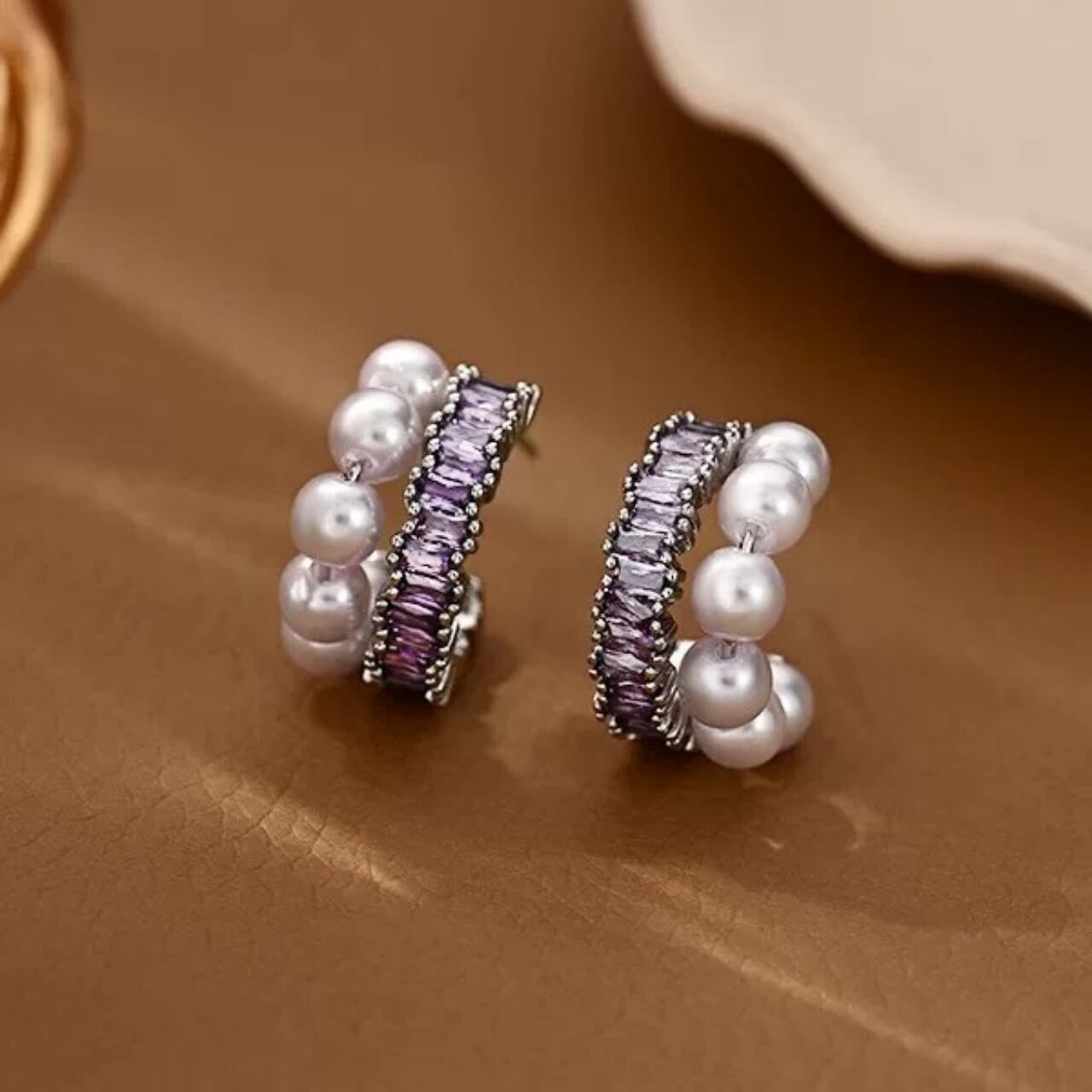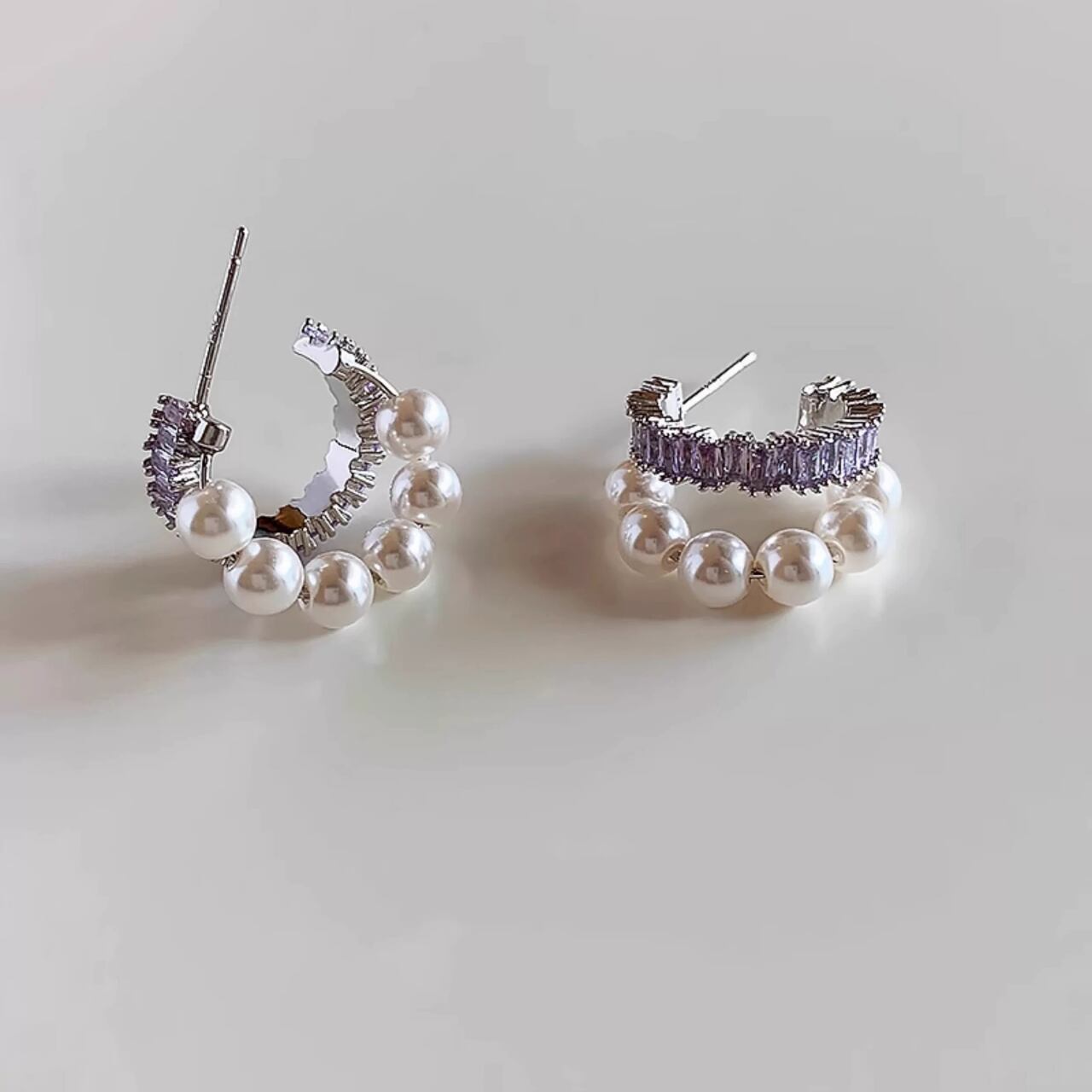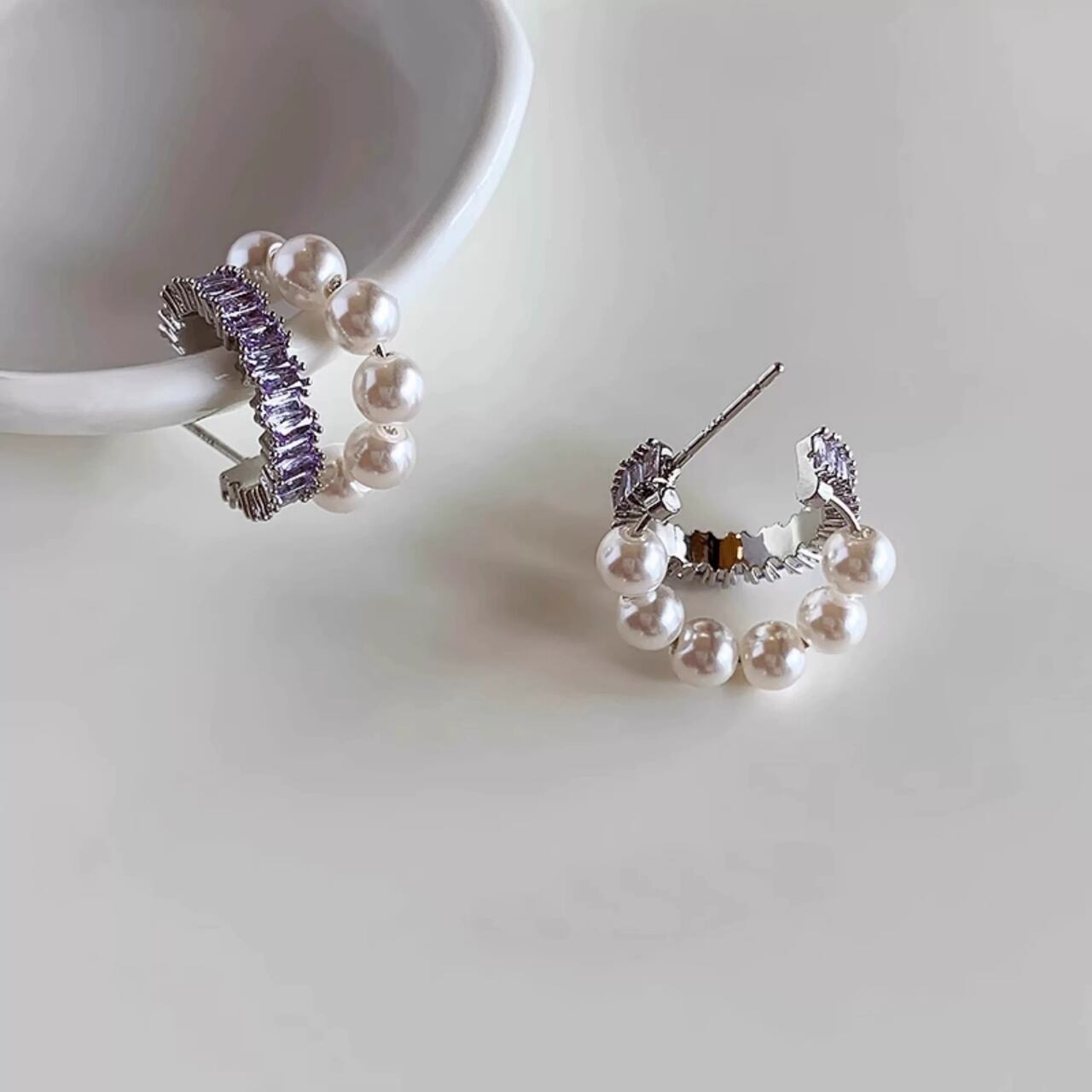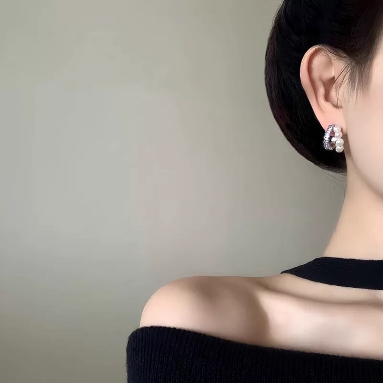 小粒パールを連ねた、耳元に優雅な輝きを添えるデザイン。