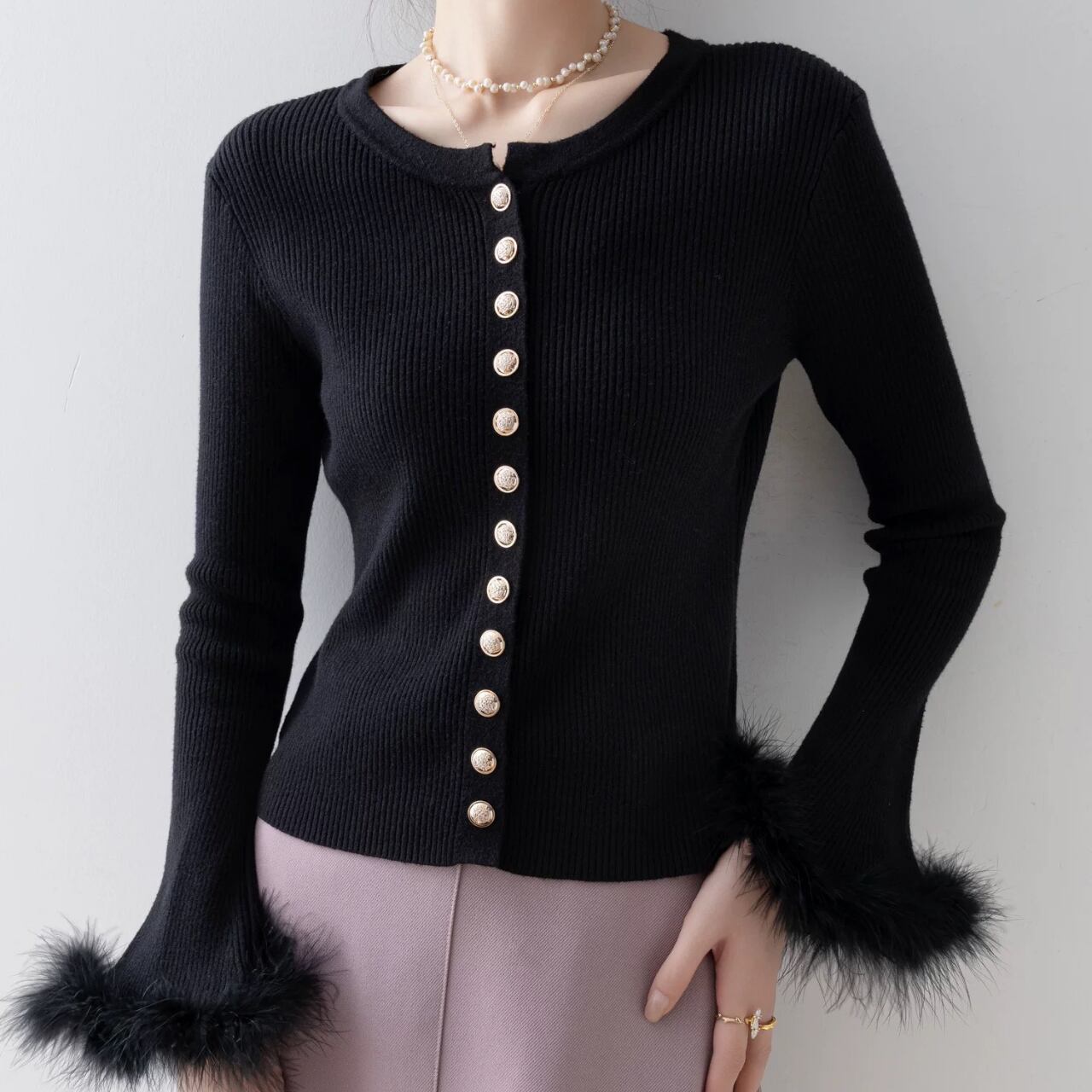 クラシカルなメタルボタンが、装いに静かな華を添えます。