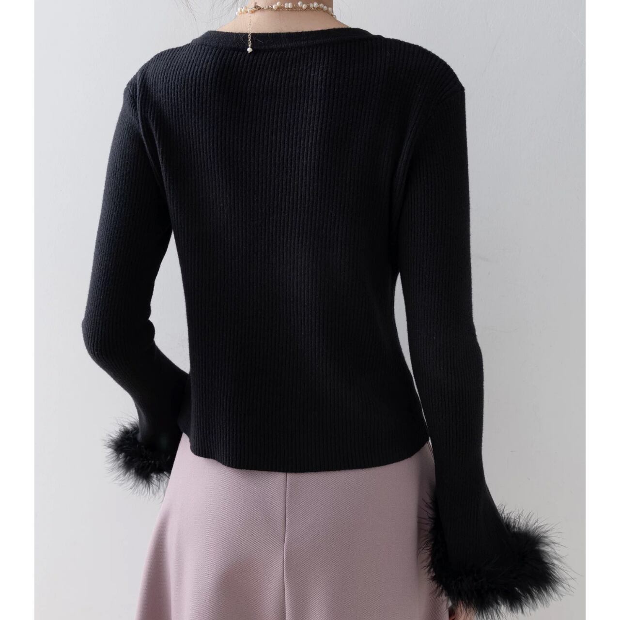 ジャケット感覚でも着られる、凛とした印象のニット。
