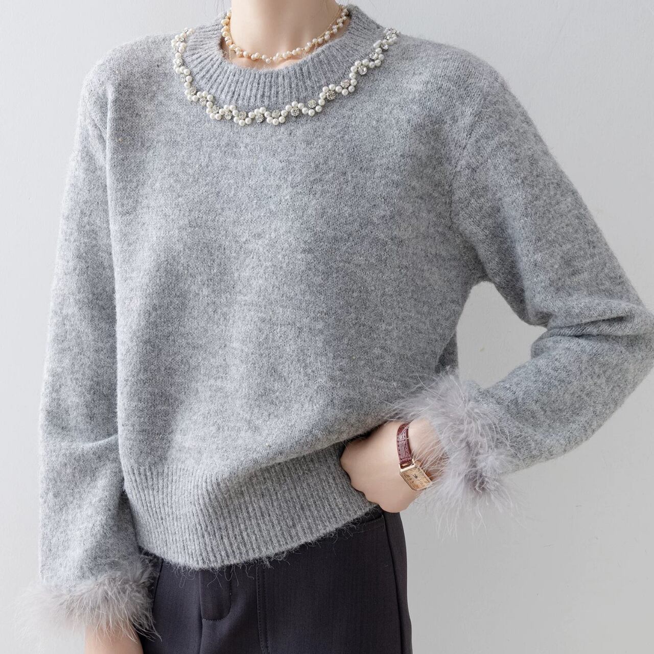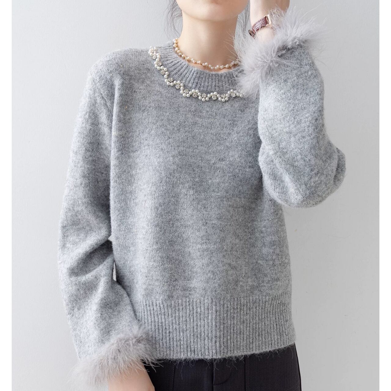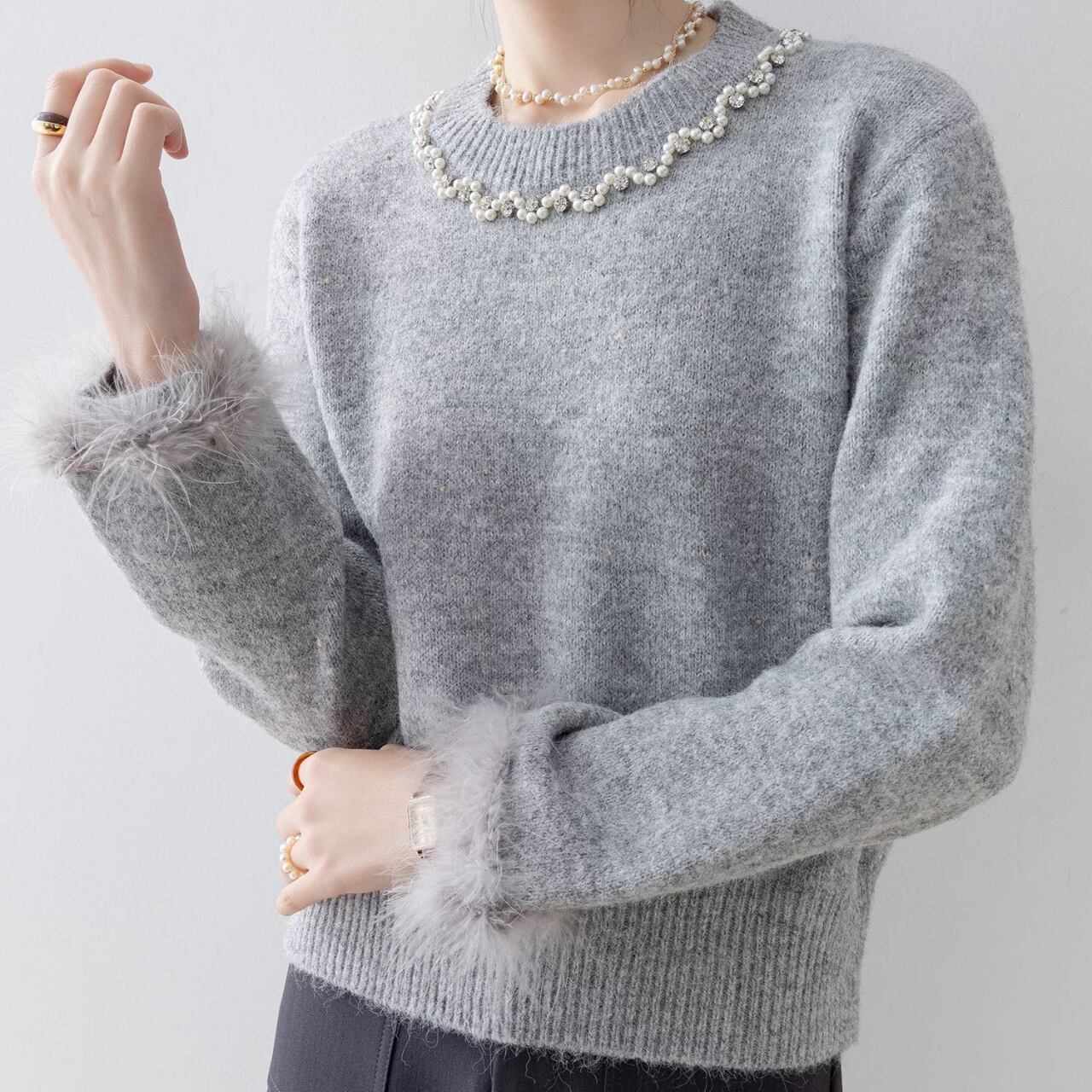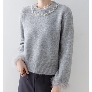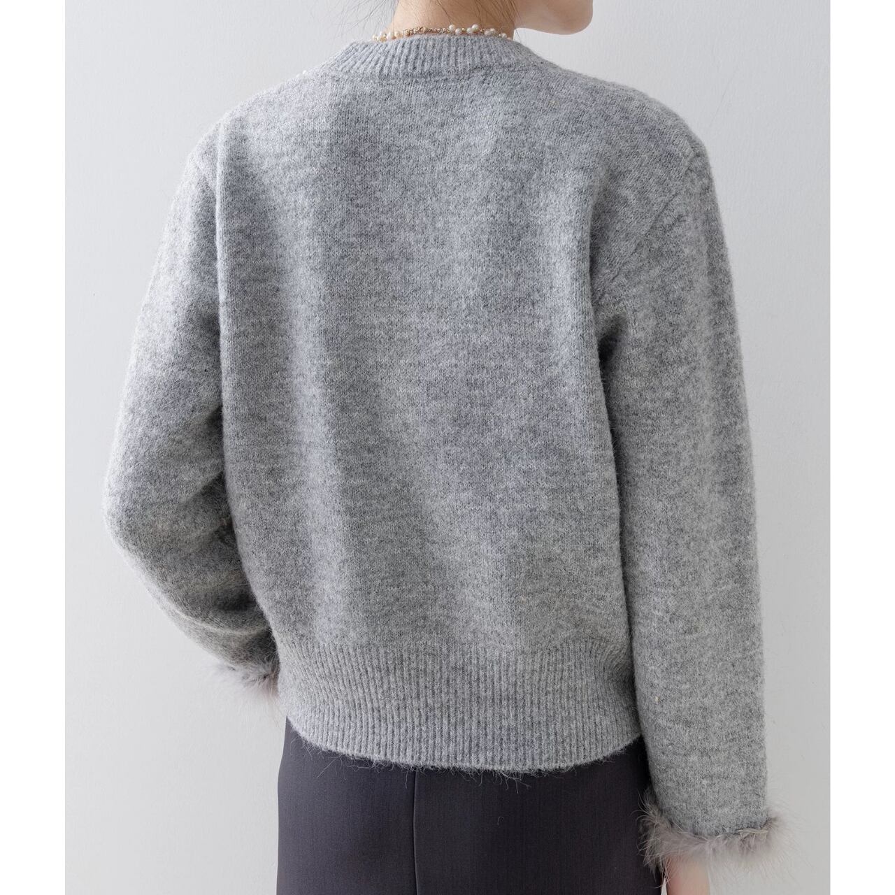 柔らかな風合いに、袖口のフェザーディテールが軽やかなアクセント。