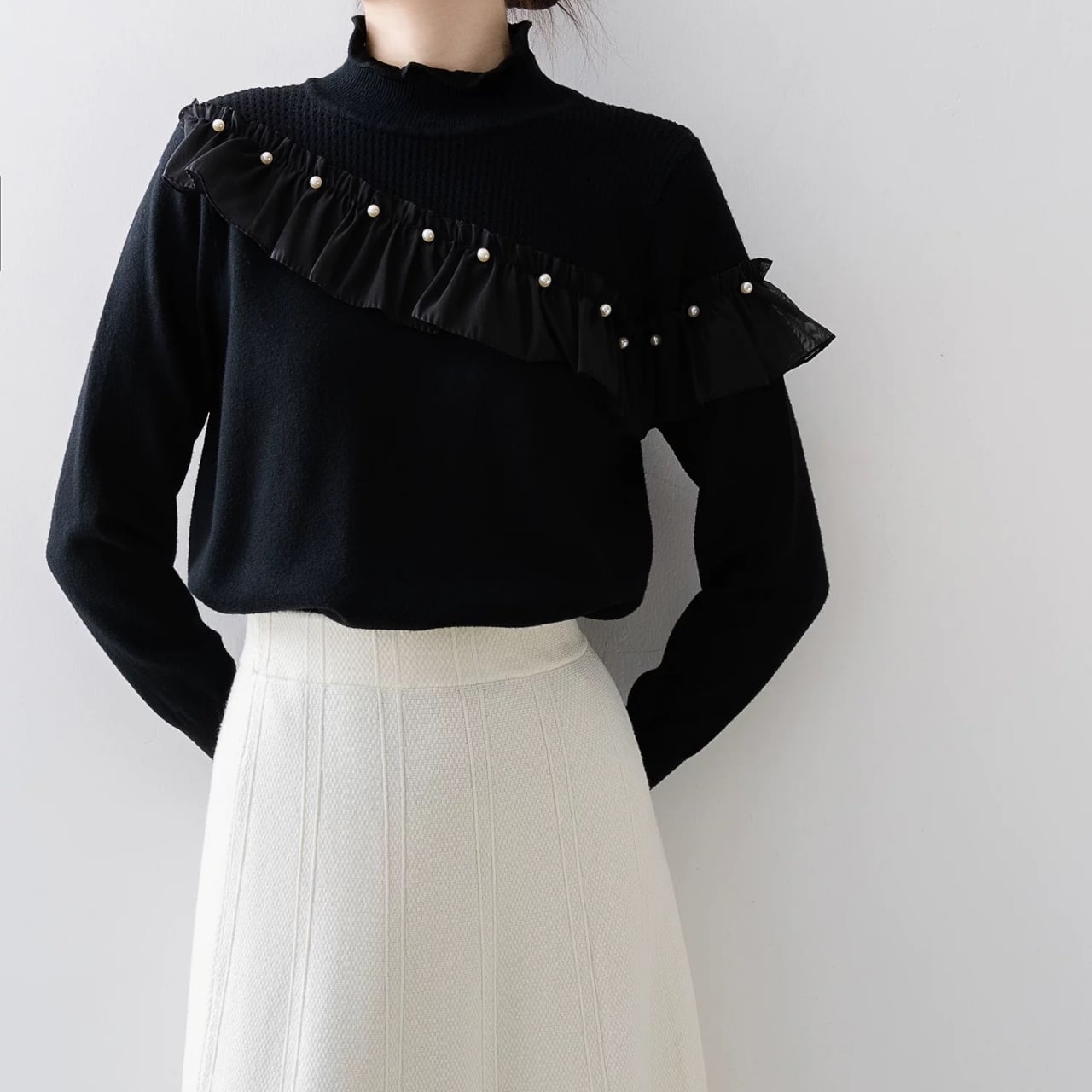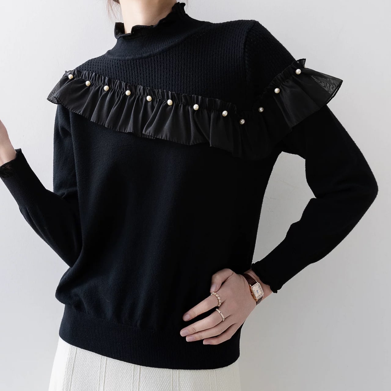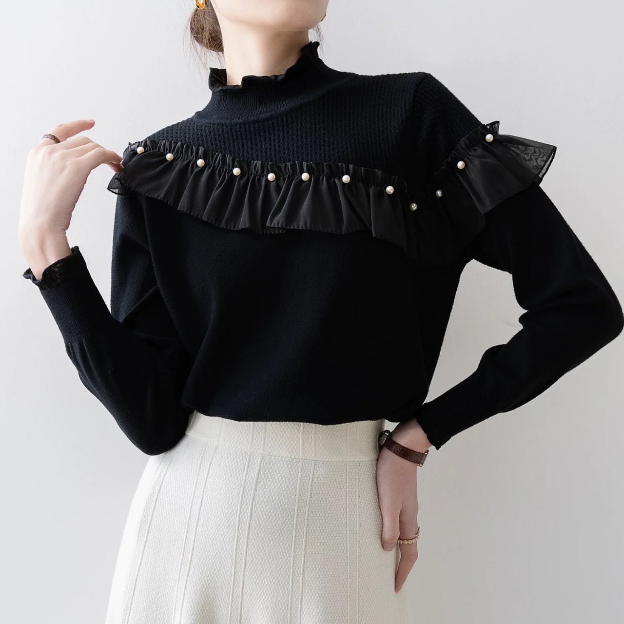 フリルヨークパールディテールニット W00364