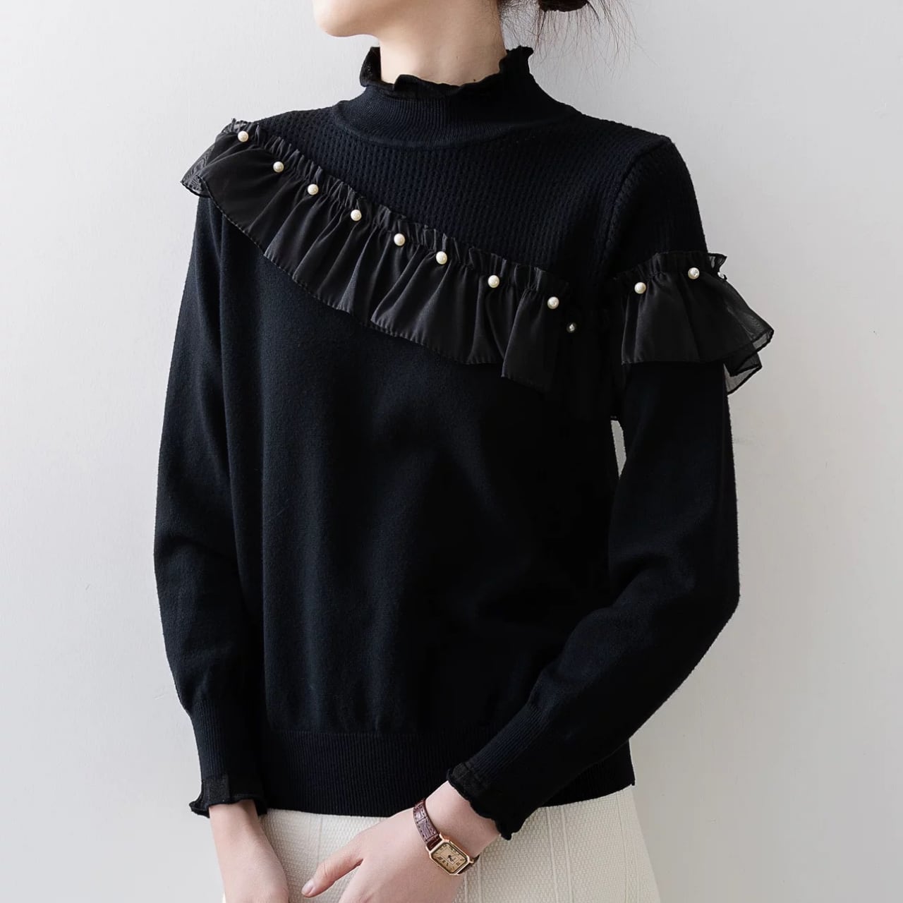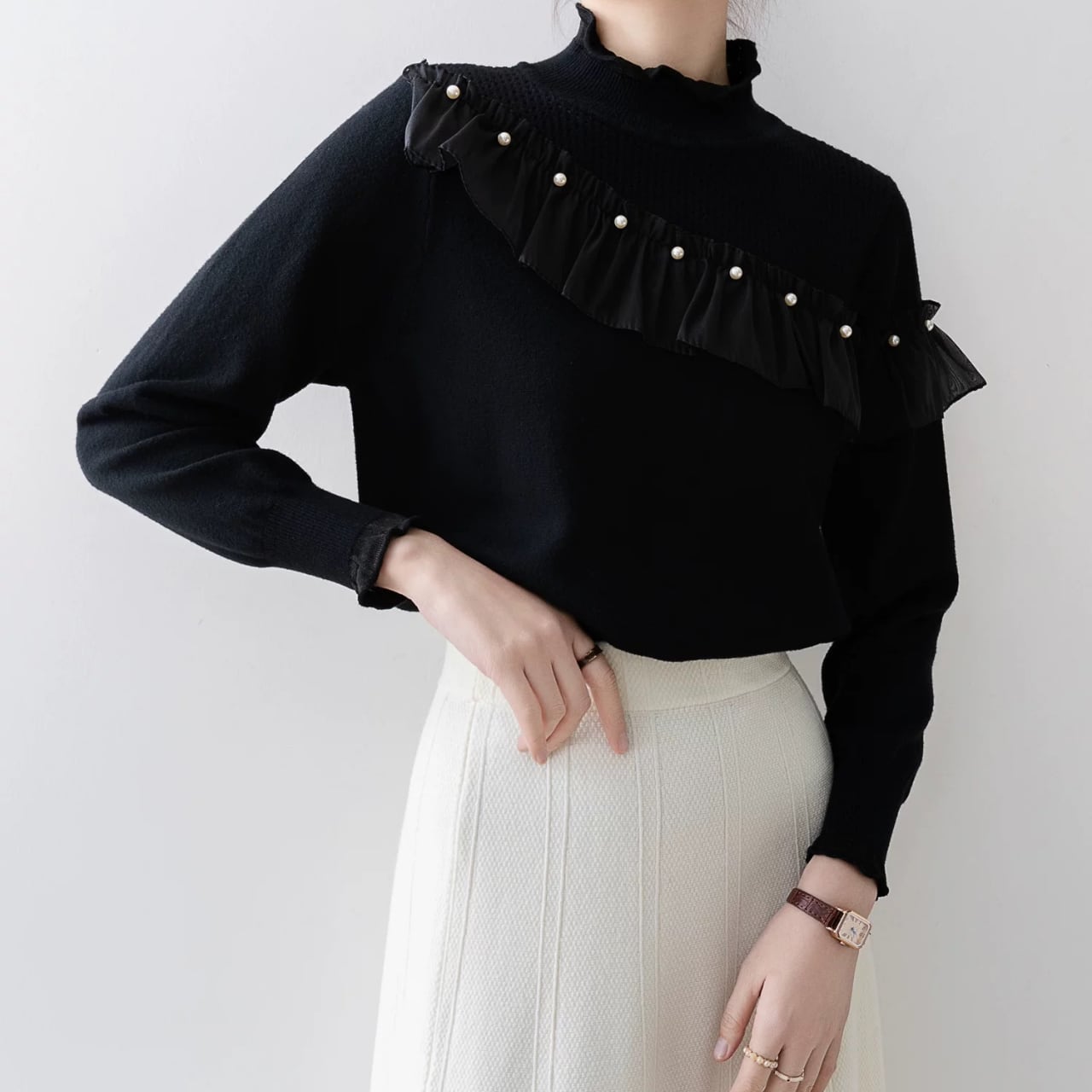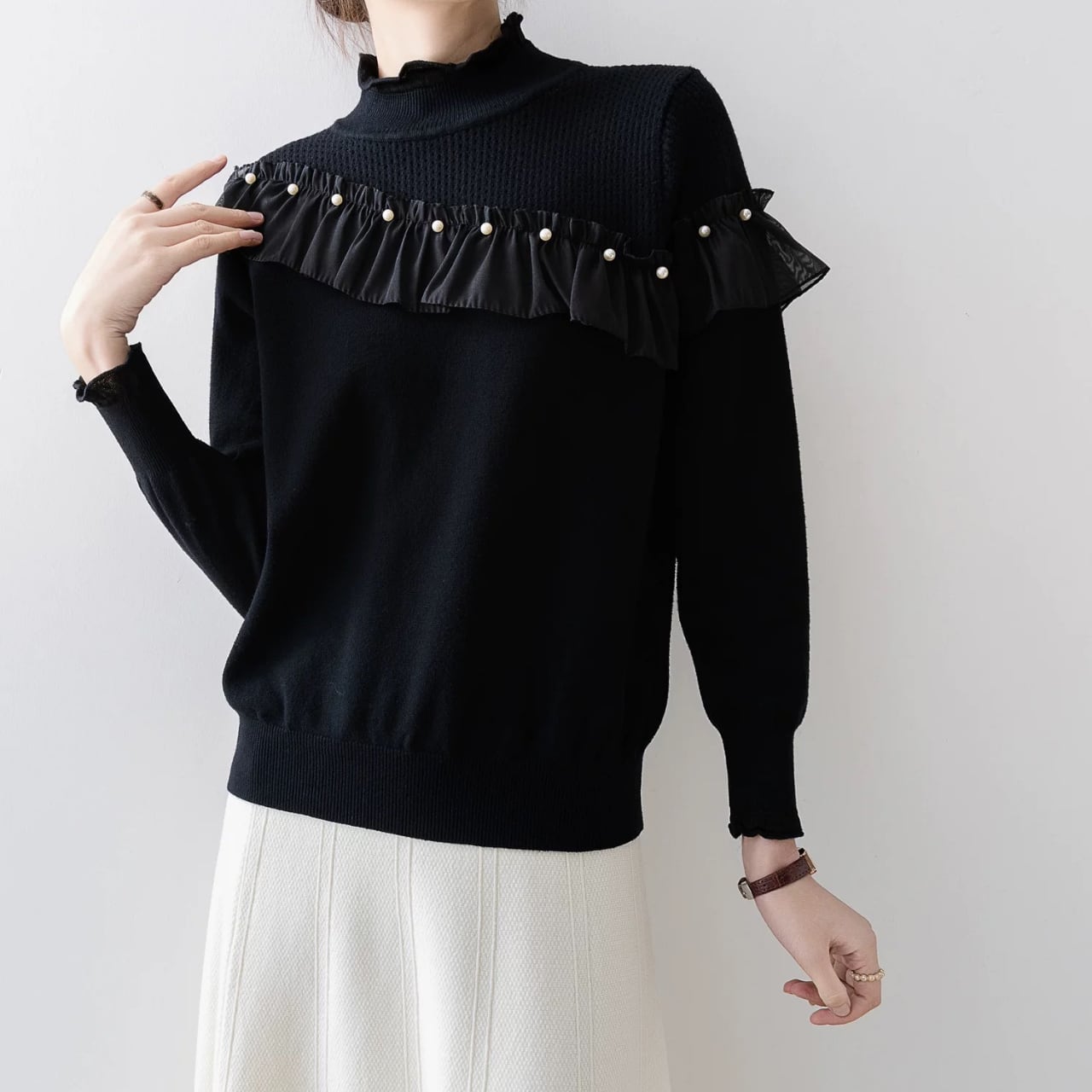 フリルヨークパールディテールニット W00364