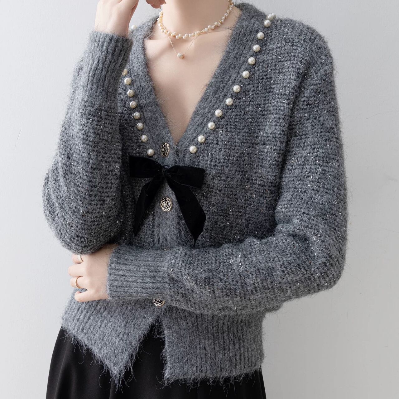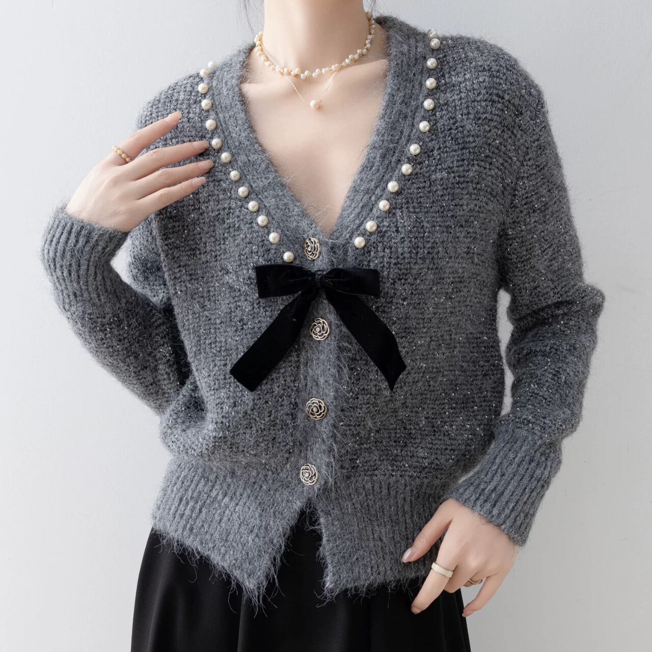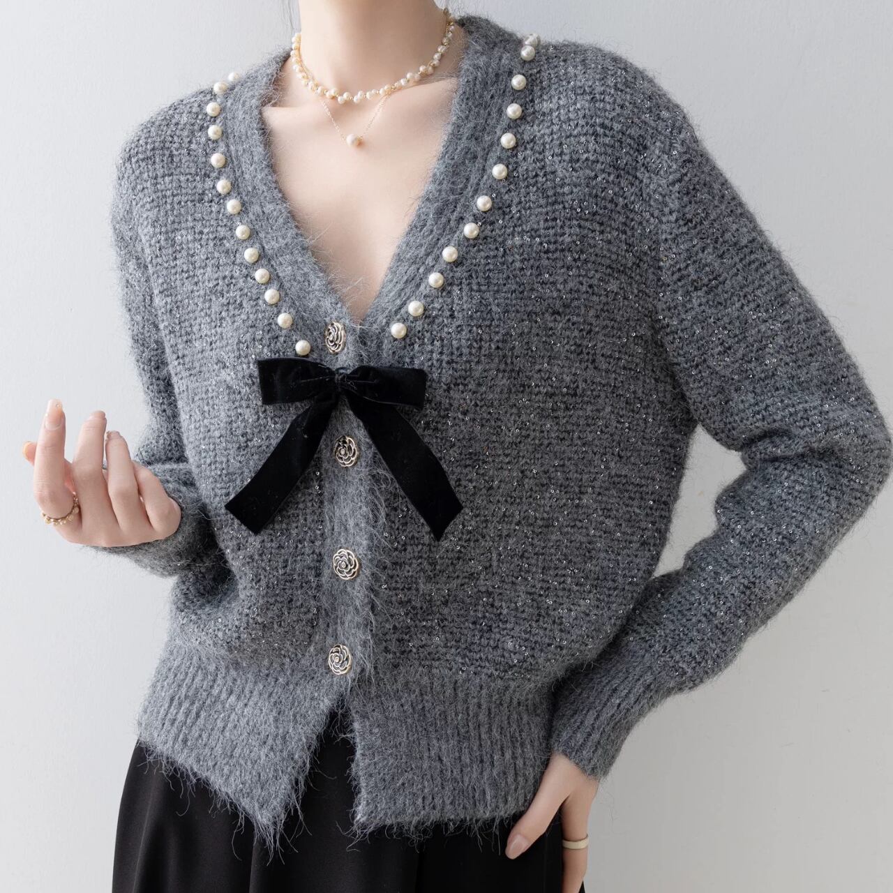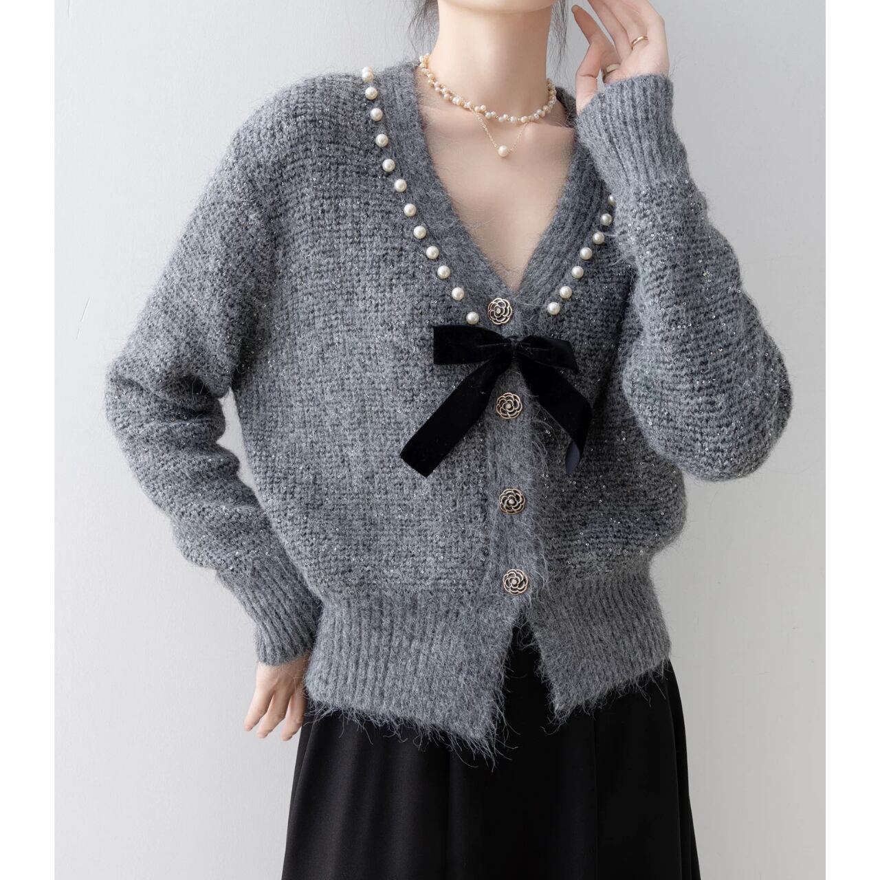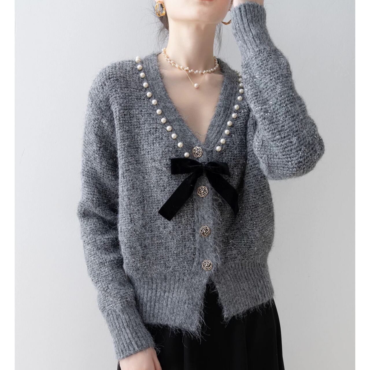 リボンポイントニットカーディガン W00369