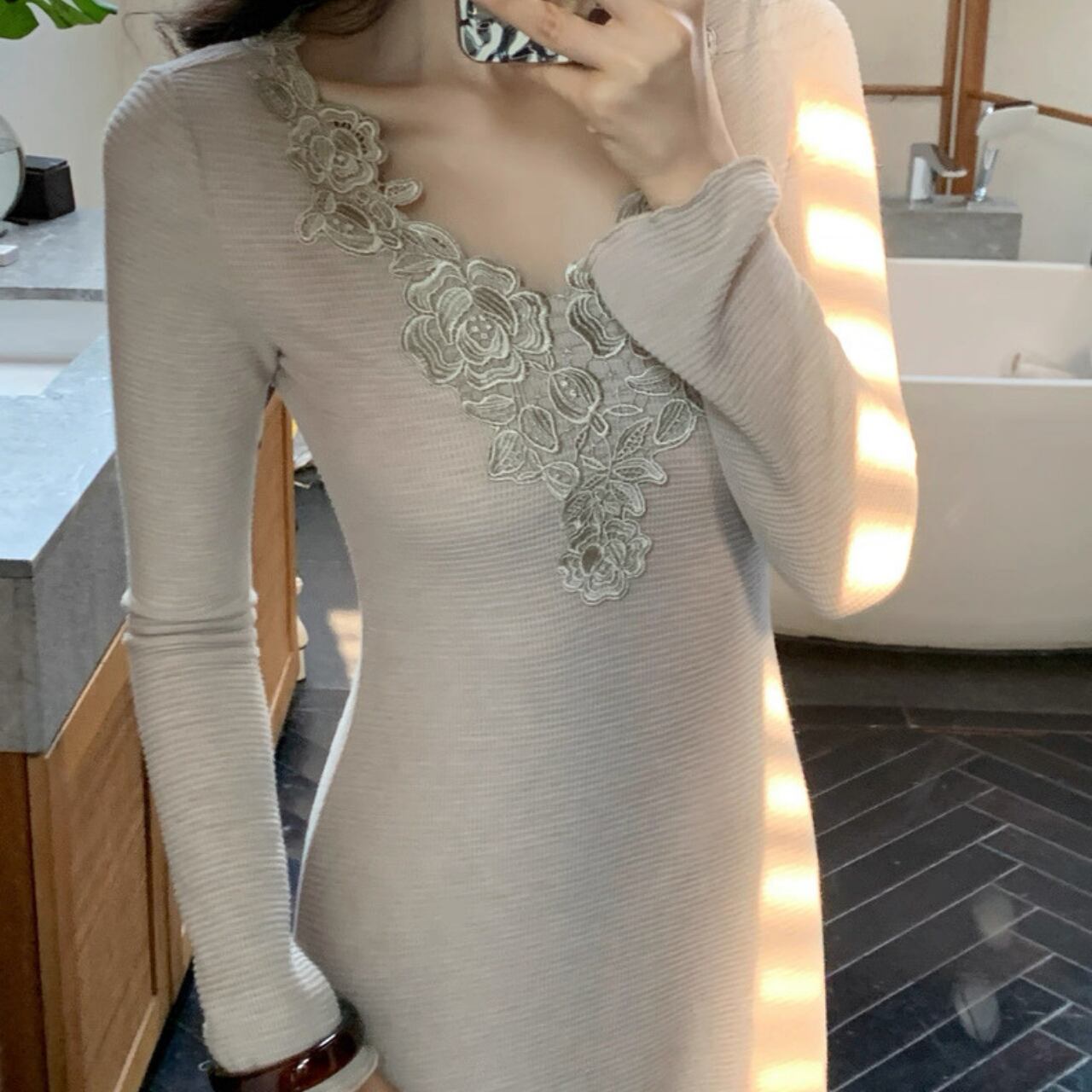 立体的なレリーフ装飾が、胸元に静かな存在感をプラス。
