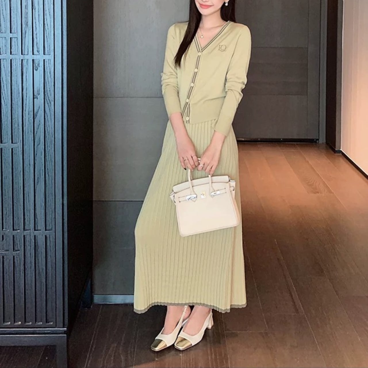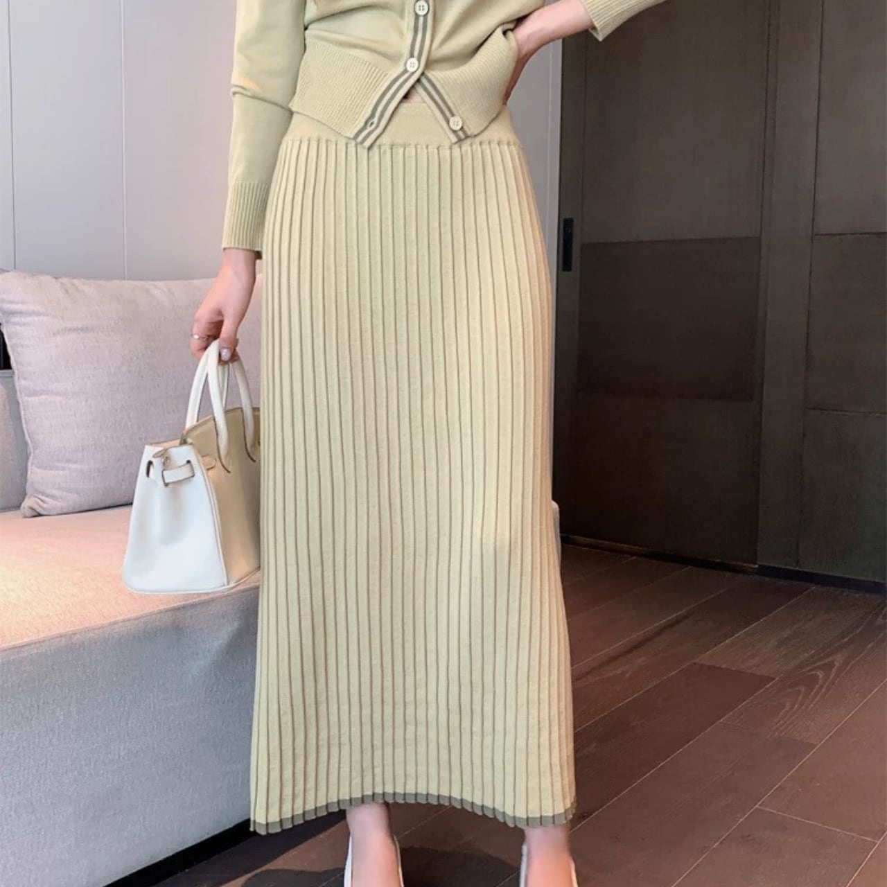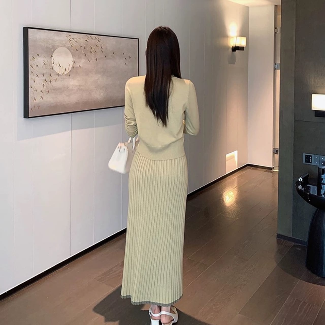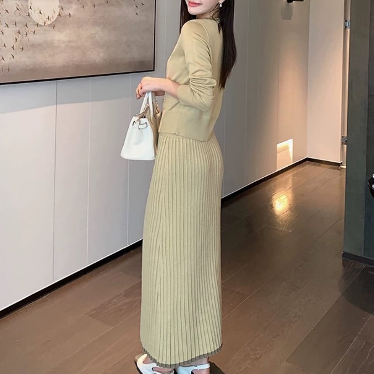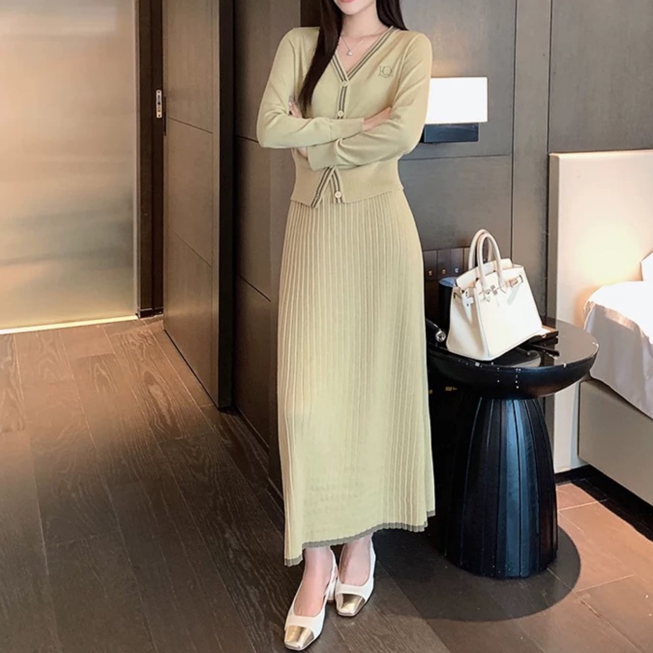 カーディガンとのセットアップもでき、着回し力の高いアイテム。