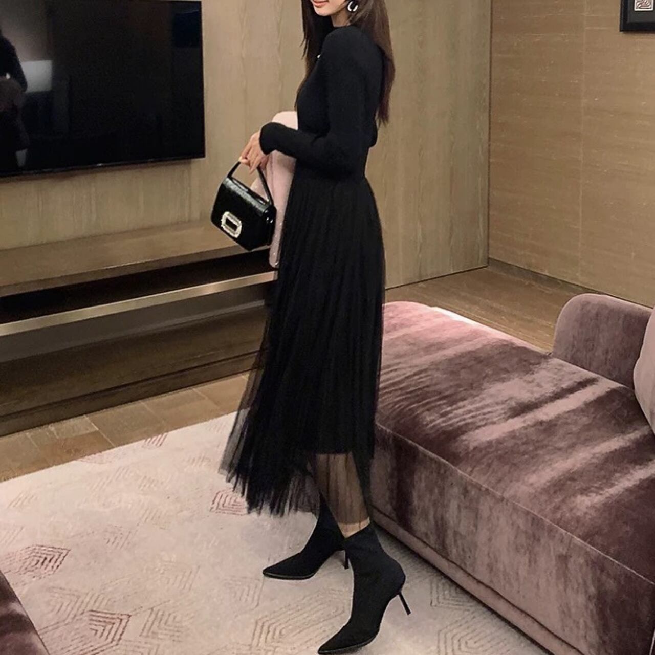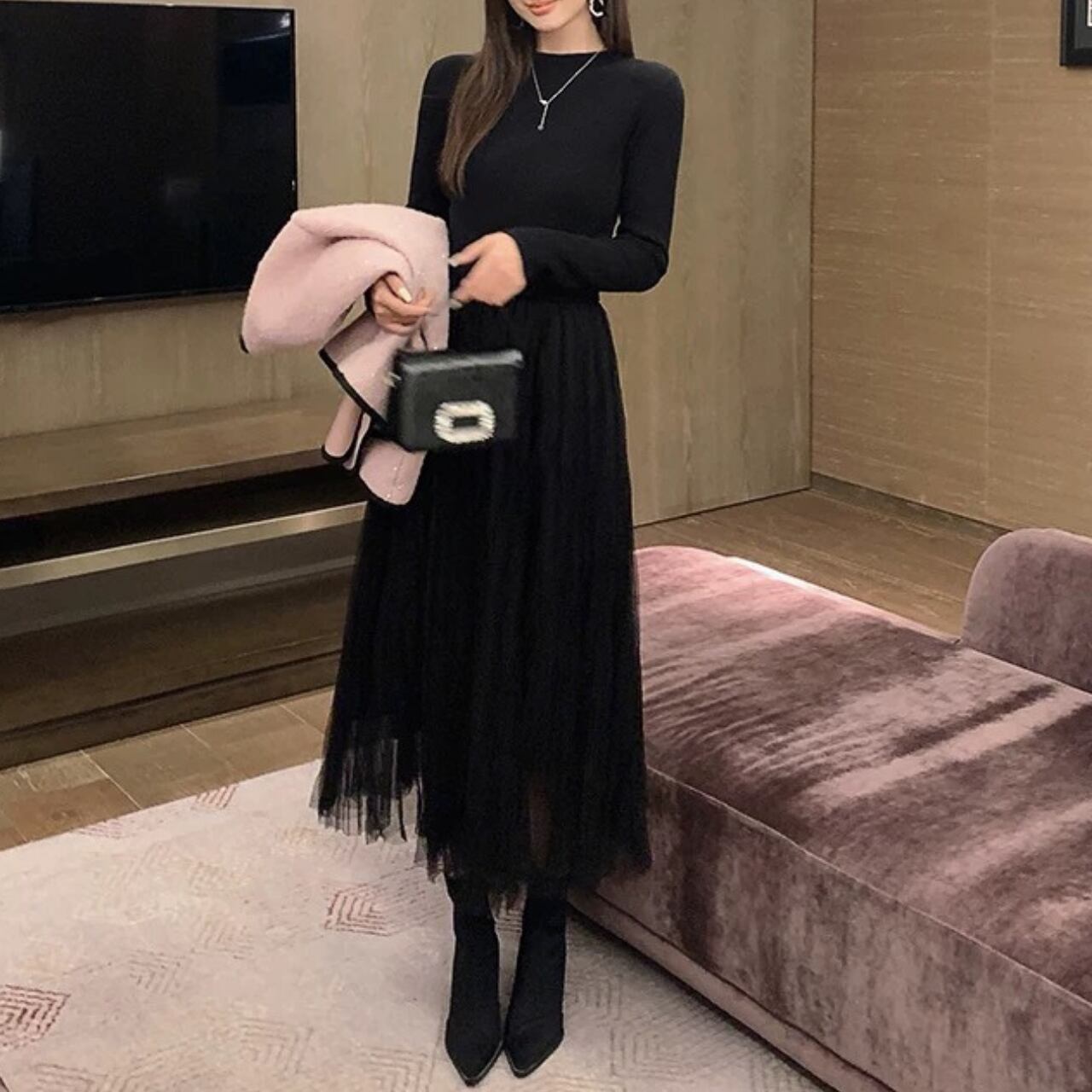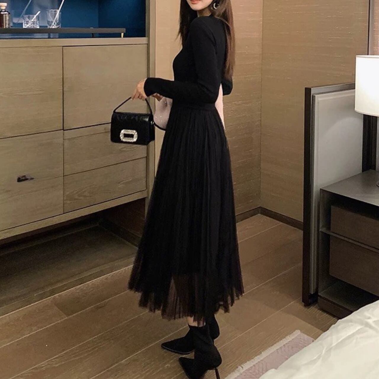 繊細なチュールを重ねたスカートが、軽やかな表情を生むデザイン。