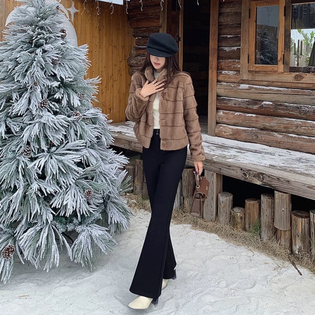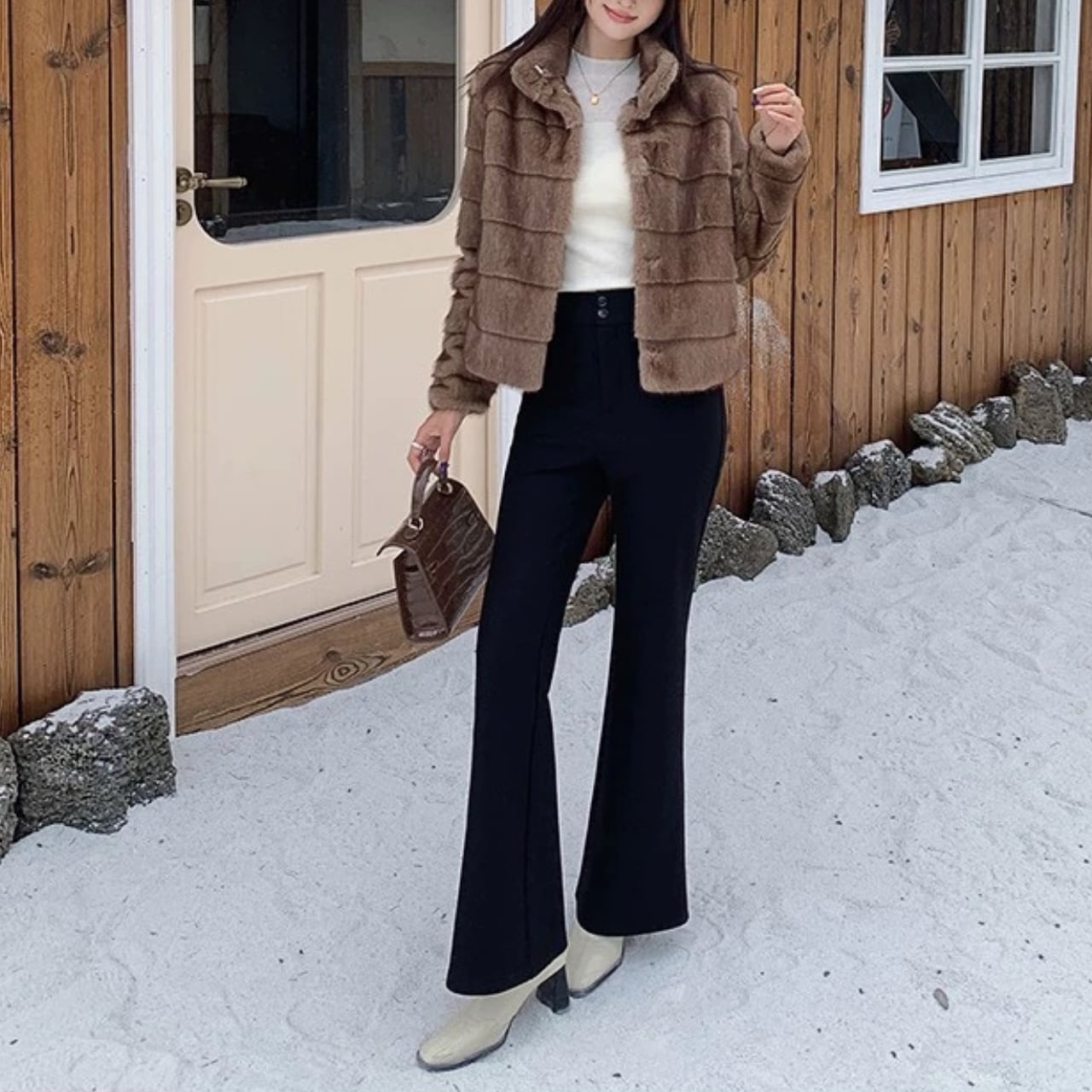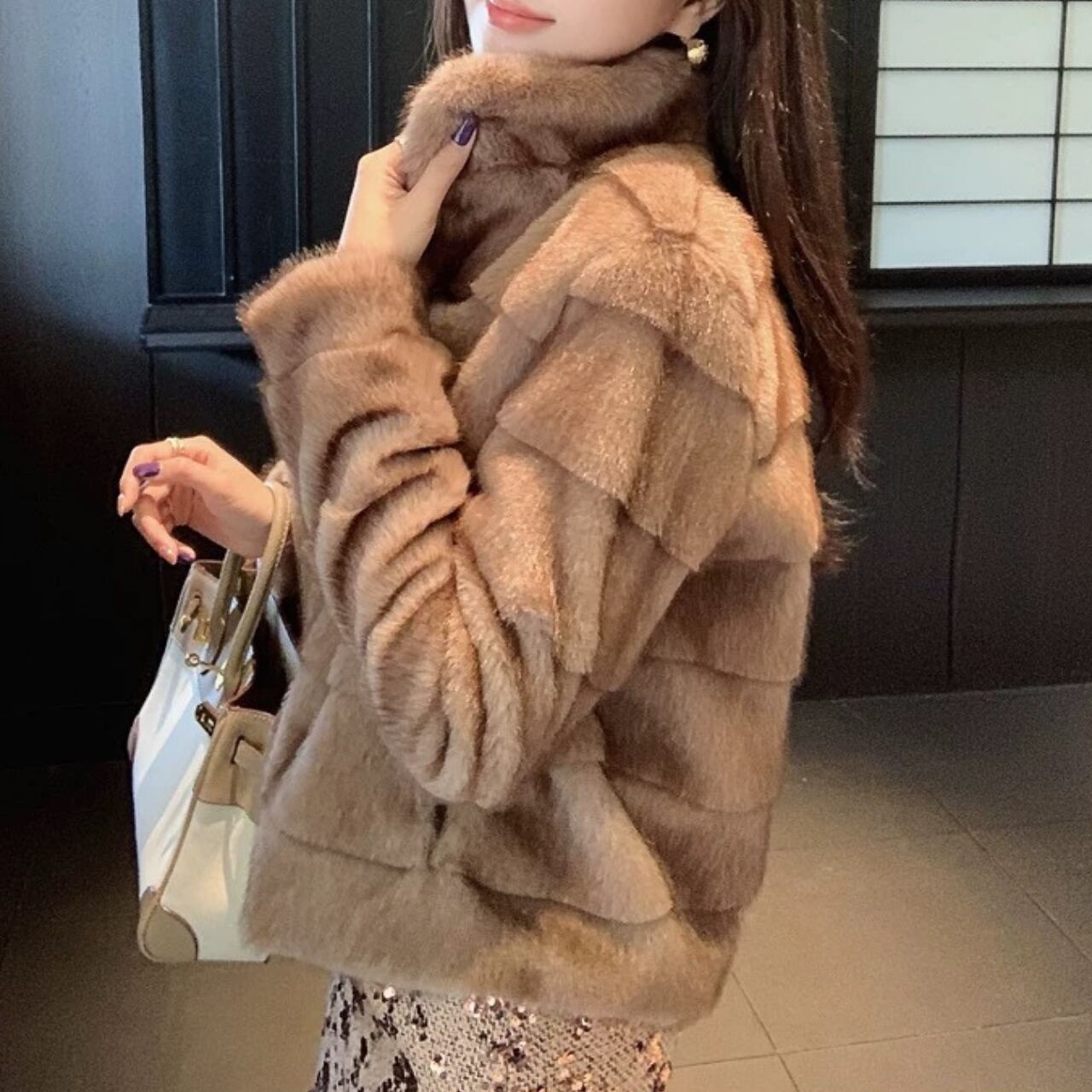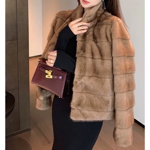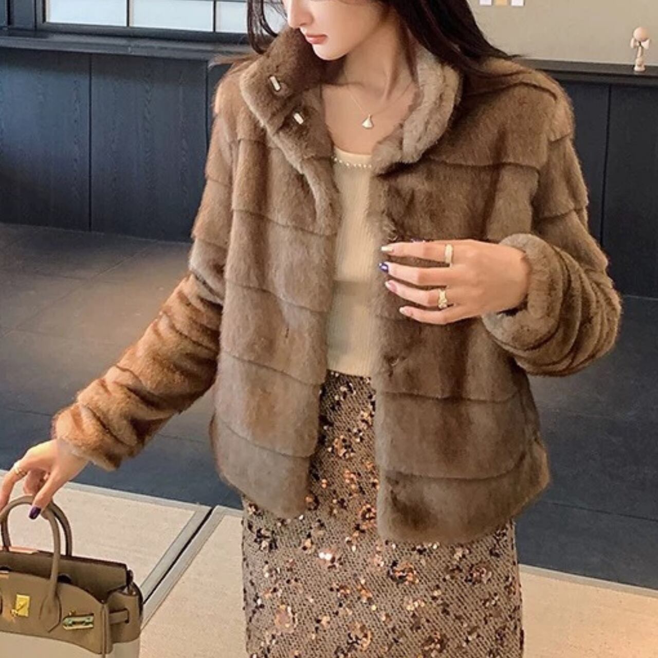 上質感のあるフェイクファーで仕立てたショート丈ジャケット。