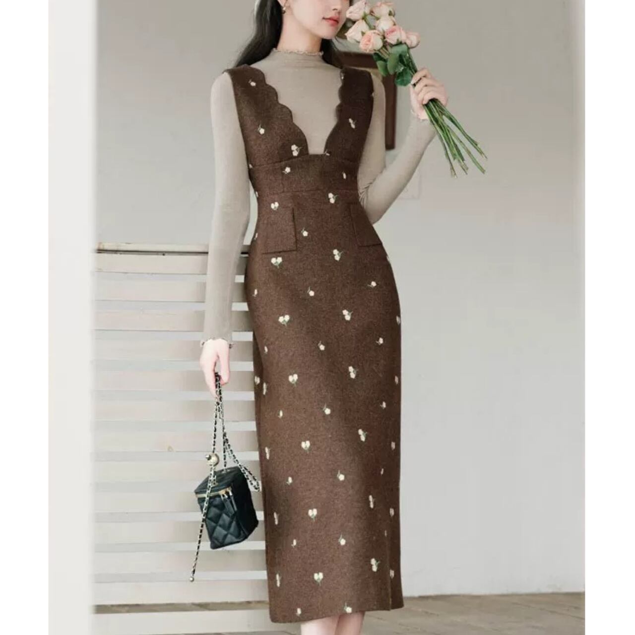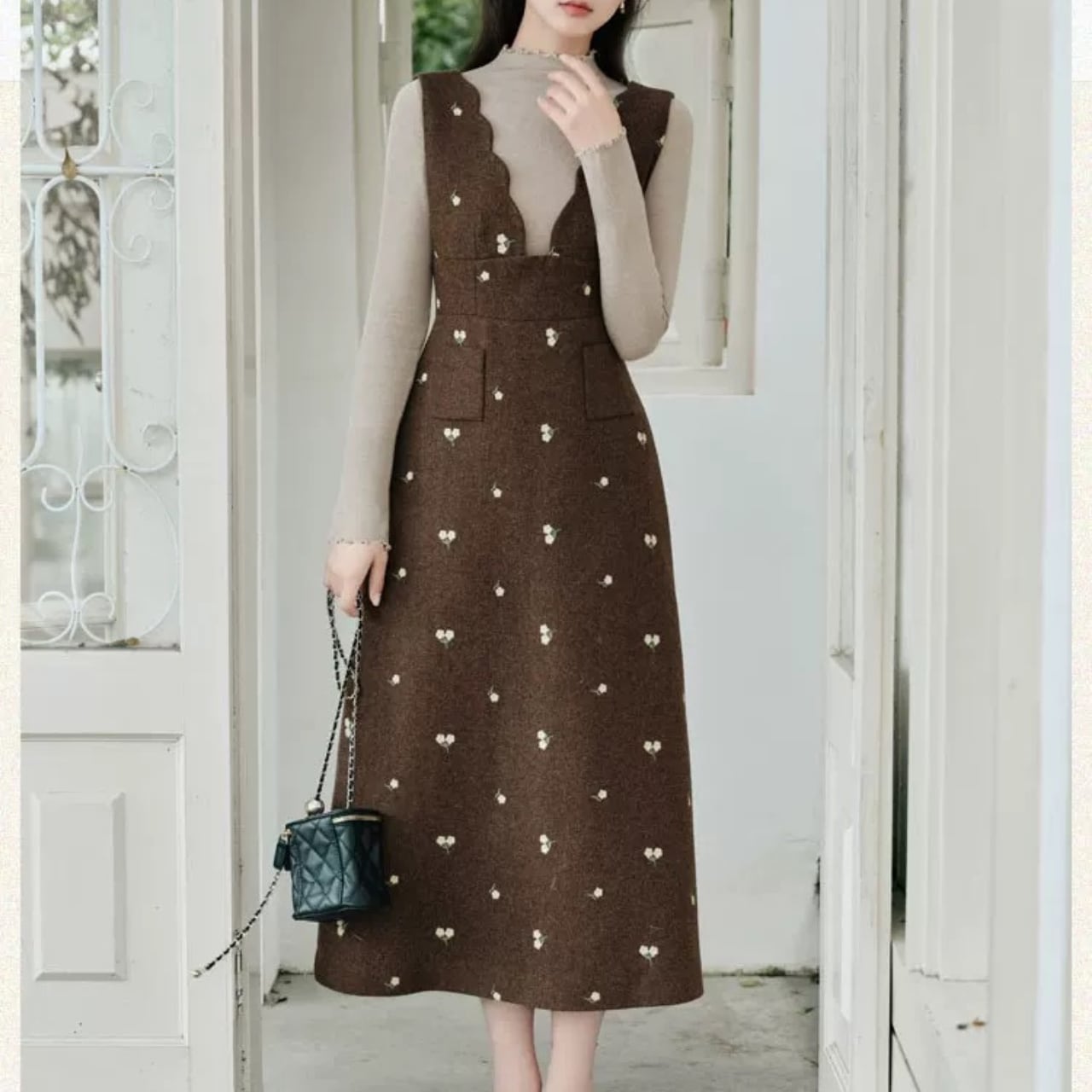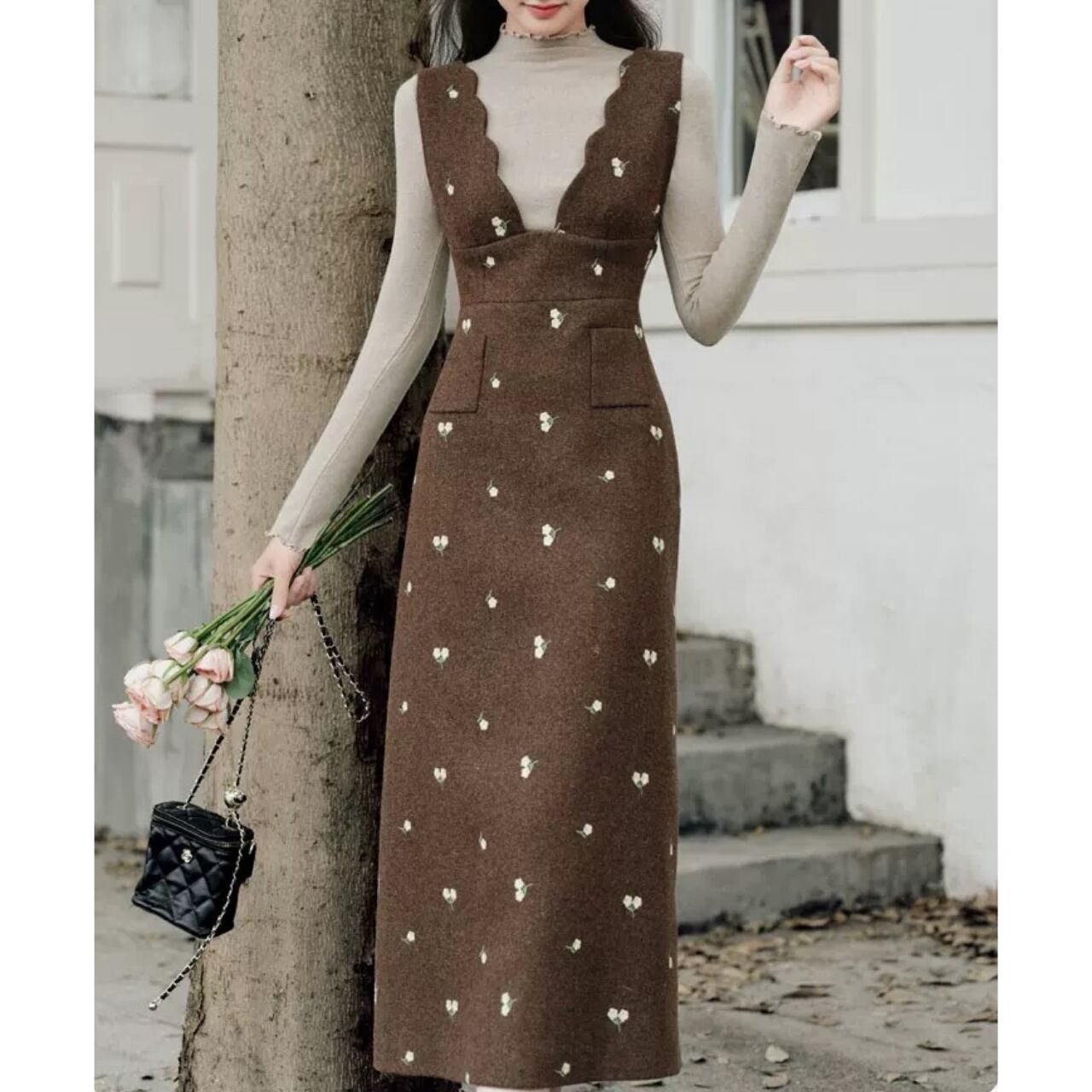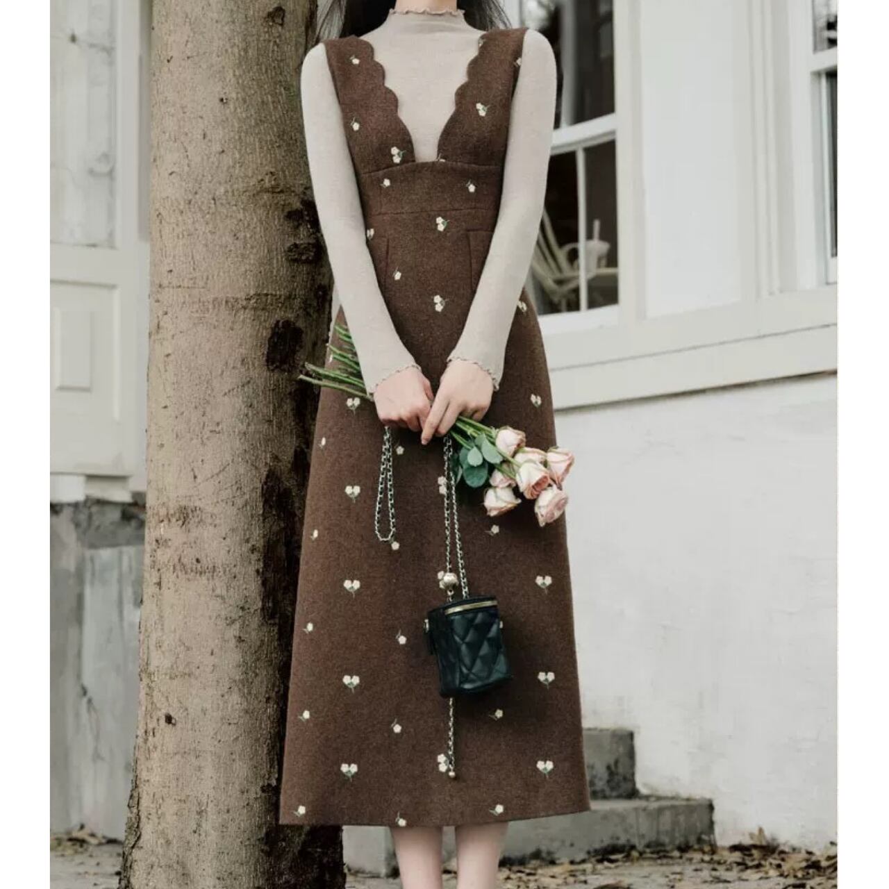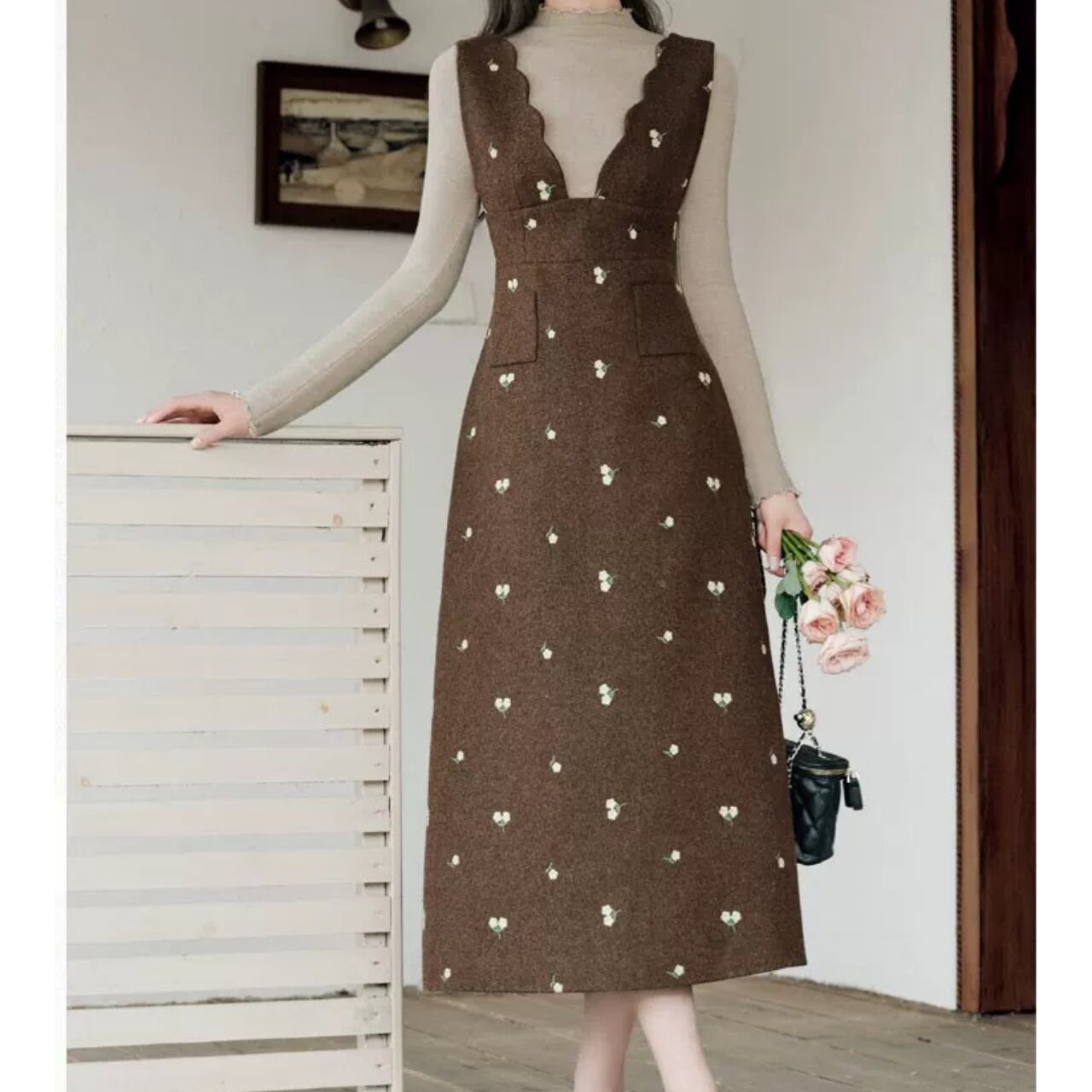 繊細な柄使いが目を引く、クラシカルなジャンパースカート。