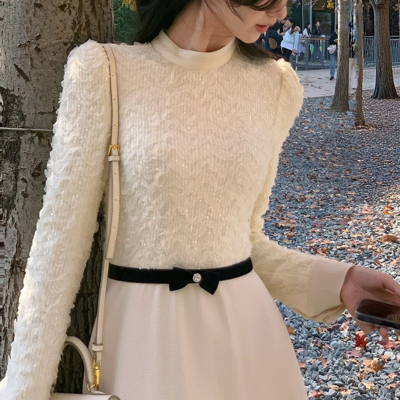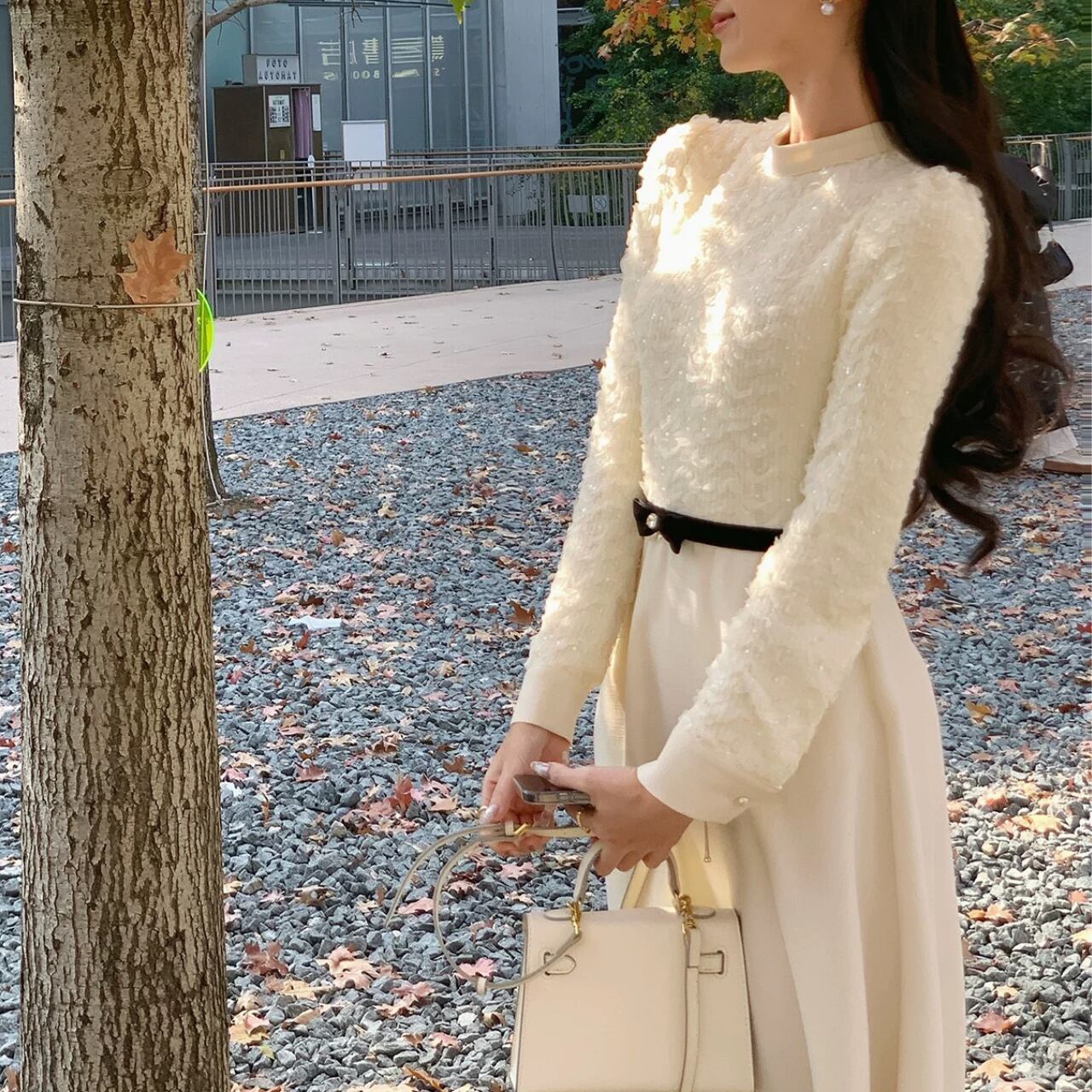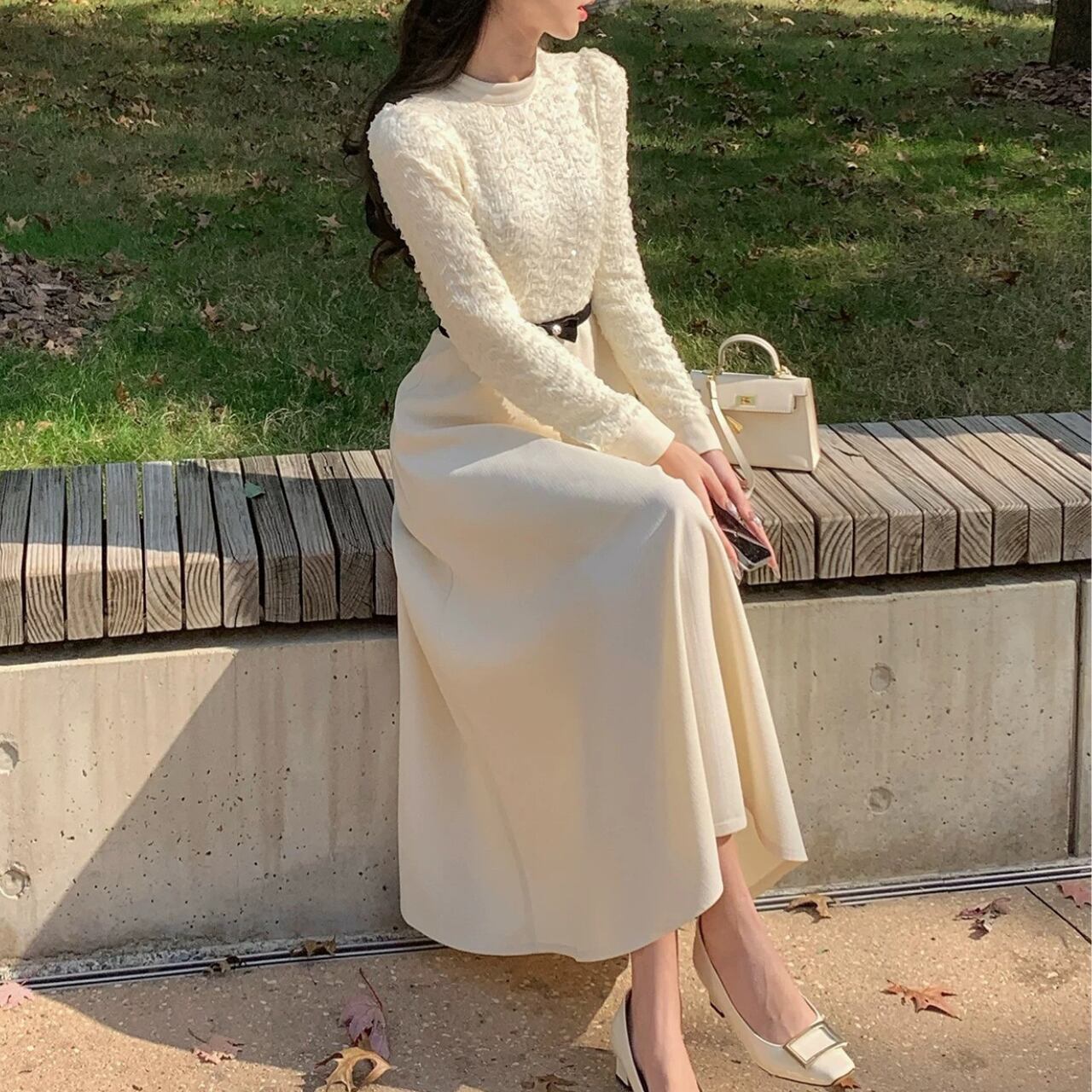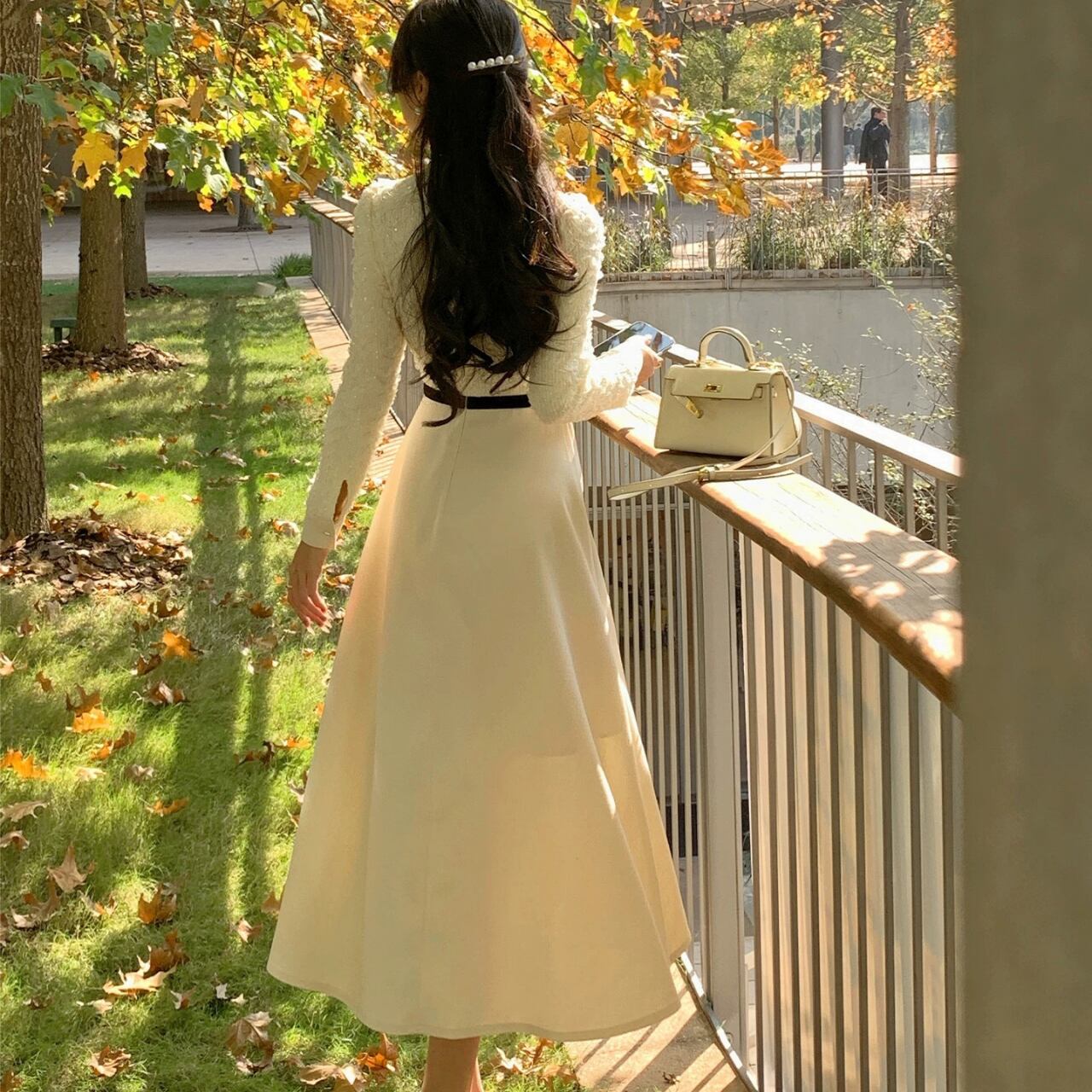 トップとスカートを切り替えた、美しいフィット&フレアシルエット。