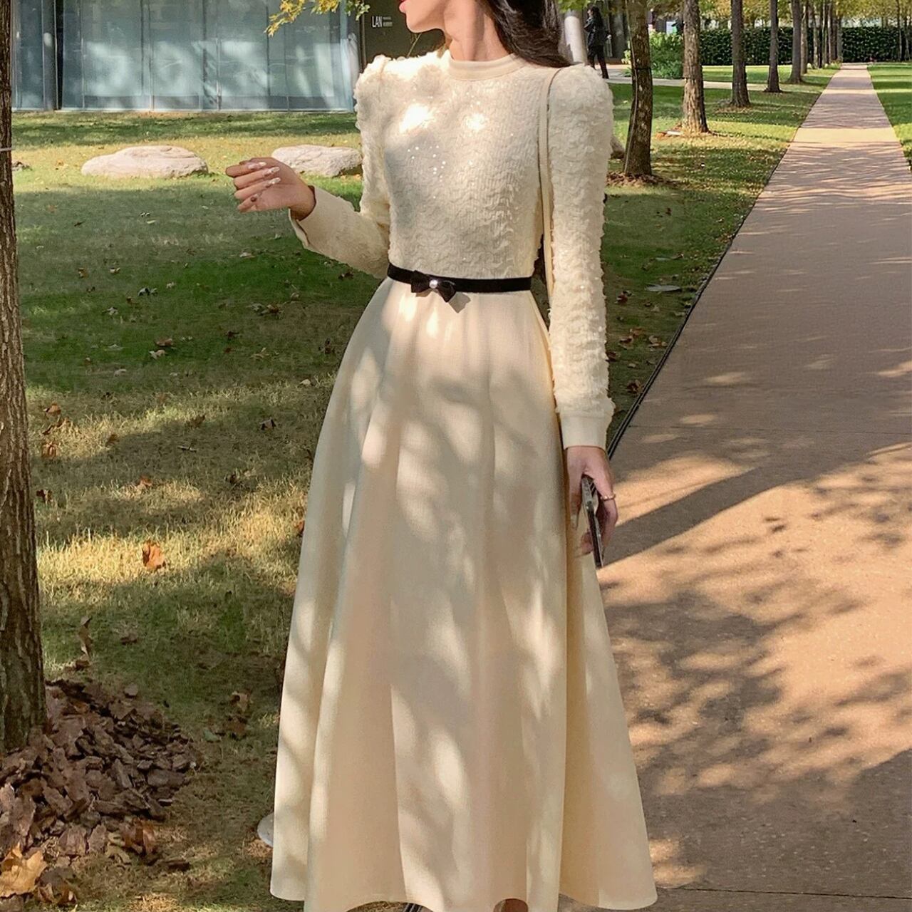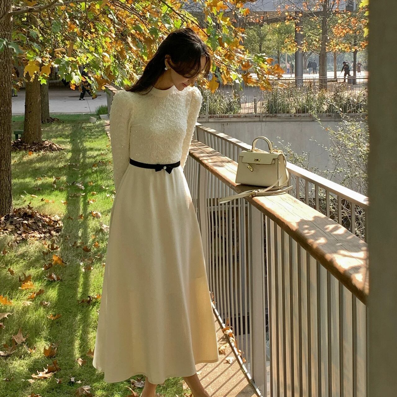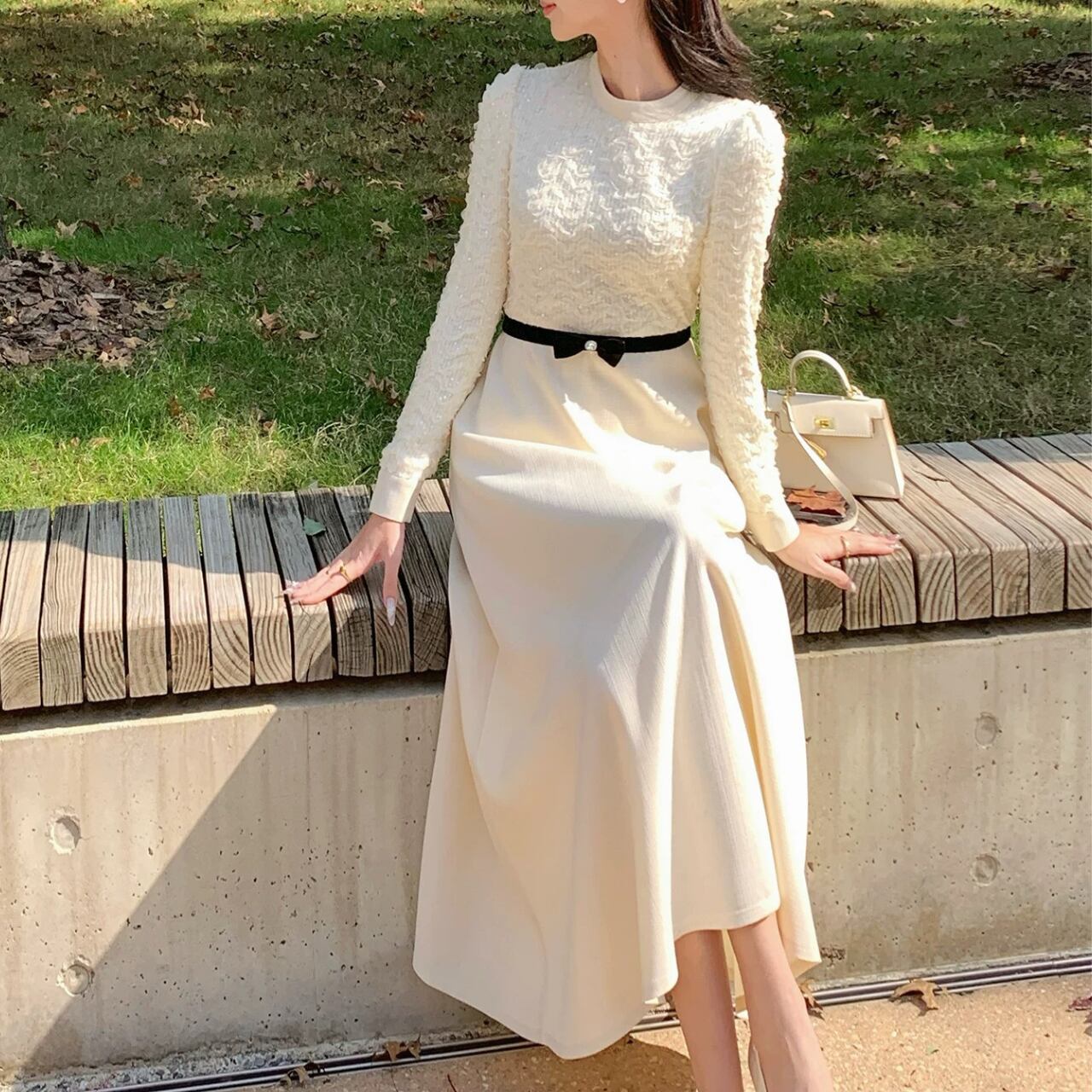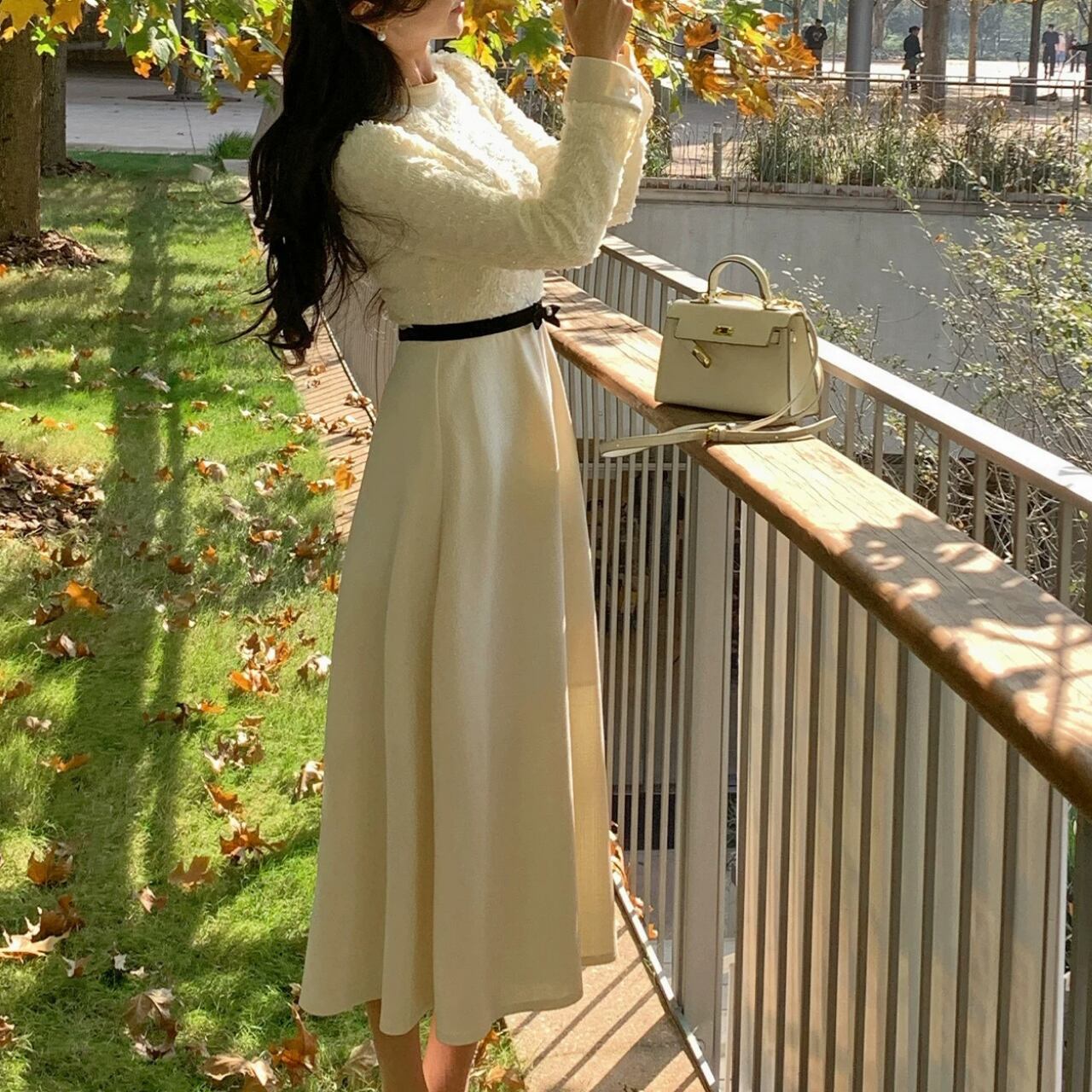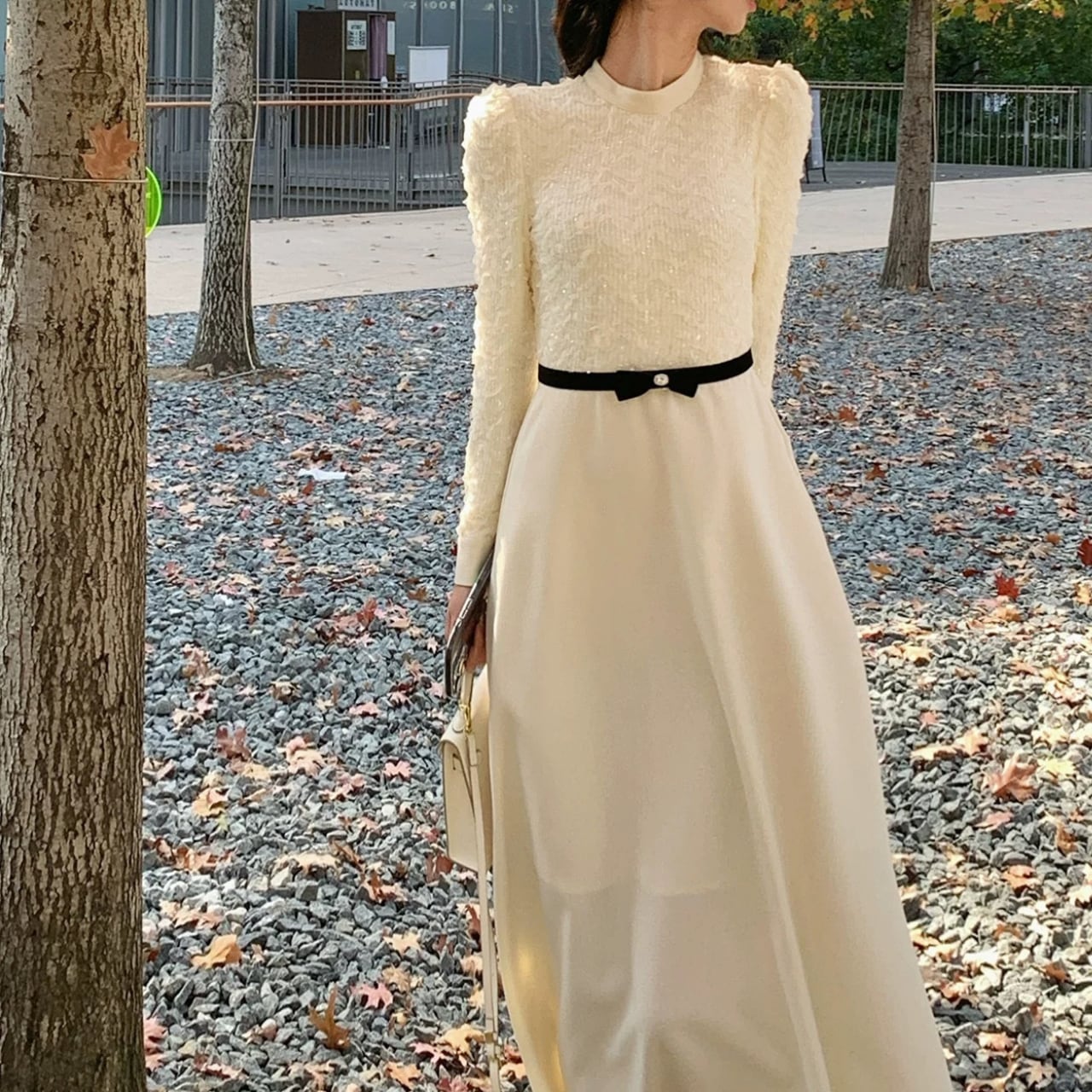 トップとスカートを切り替えた、美しいフィット&フレアシルエット。