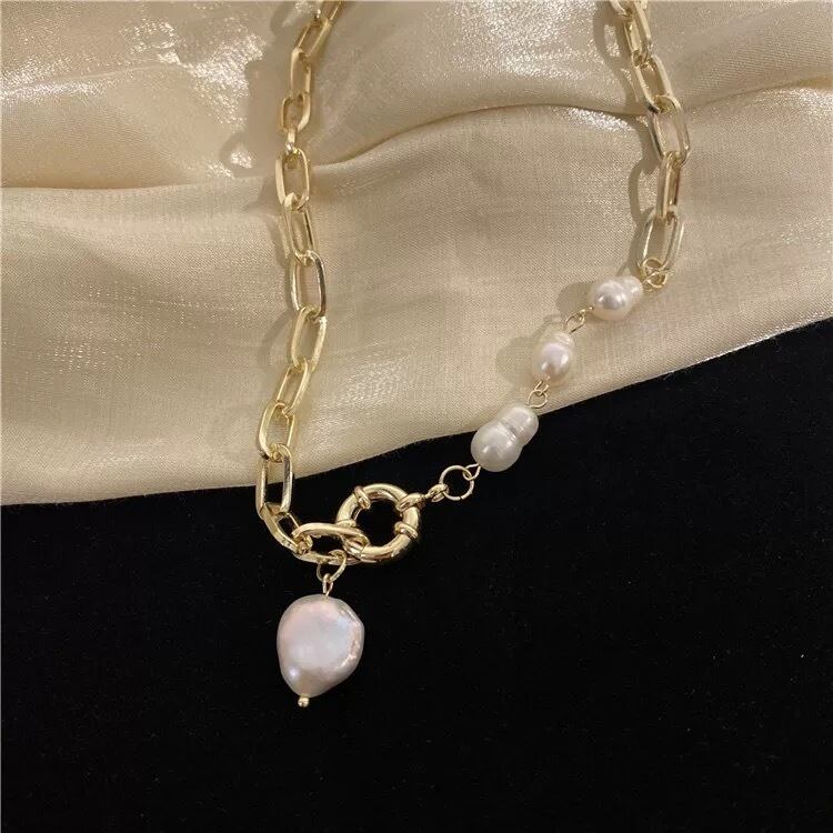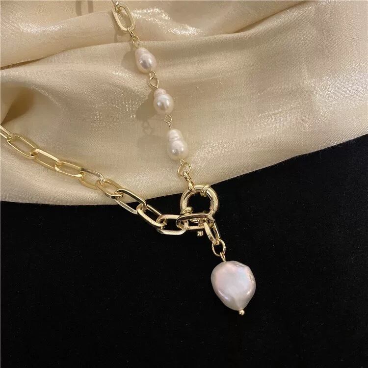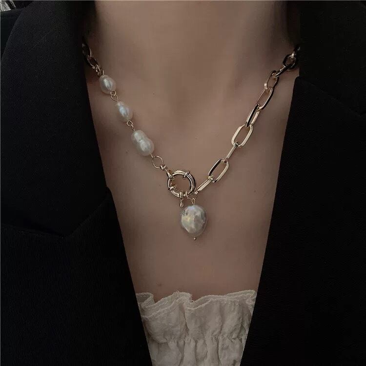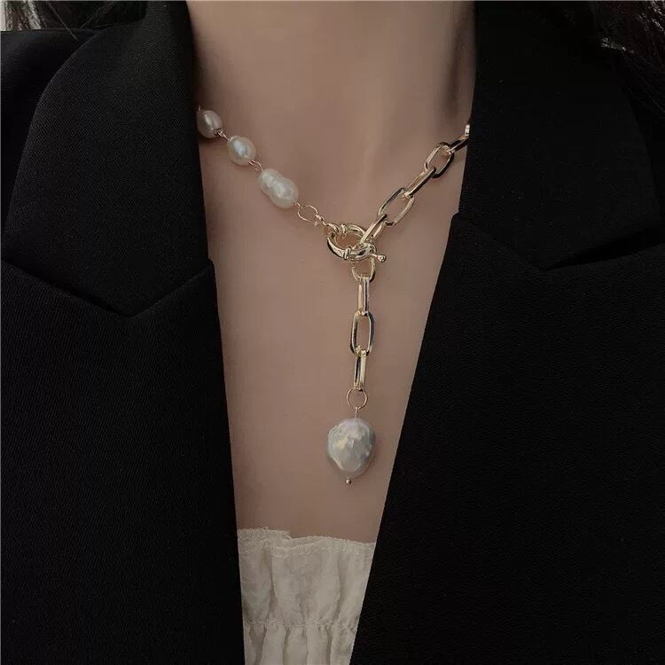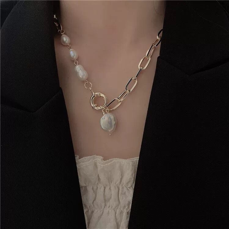 重厚感のあるゴールドチェーンに、気品漂うパールを組み合わせた