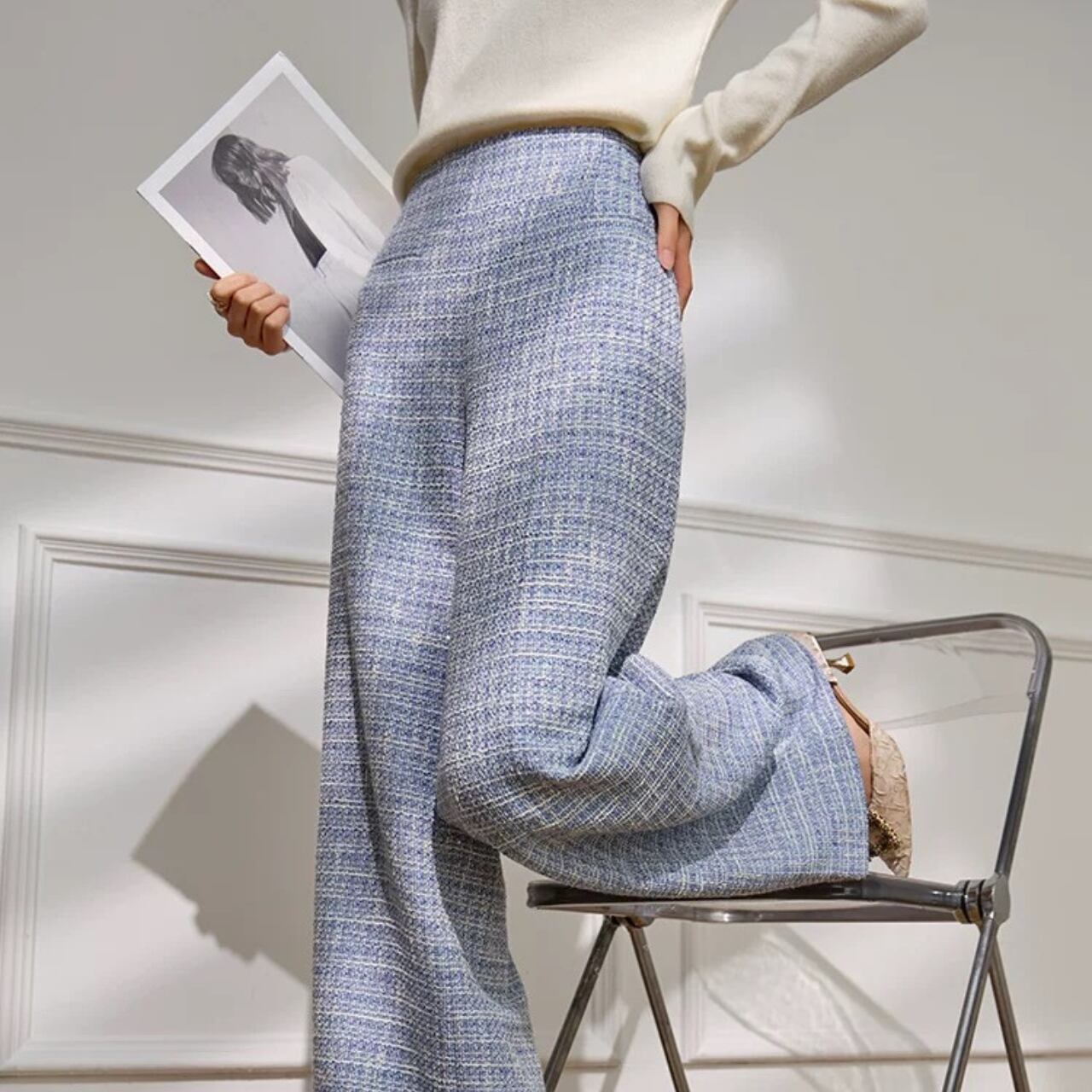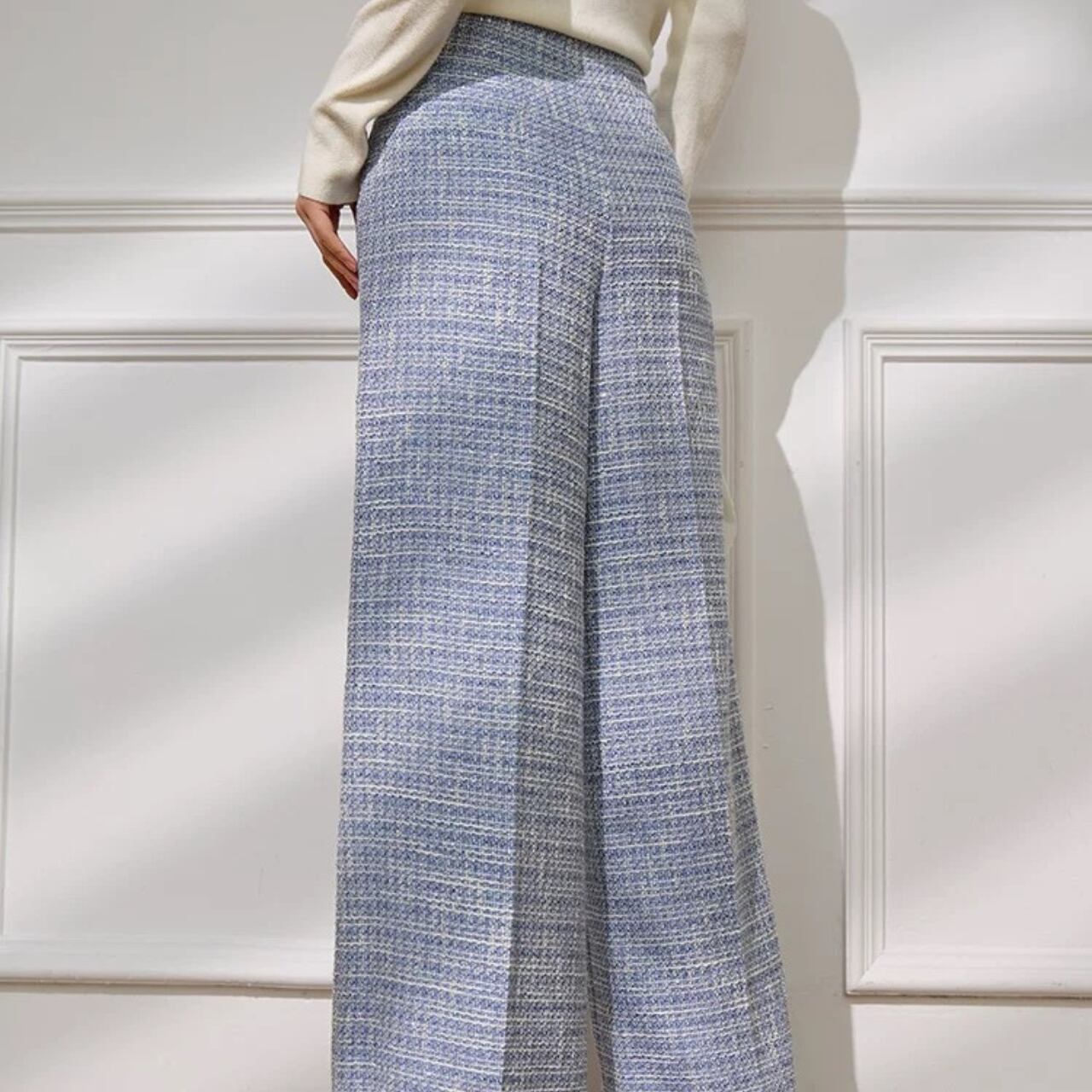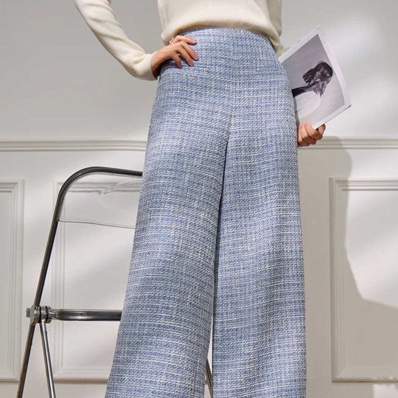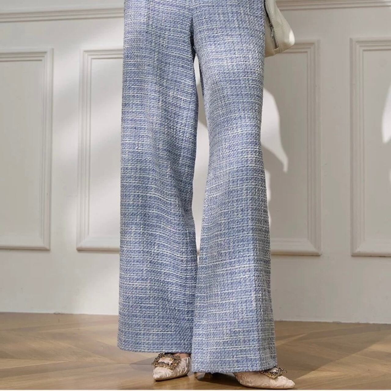 清潔感と知的さを感じさせる、爽やかなブルーツイードのパンツです。